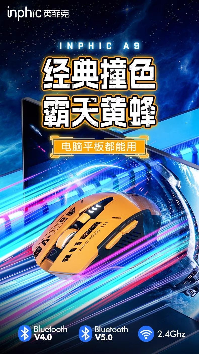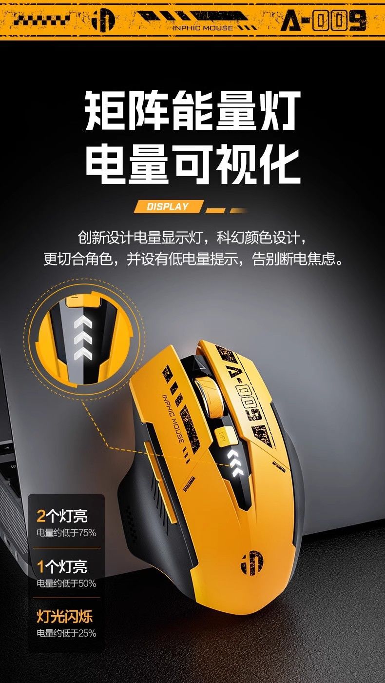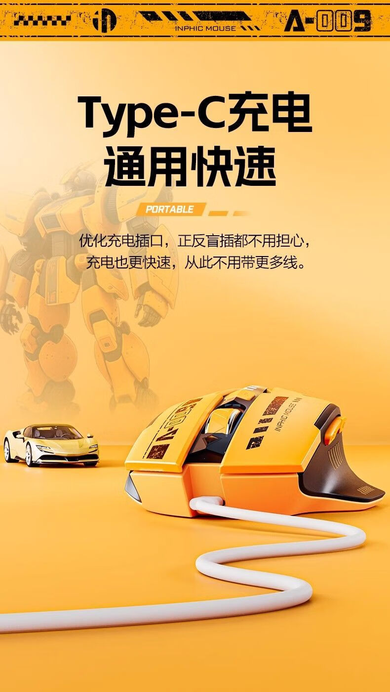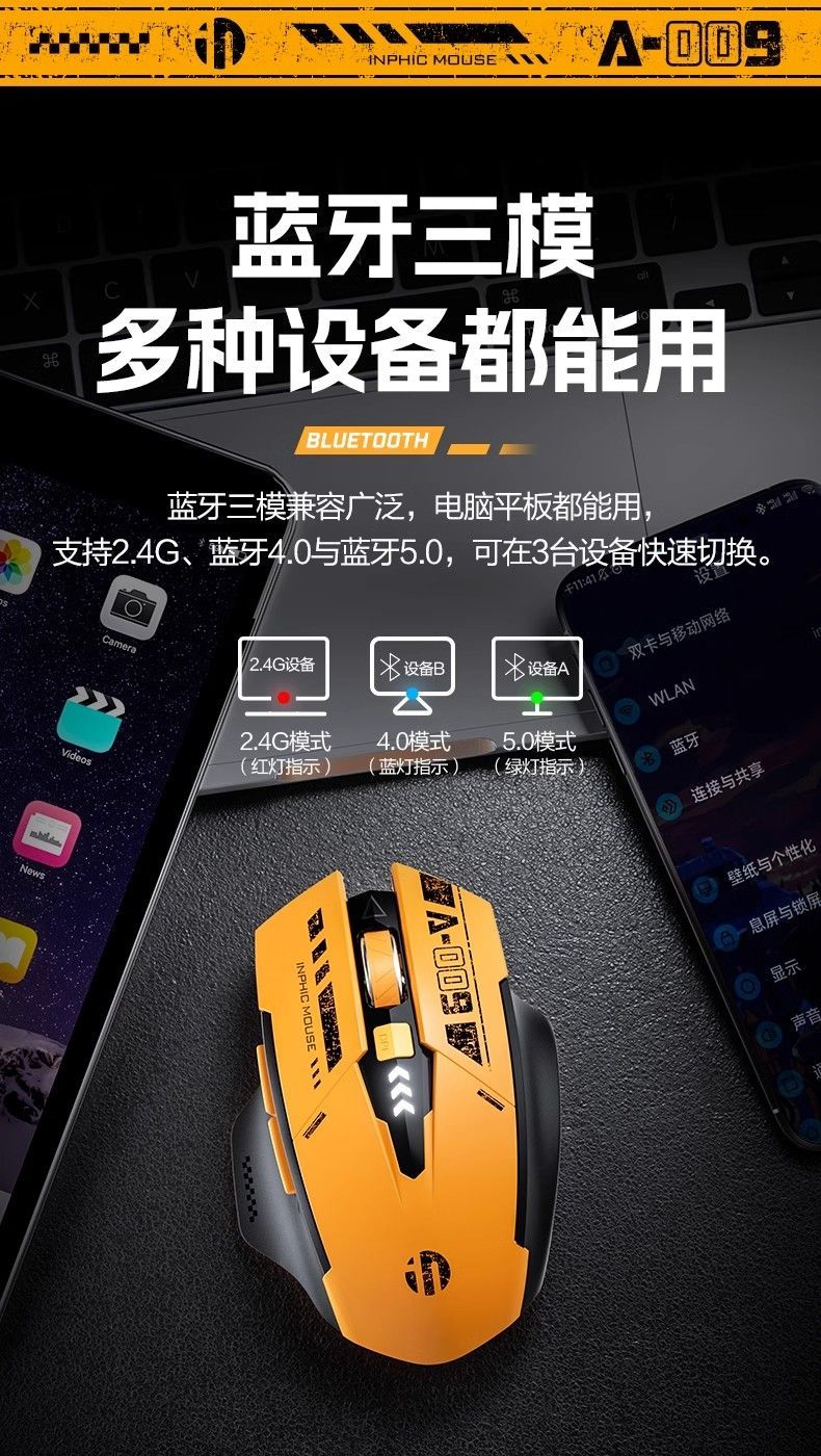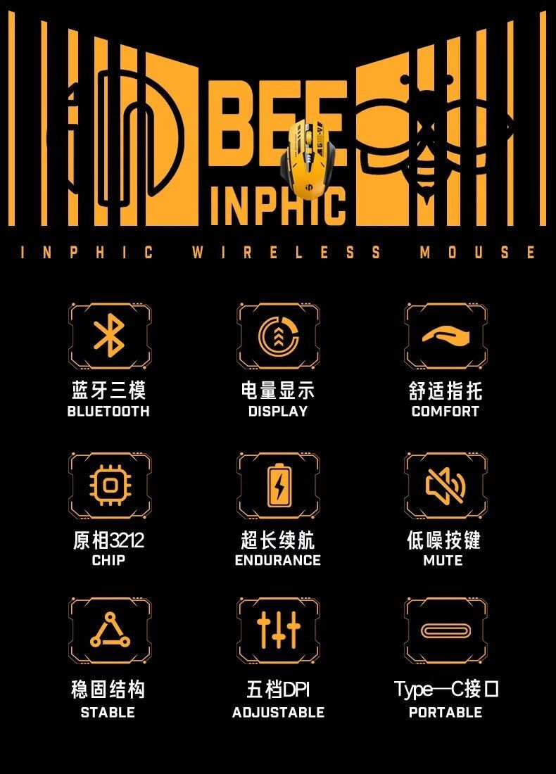 INPHIC Genuine direct sales A9 Bluetooth three-mode wireless mouse office silent USB charging game e-sports League of Legends cf notebook desktop computer universal INPHIC A9 wireless Bluetooth mouse-Bumblebee official three-mode Mecha Bee