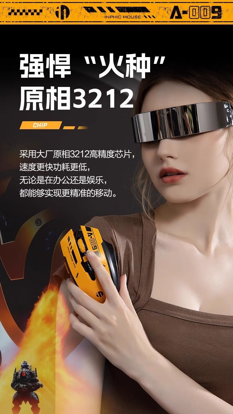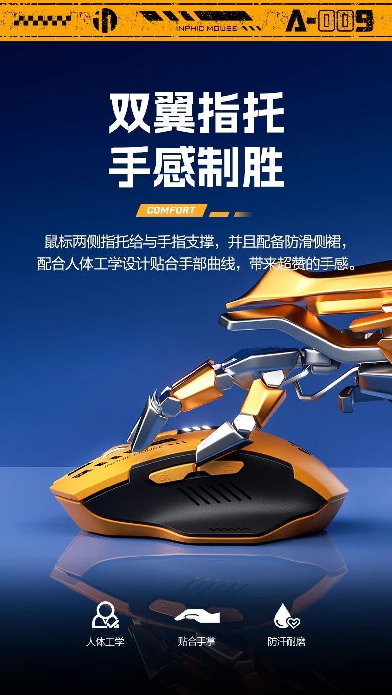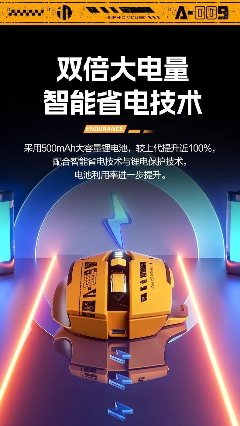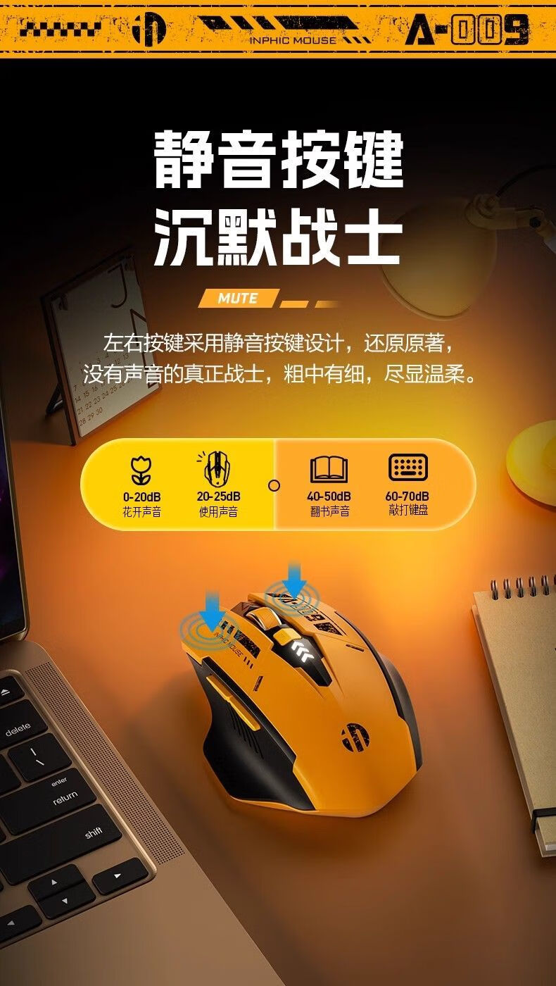 INPHIC Genuine direct sales A9 Bluetooth three-mode wireless mouse office silent USB charging game e-sports League of Legends cf notebook desktop computer universal INPHIC A9 wireless Bluetooth mouse-Bumblebee official three-mode Mecha Bee