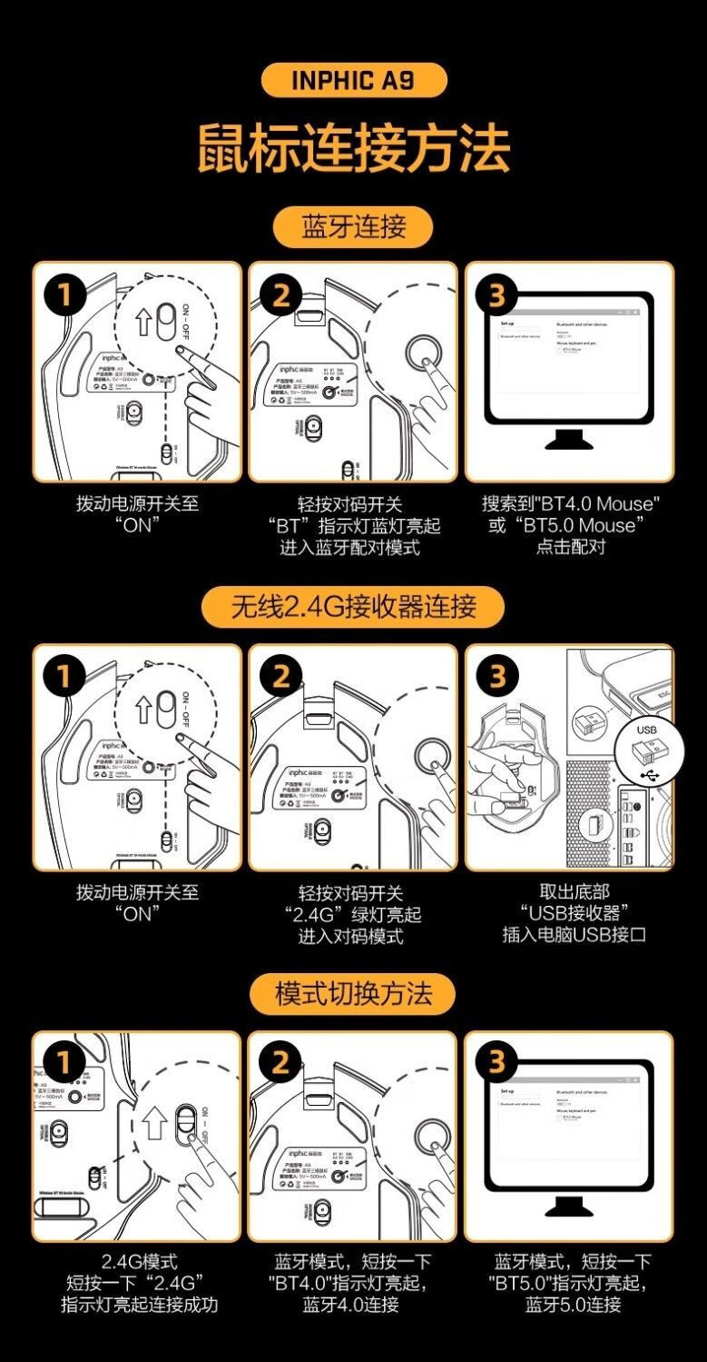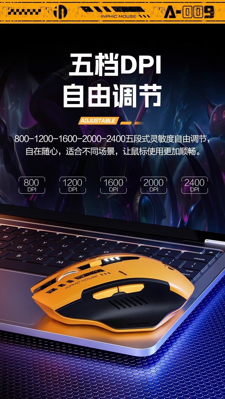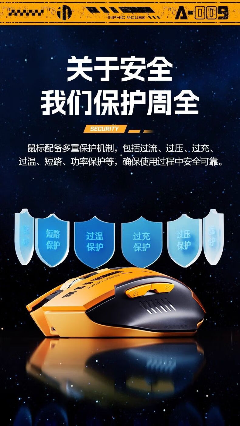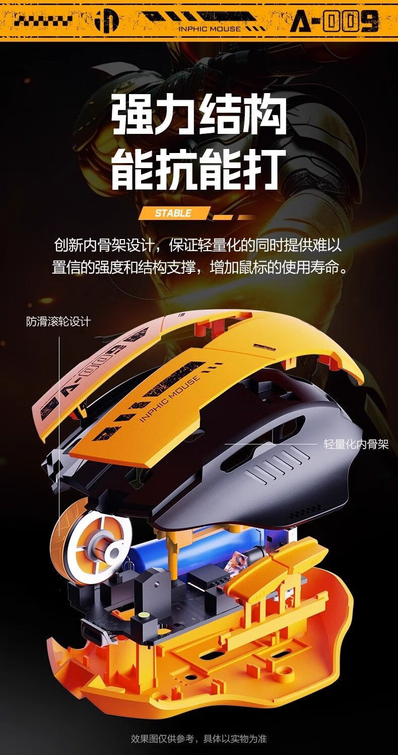 INPHIC Genuine direct sales A9 Bluetooth three-mode wireless mouse office silent USB charging game e-sports League of Legends cf notebook desktop computer universal INPHIC A9 wireless Bluetooth mouse-Bumblebee official three-mode Mecha Bee