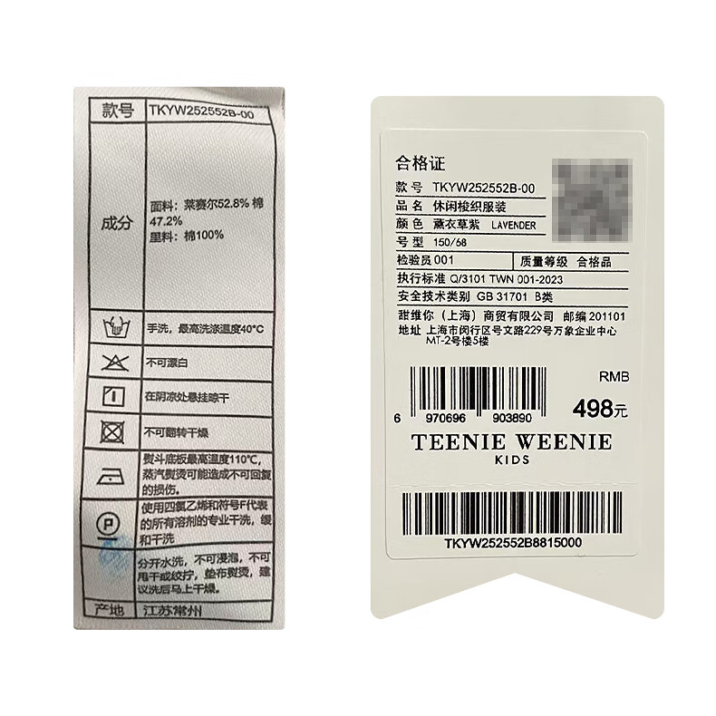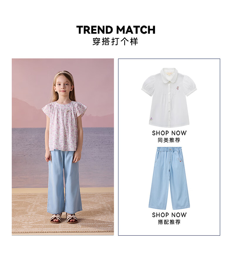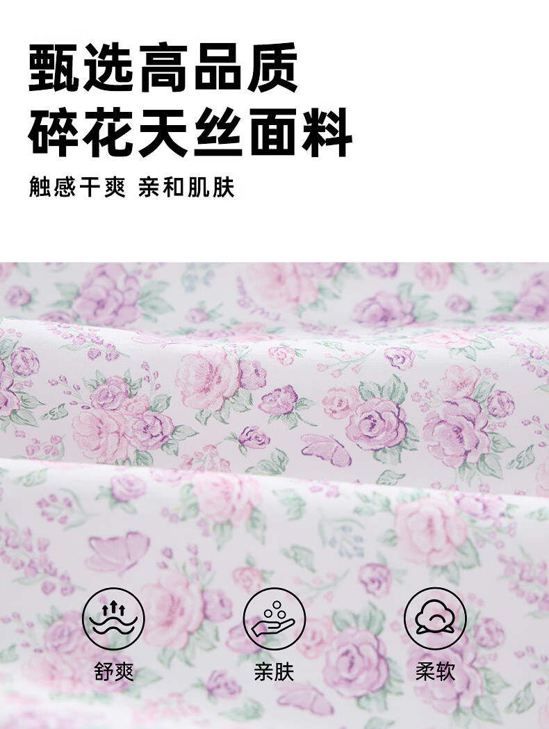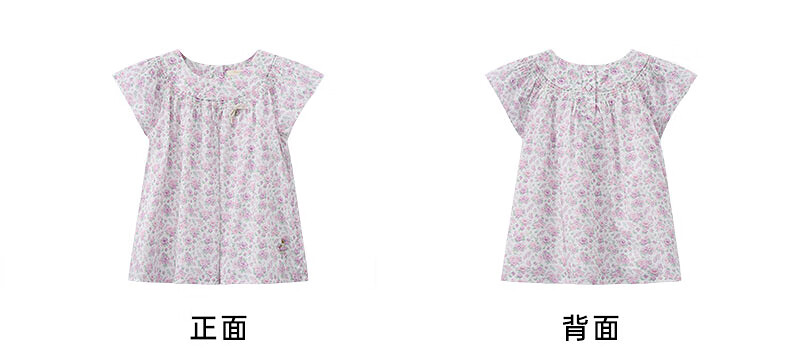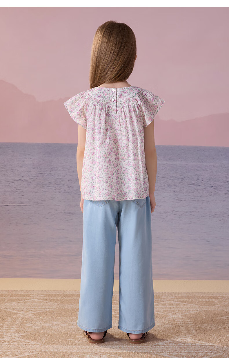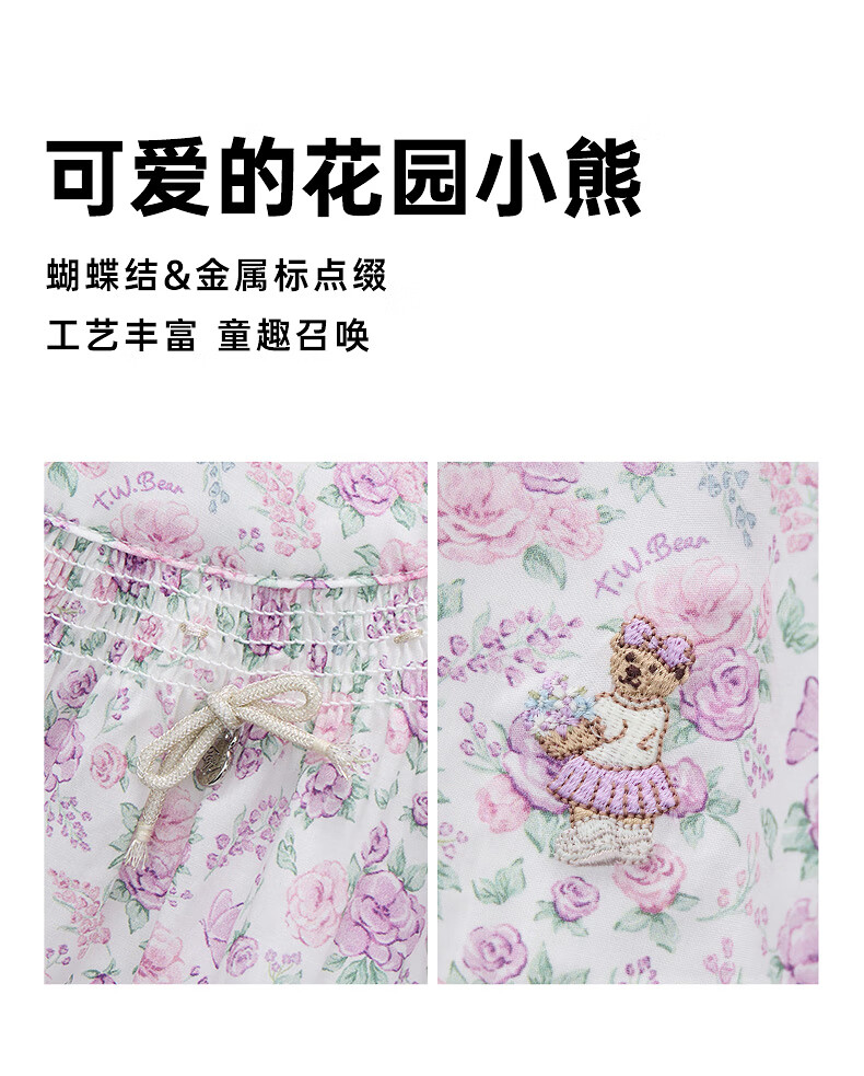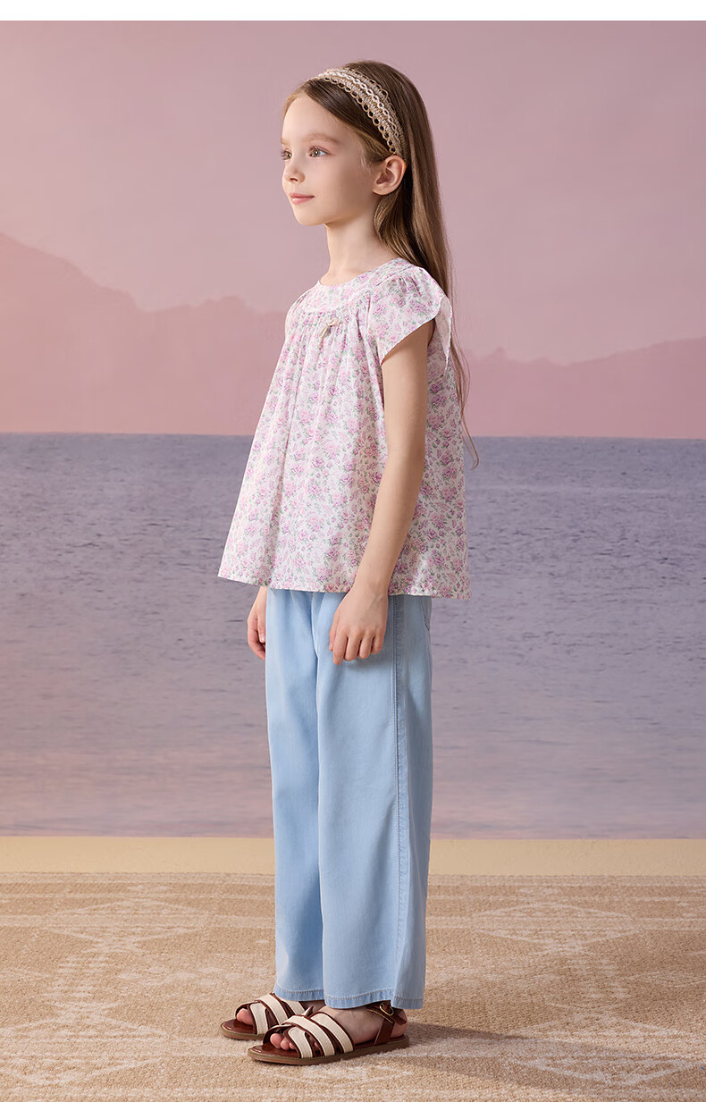 Teenie Weenie Kids Little Bear Children's Clothes Girls' Sweet Floral Round Neck Short-Sleeved Shirt Light Purple 160 cm