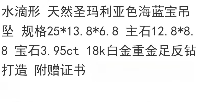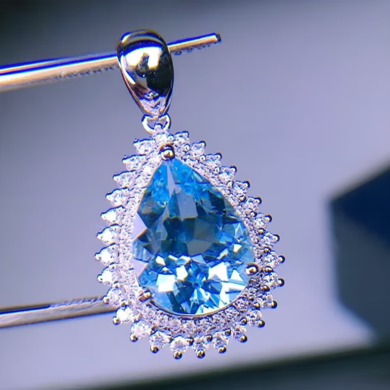 HEEKAIYI Heart of the Ocean Aquamarine Necklace Women's Diamond Pendant Luxury Jewelry Chinese Valentine's Day Birthday Gift for Wife Selected 3.95 Carats - Santa Maria Aquamarine Necklace