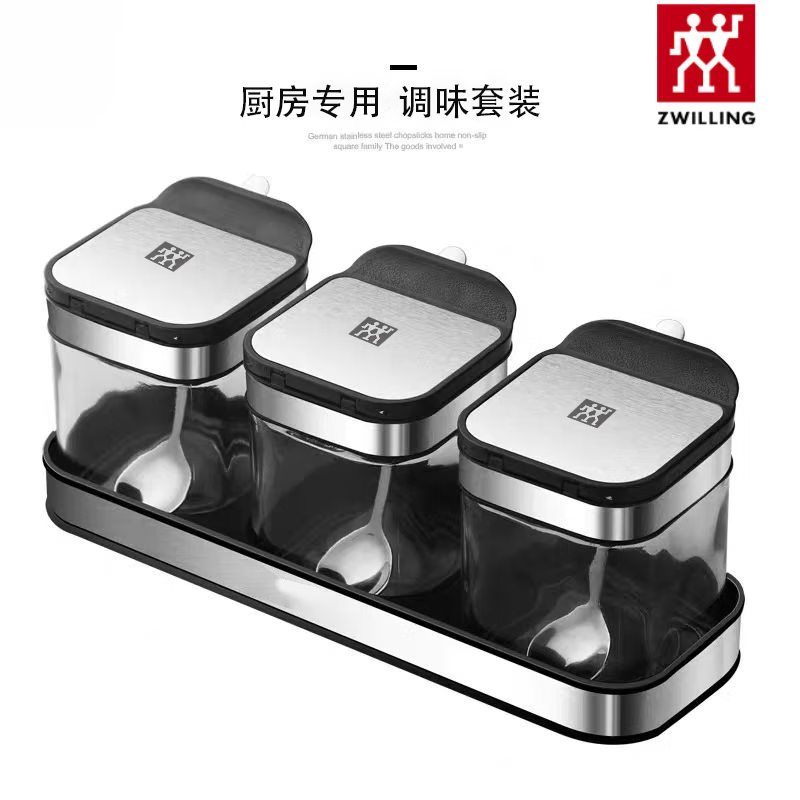 ZWILLING German glass seasoning box seasoning jar kitchen household salt shaker combination seasoning essence storage bottle black diamond seasoning jar