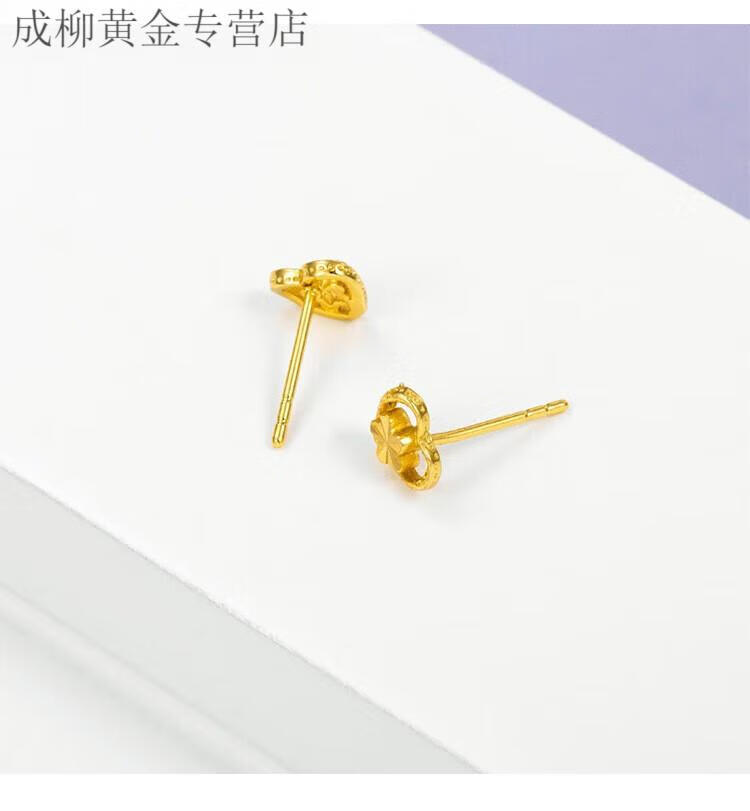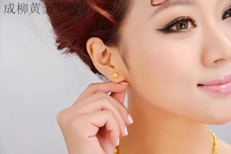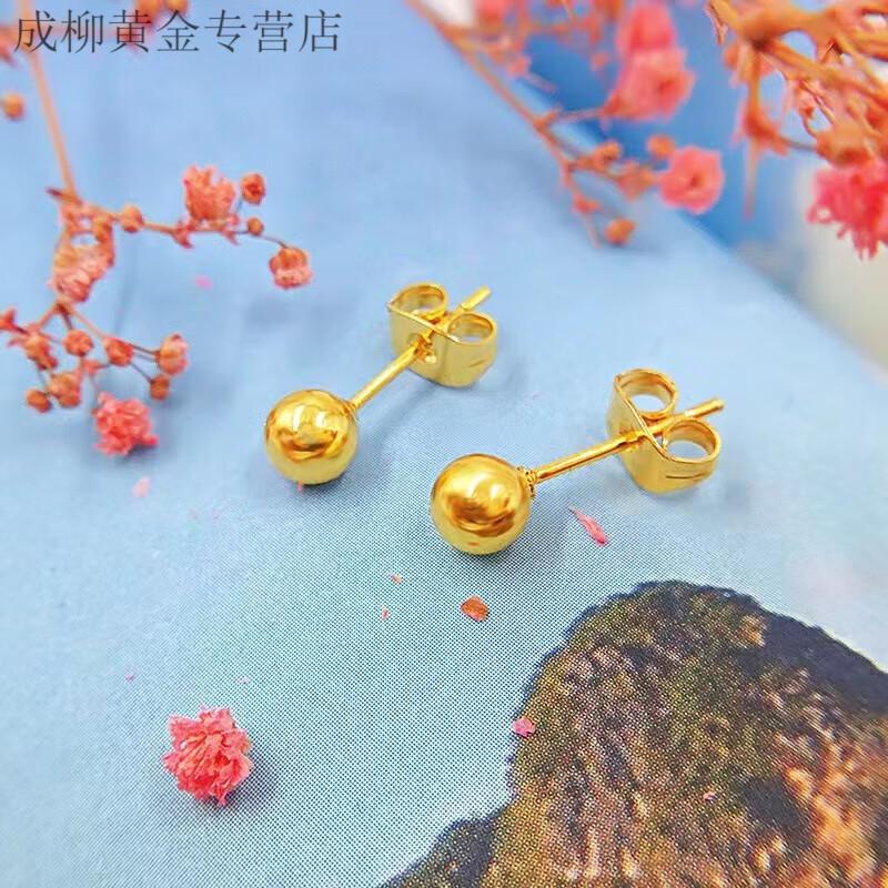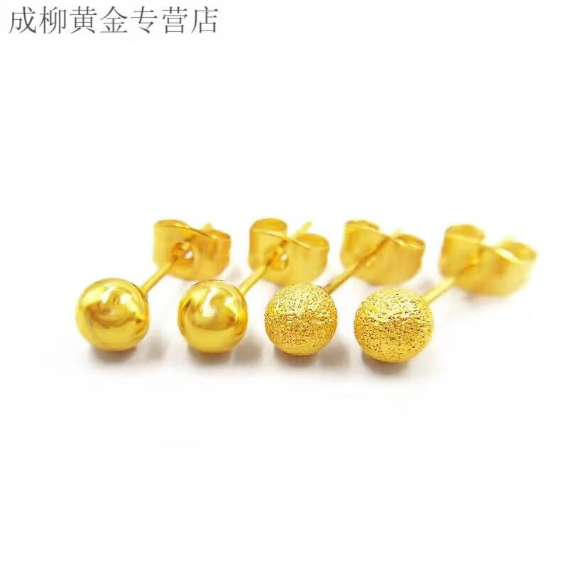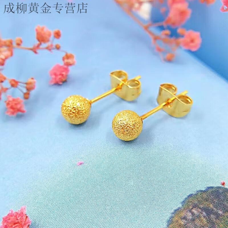 Jun Nianyu Lao Phoenix 999 gold pure gold earrings ear stick women's pure gold earrings 18k small earrings frosted round beads straight needle frosted beads + Song Xiao love same style 1g