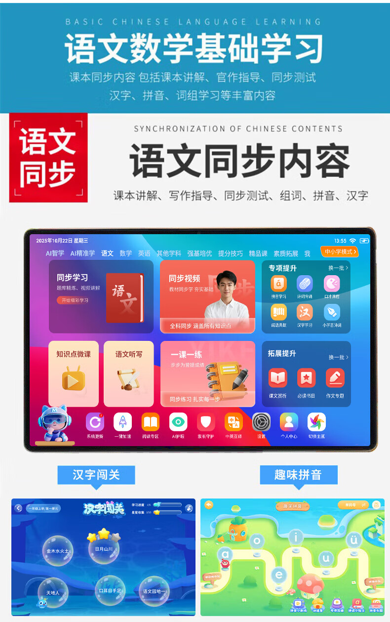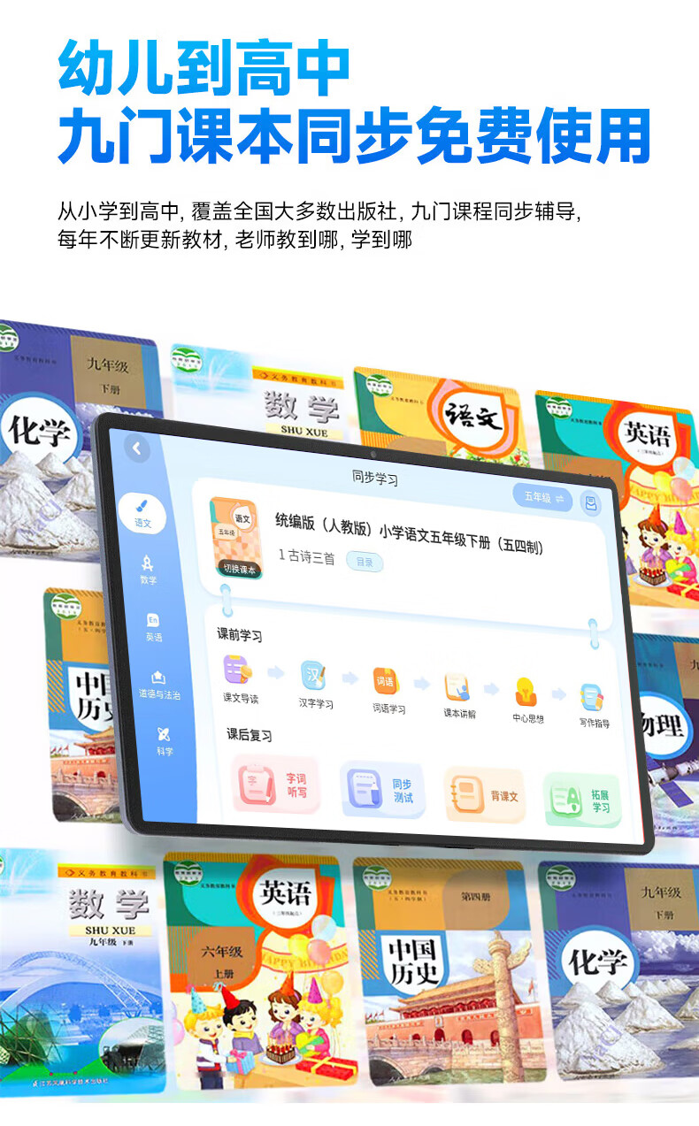 Zhuangyuanlang's new upgraded learning machine, primary school, junior high school and high school teaching materials, synchronized English reading machine, tutoring machine, learning machine, reading machine, early education machine, tablet PC T610/N188 256G without gift pack