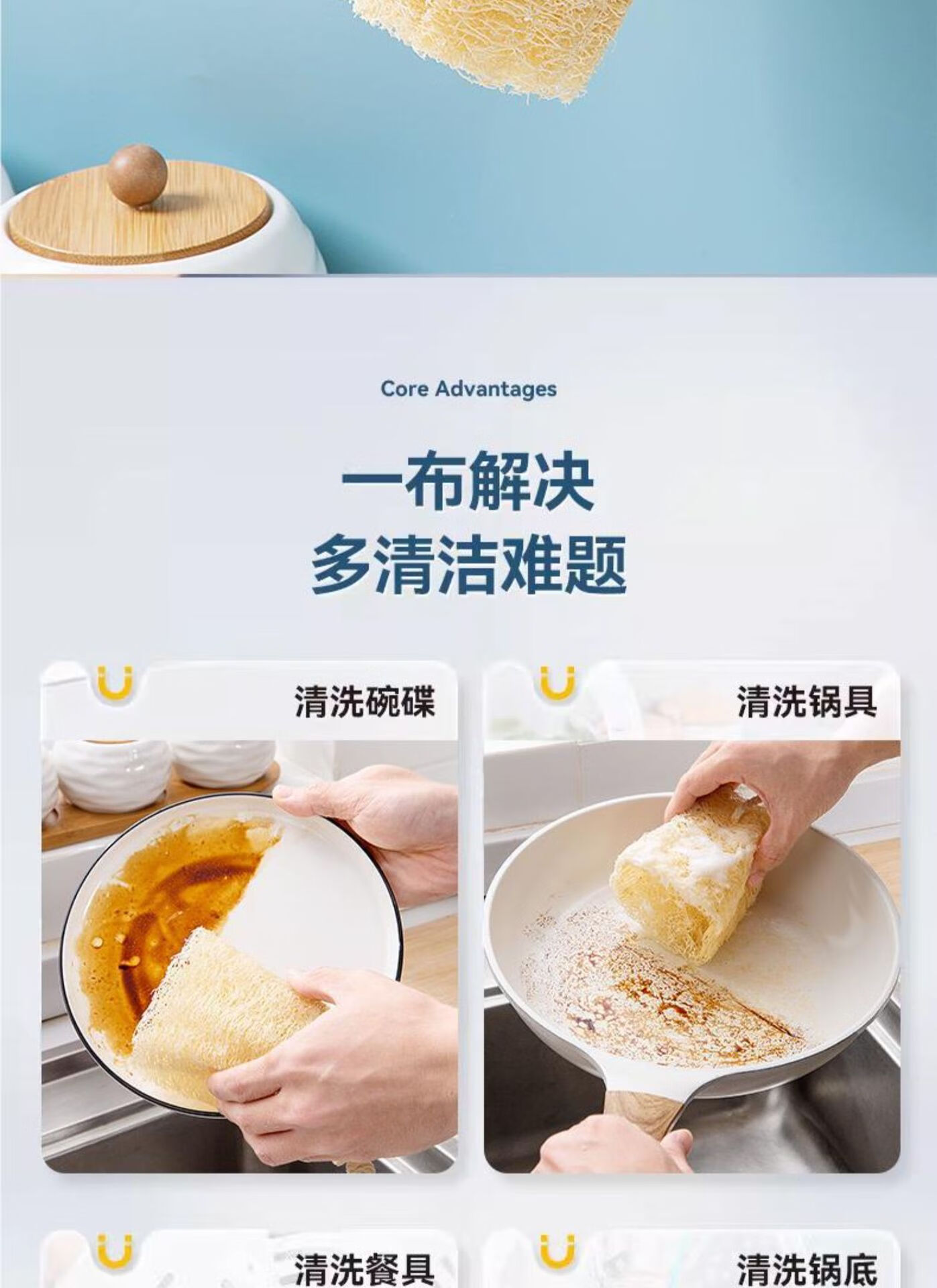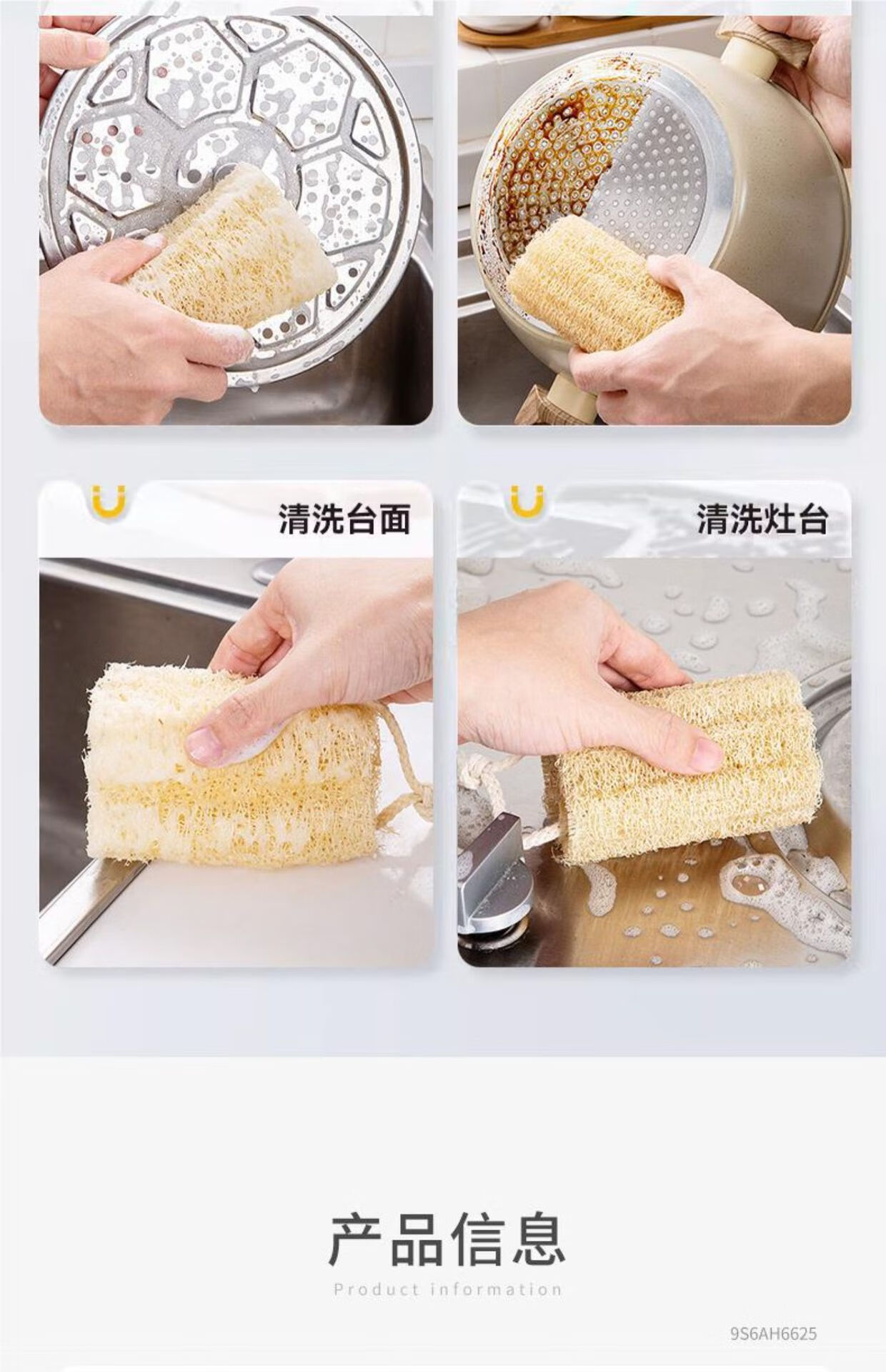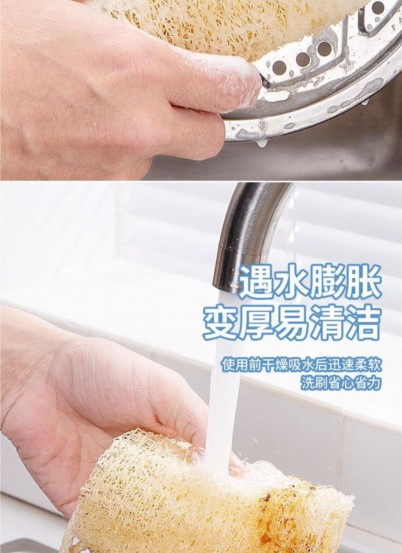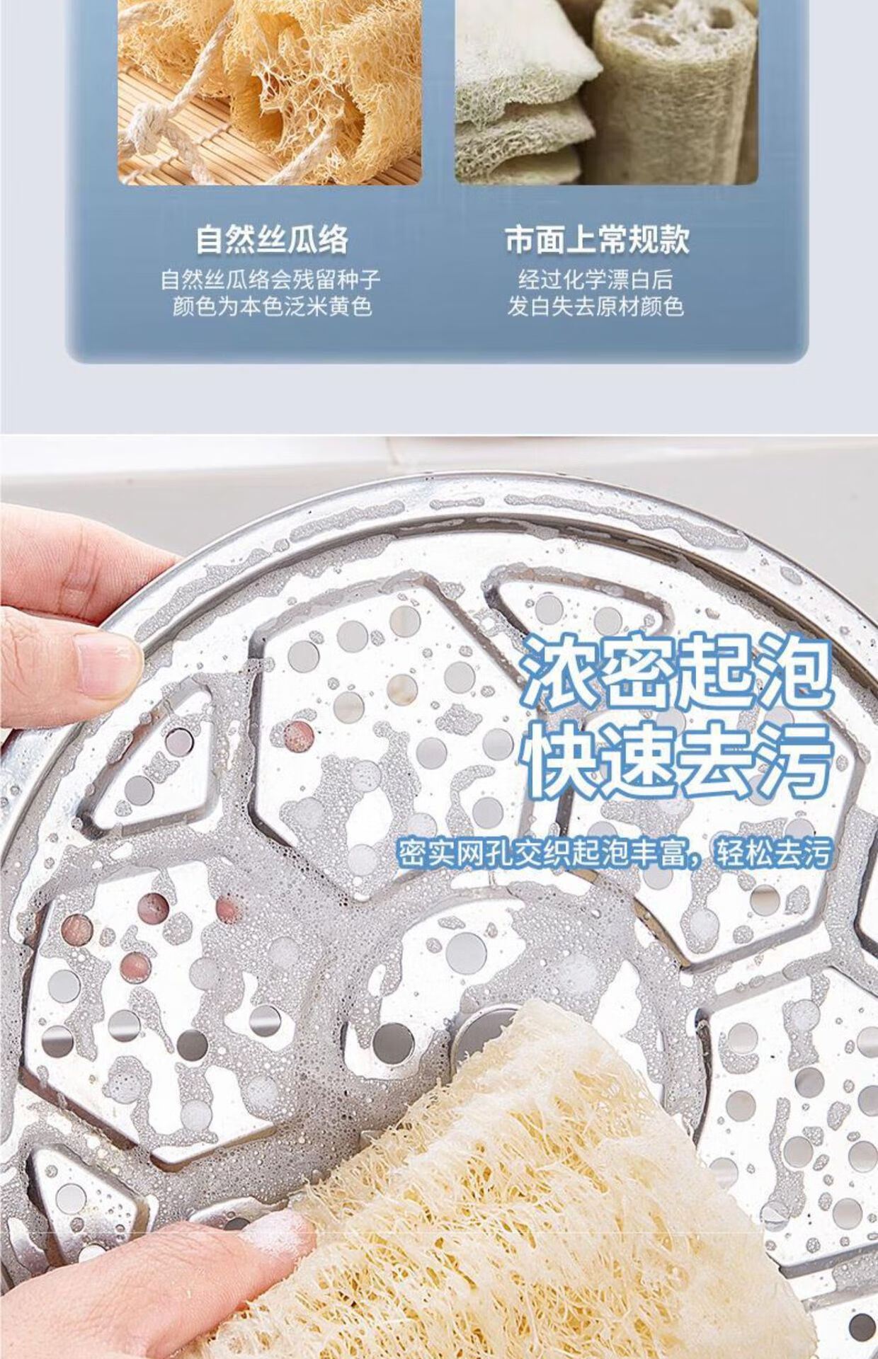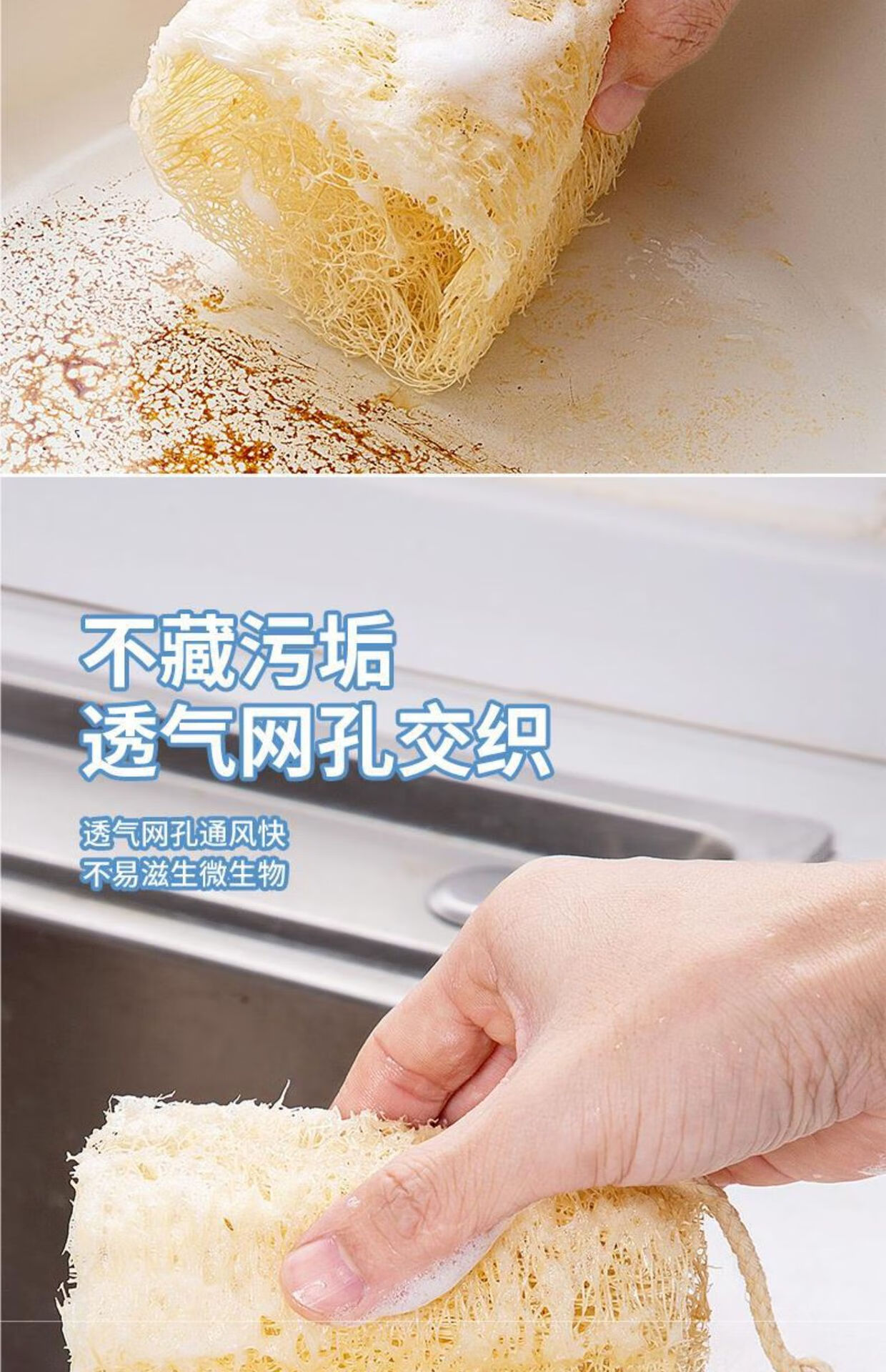 Natural loofah dishwashing pot artifact household kitchen cleaning non-stick rag old-fashioned loofah flesh scouring pad loofah soft style 10cm 5 pcs