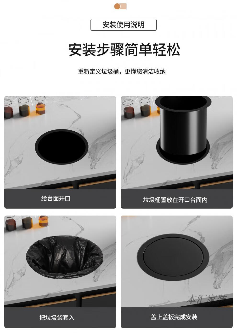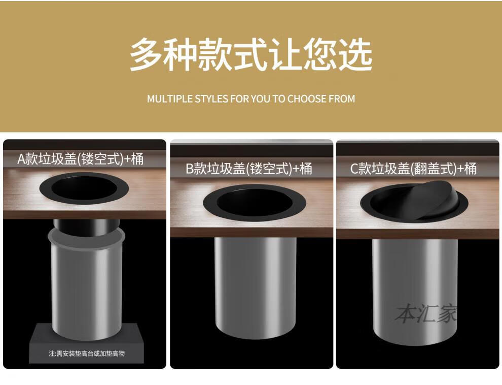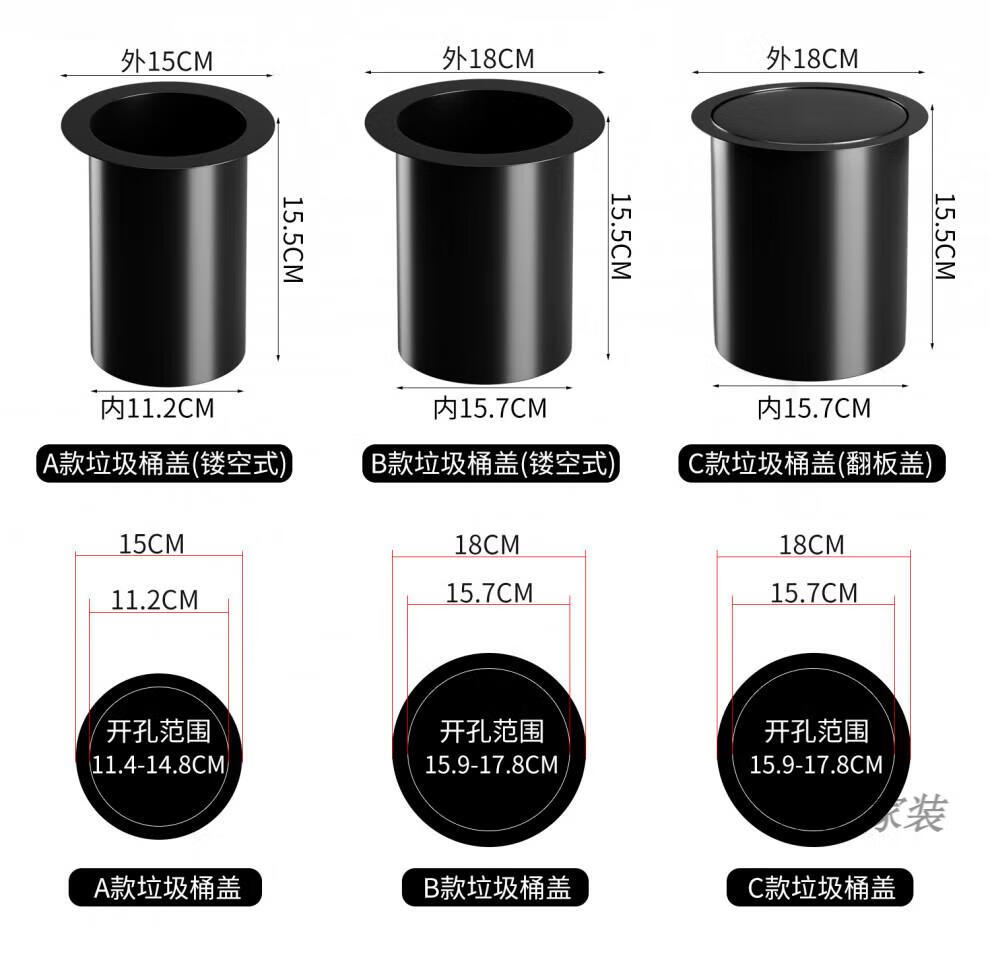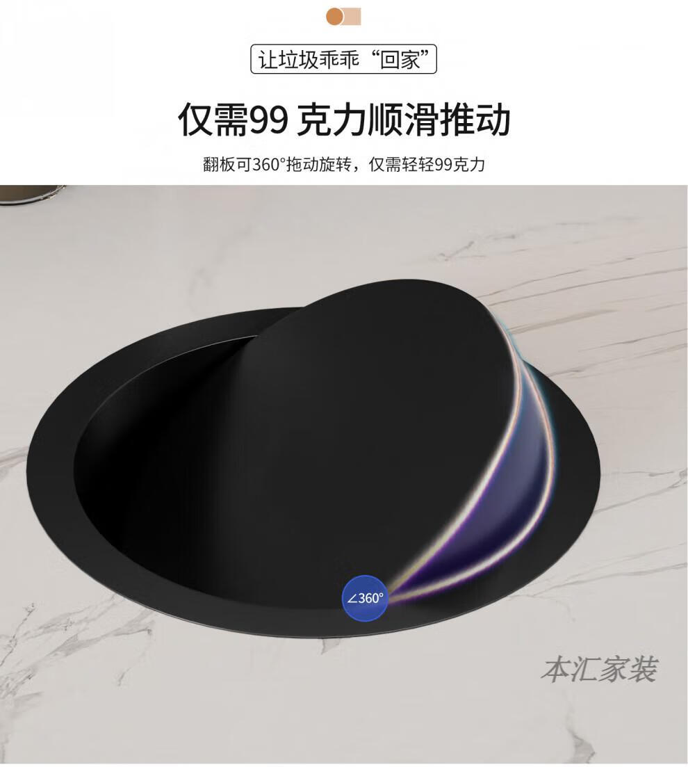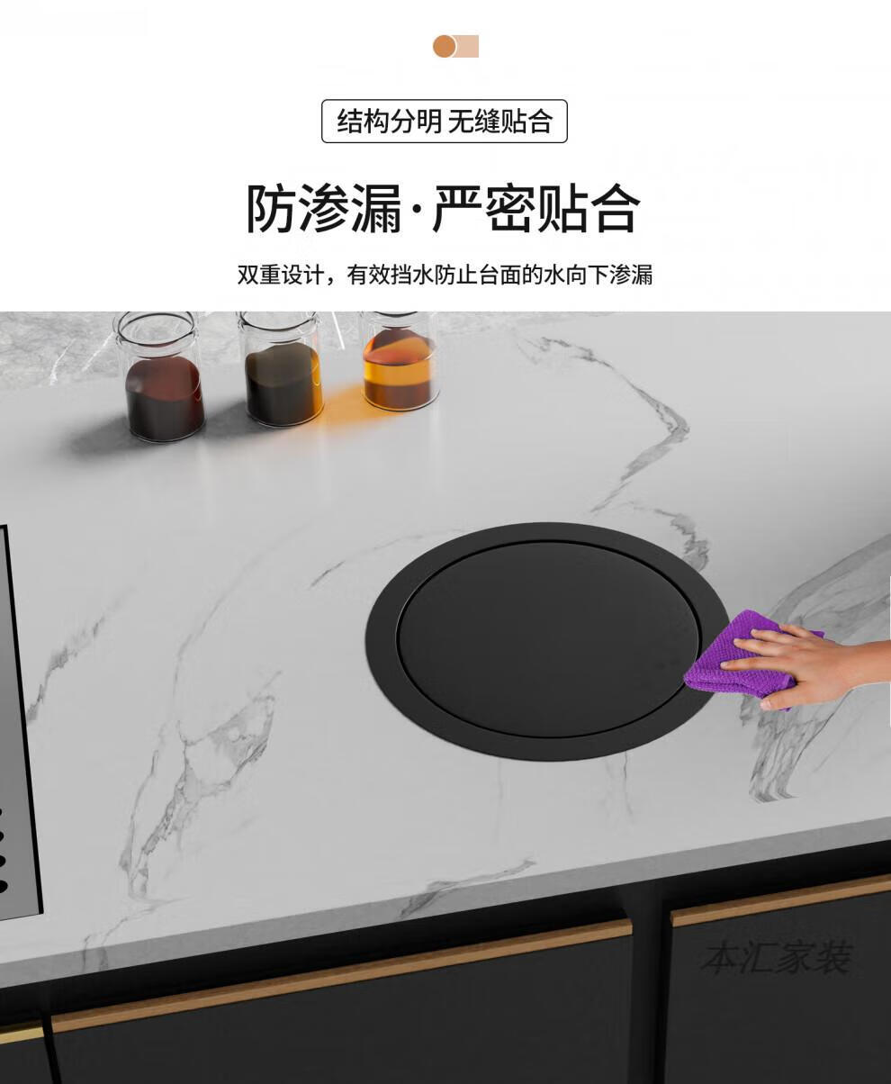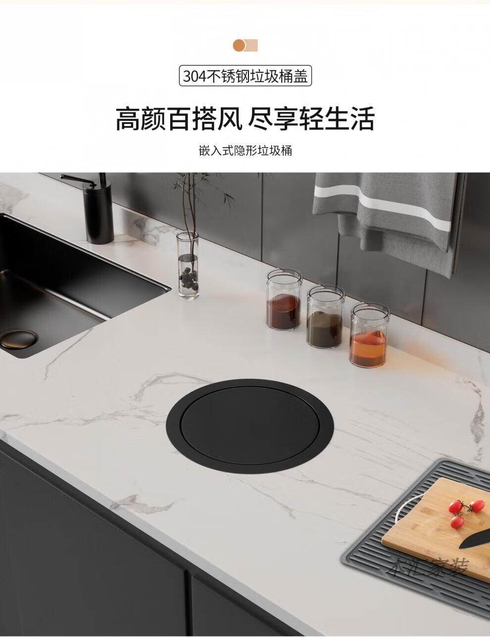 Borage kitchen countertop stainless steel embedded trash can cover household bathroom sink flip cover swing cover round black countertop trash can cover 18cm + no