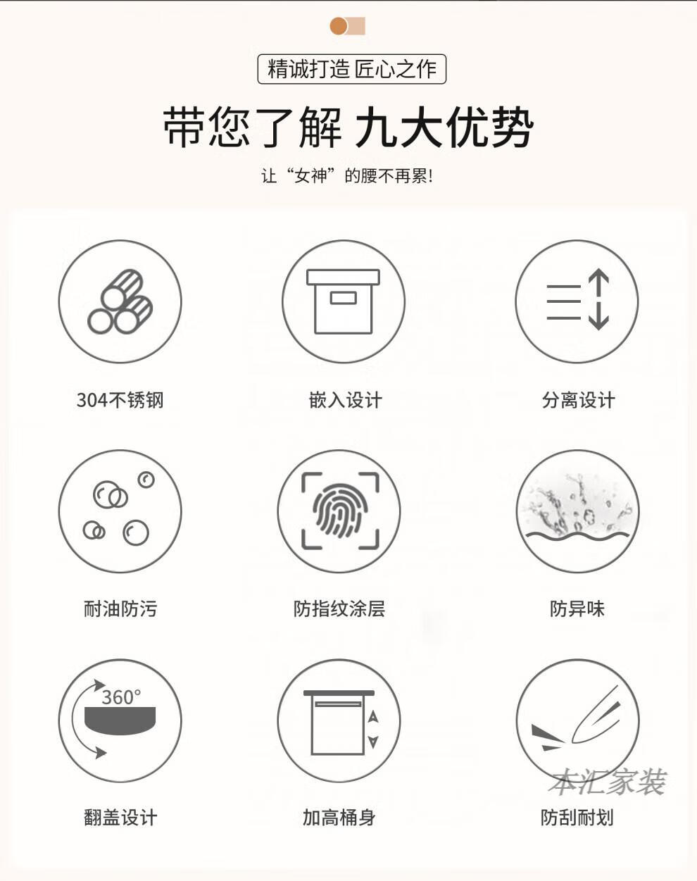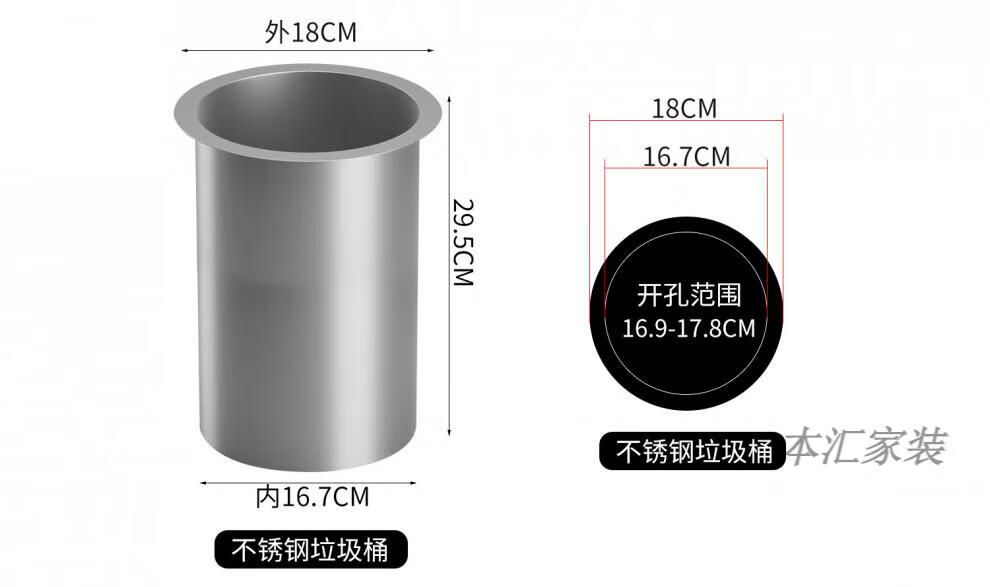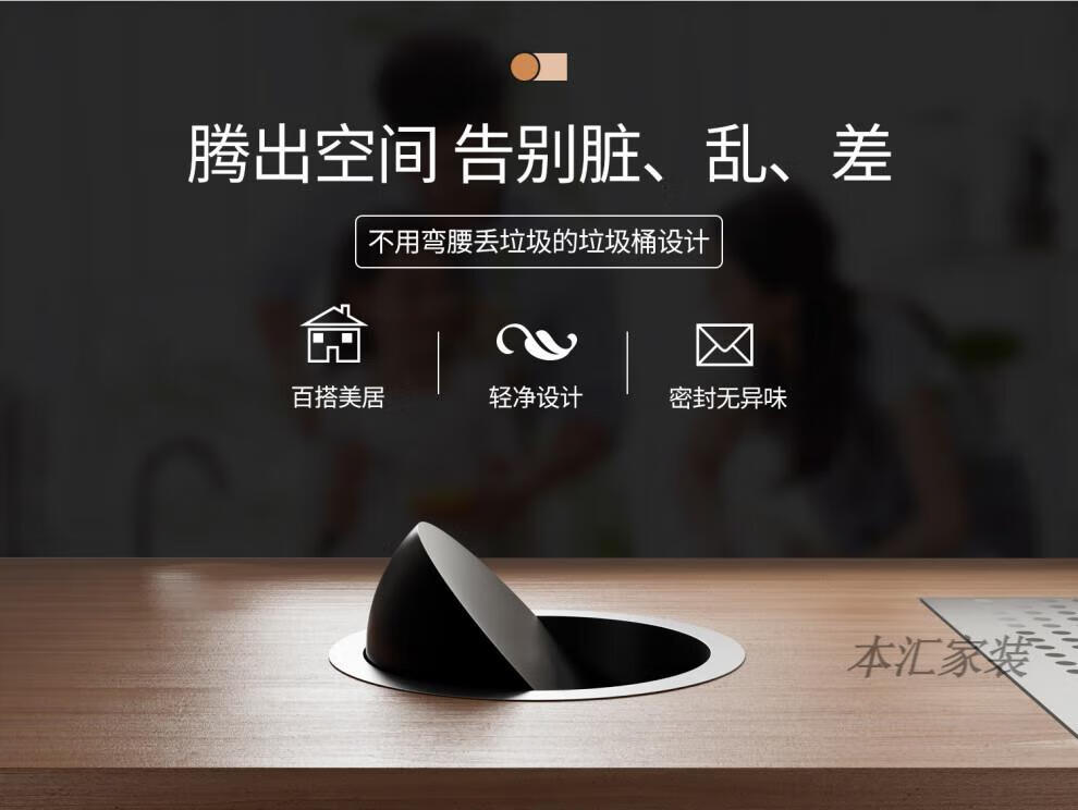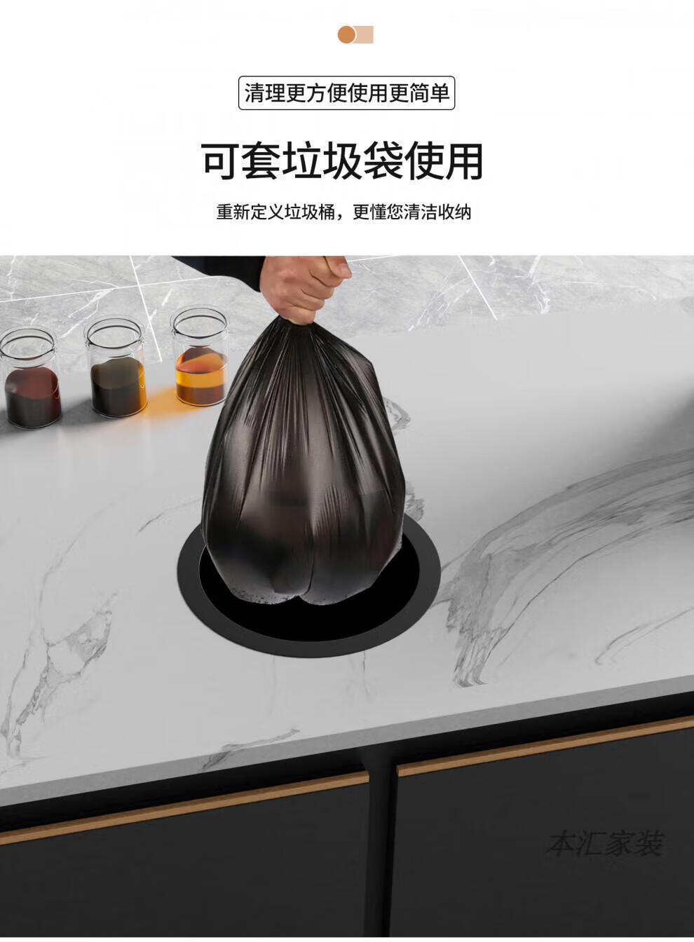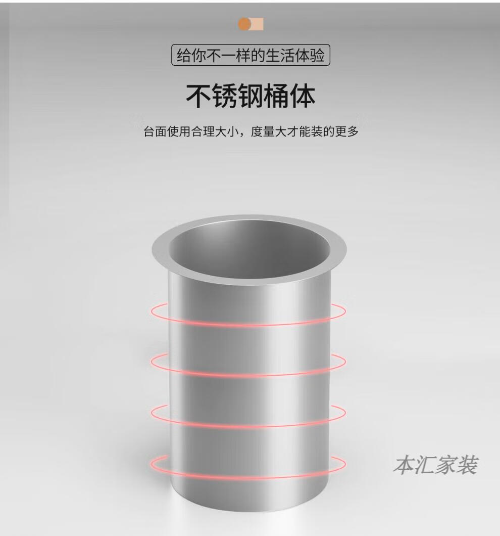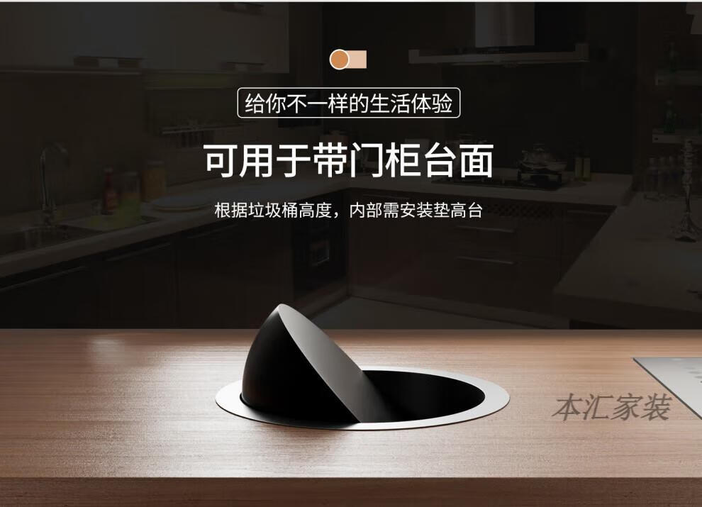 Borage kitchen countertop stainless steel embedded trash can cover household bathroom sink flip cover swing cover round black countertop trash can cover 18cm + no