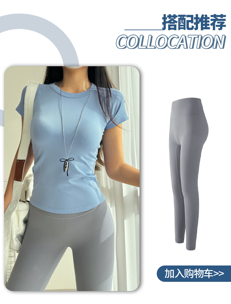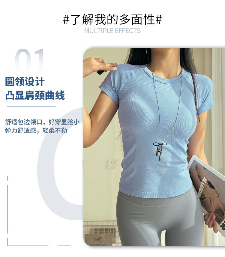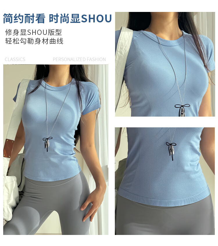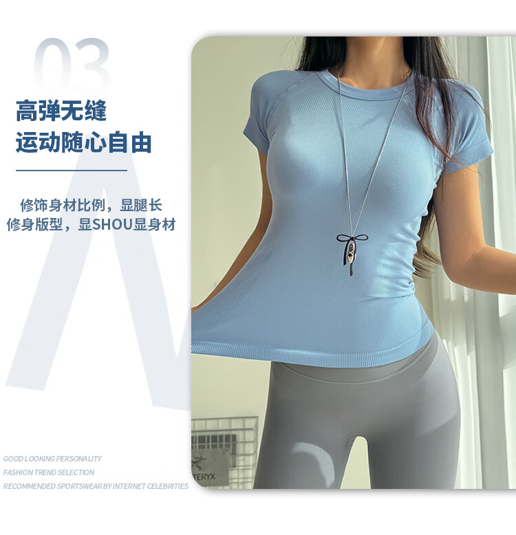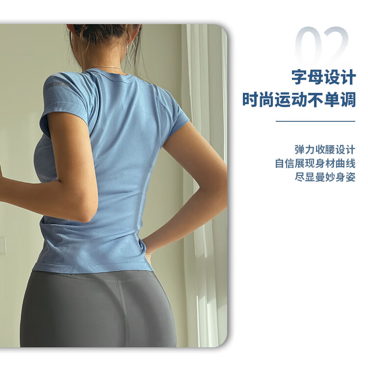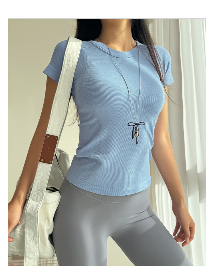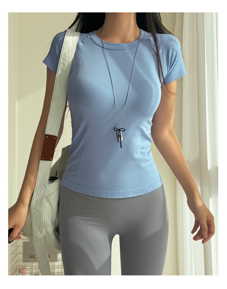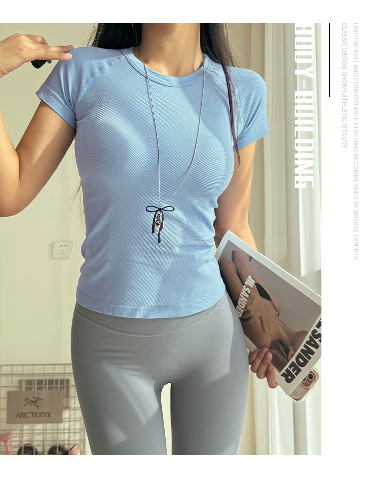 LULUUVTTOH summer seamless sports yoga clothing tops women's short-sleeved quick-drying running t-shirt breathable Pilates training fitness clothing light blue S