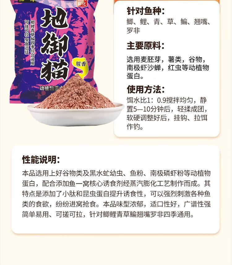 A nest of ground royal cat fish bait, wild fishing with a strong fishy smell, universal for all seasons, special for fishing crucian carp, grass bream, cocked mouth, ground royal cat 60g*3 pack