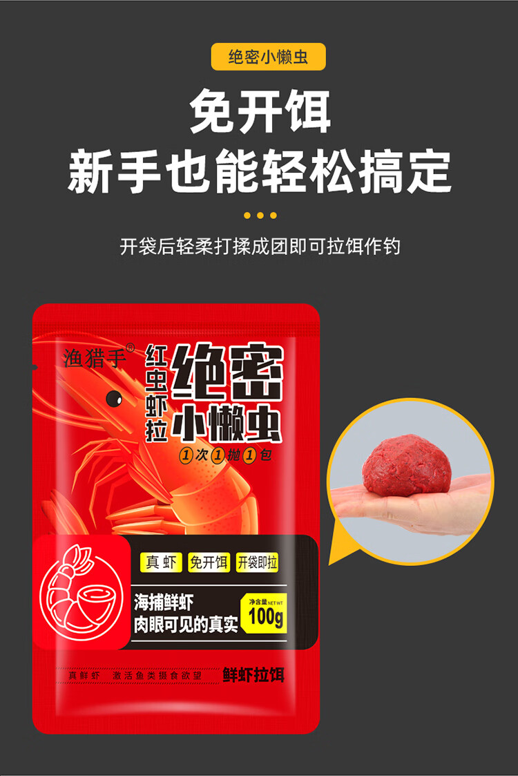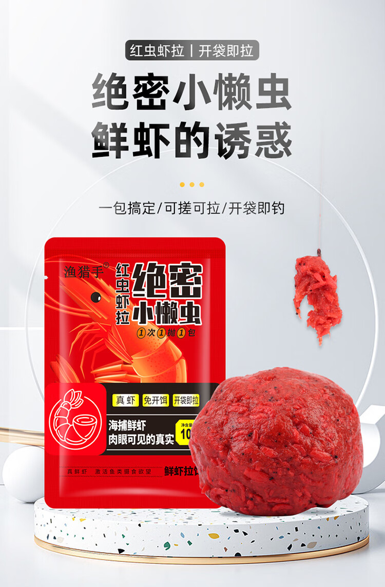 New style of small lazy worm, red worm, fresh shrimp, shrimp sliding bait, crucian carp bait, small shrimp companion, lazy man's wild fishing companion, red worm and shrimp, small lazy worm*5 bags