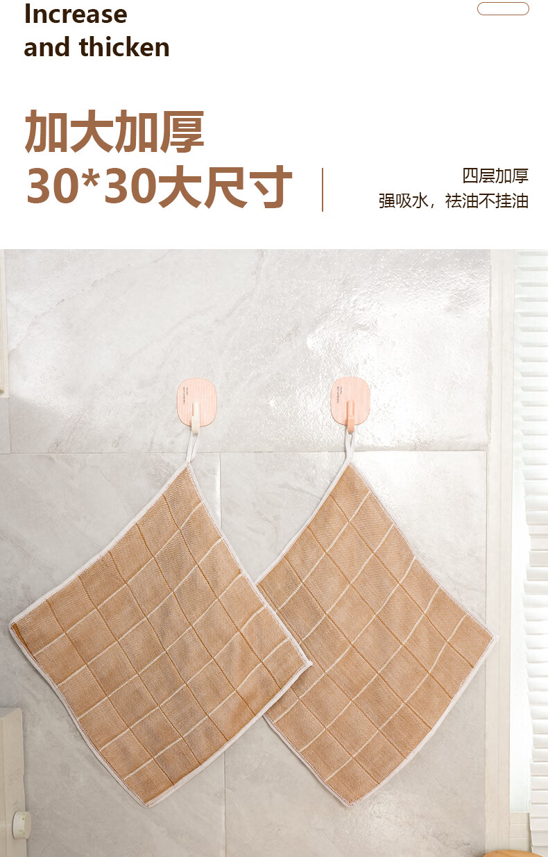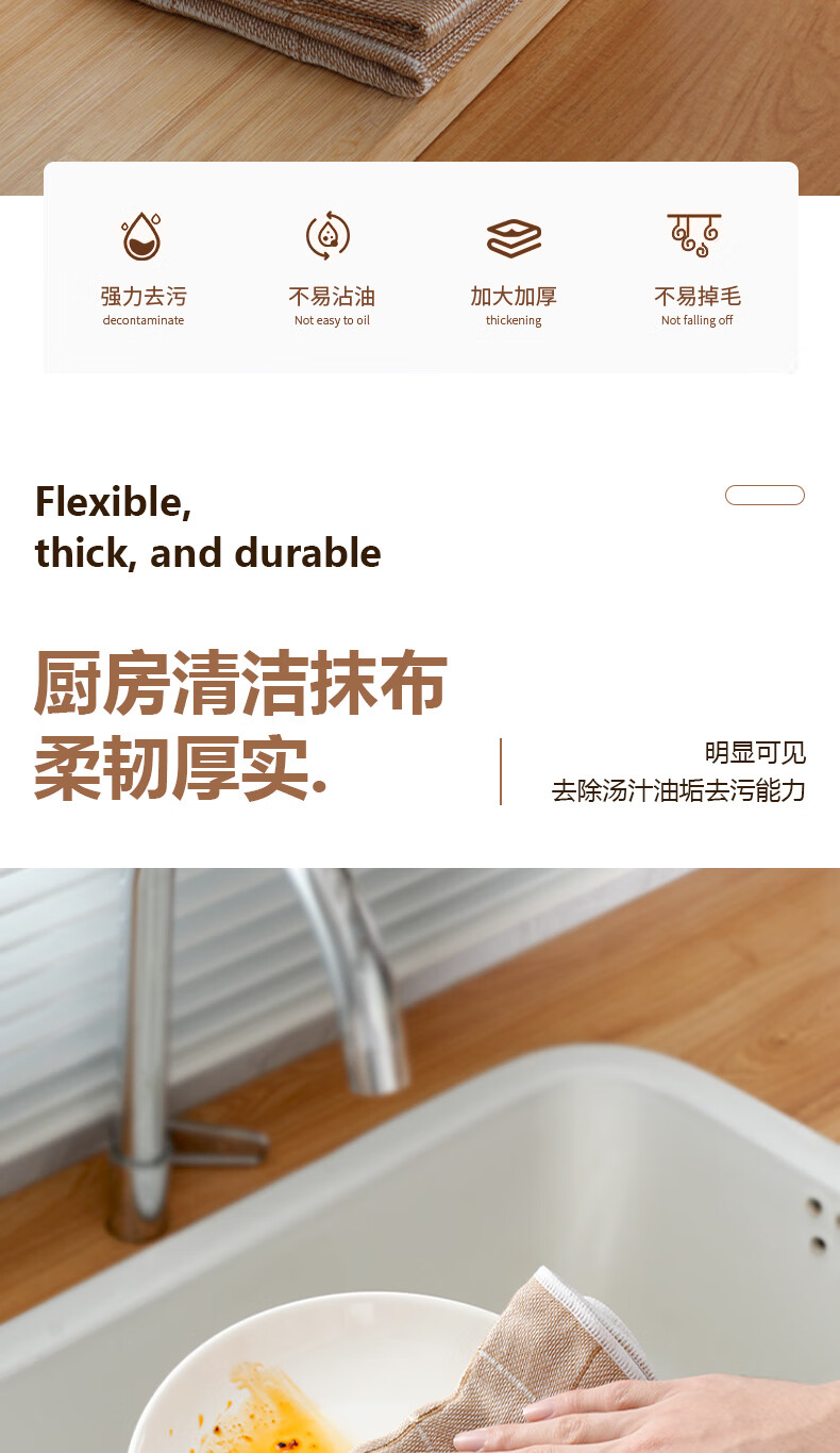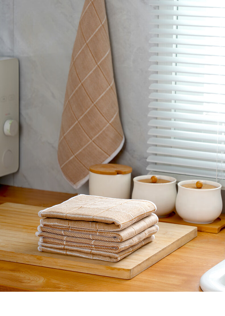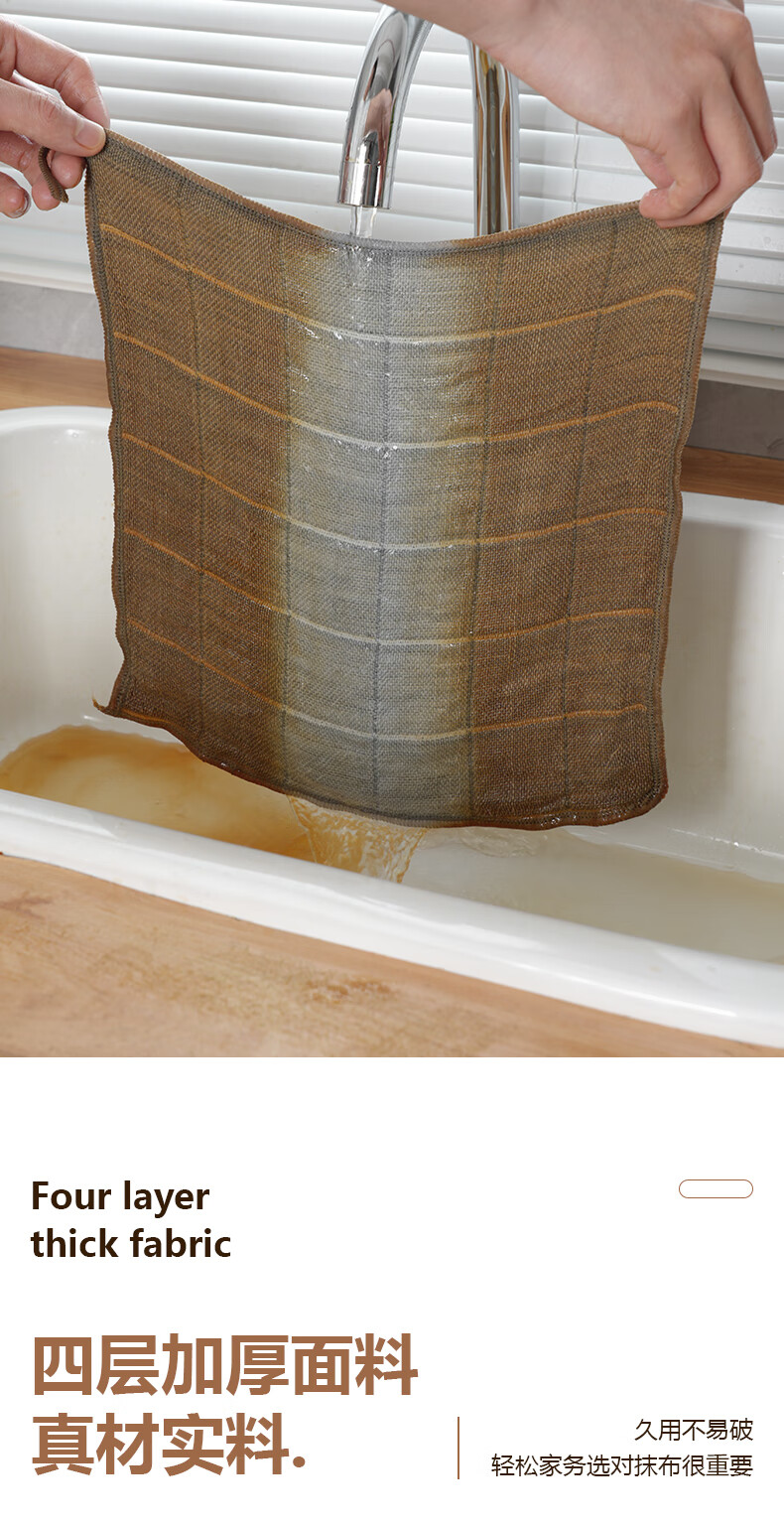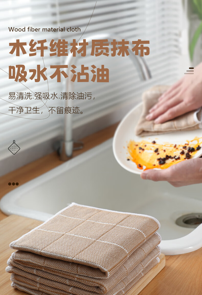 Dishwashing cloth for kitchen, not easy to stain with oil, thickened wood fiber, easy to clean, absorbent, not easy to shed lint, scouring pad, upgraded thickened gray coffee, 4 pieces, 30*30cm