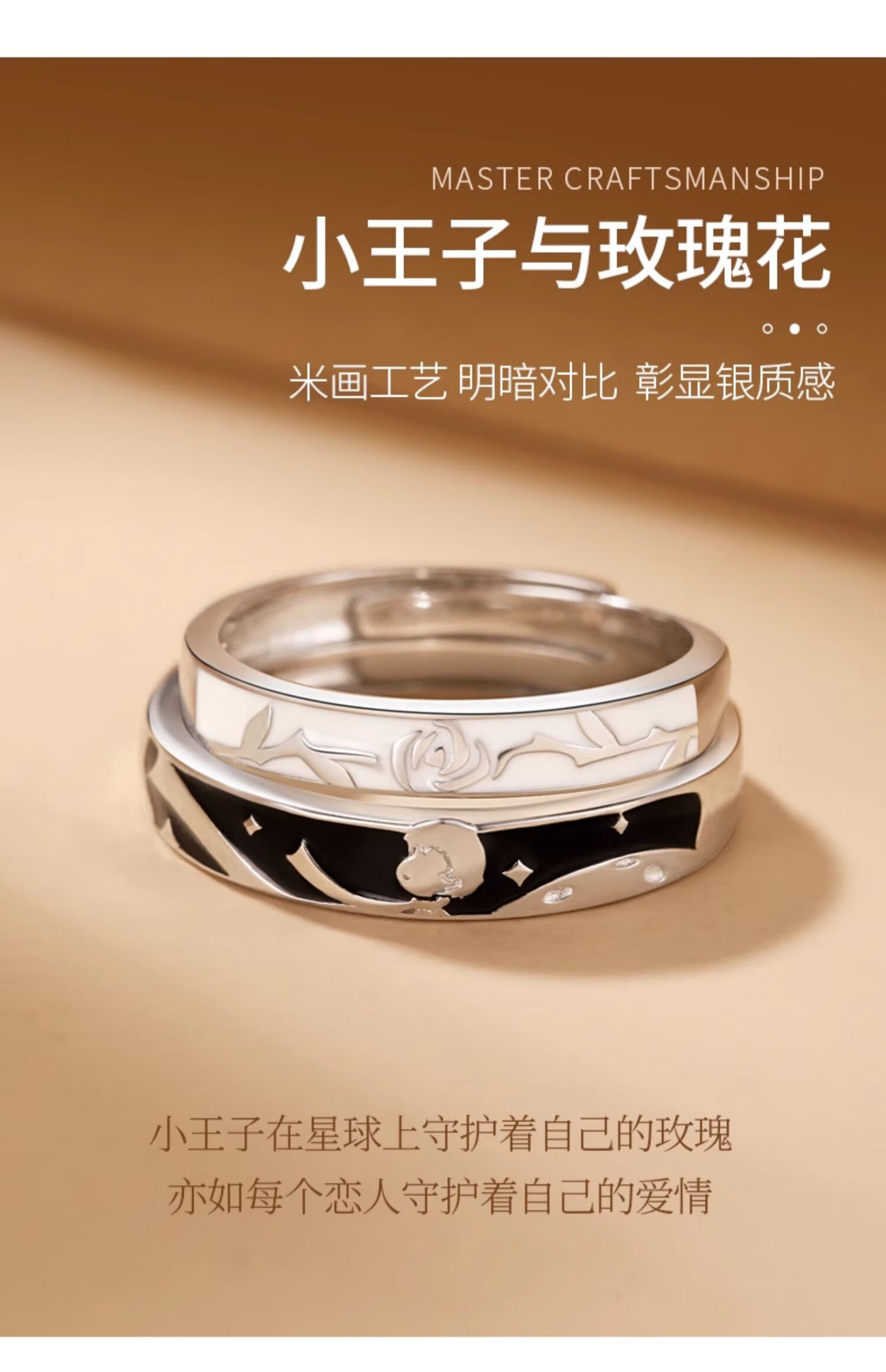 MZMZ Prince and Rose Platinum Couple Ring PT950 Platinum Pair Ring Valentine's Day Birthday Gift for Girlfriend and Wife Light Luxury Style - Little Prince and Rose