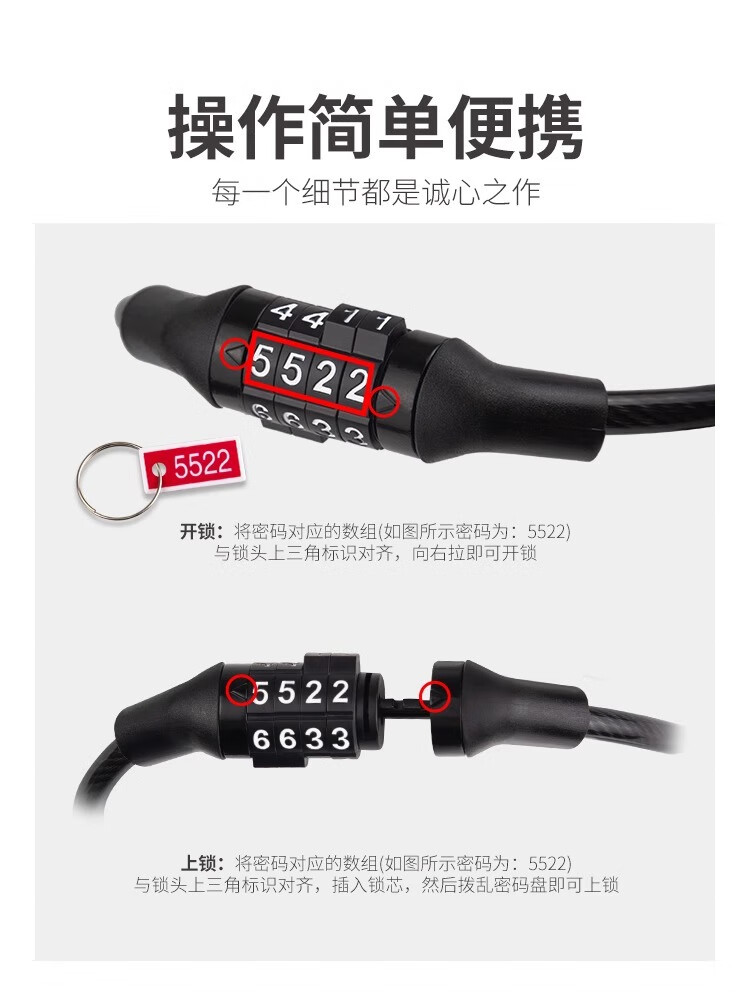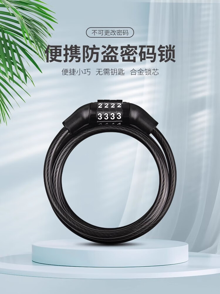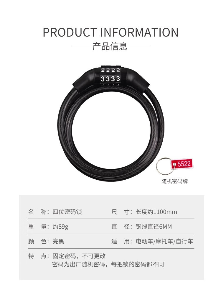 Four-digit bicycle lock fixed password lock electric bicycle chain lock steel cable lock bicycle anti-theft bicycle password lock regular model hot-selling bicycle lock