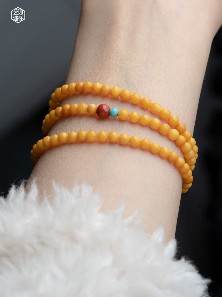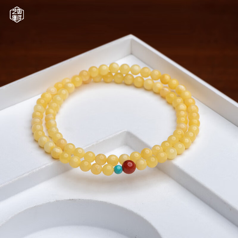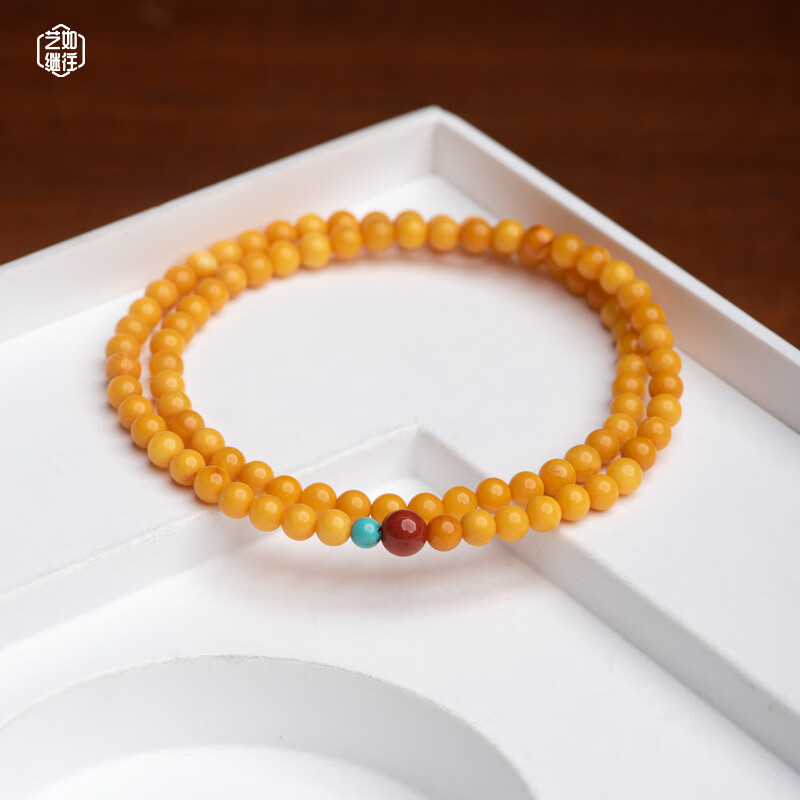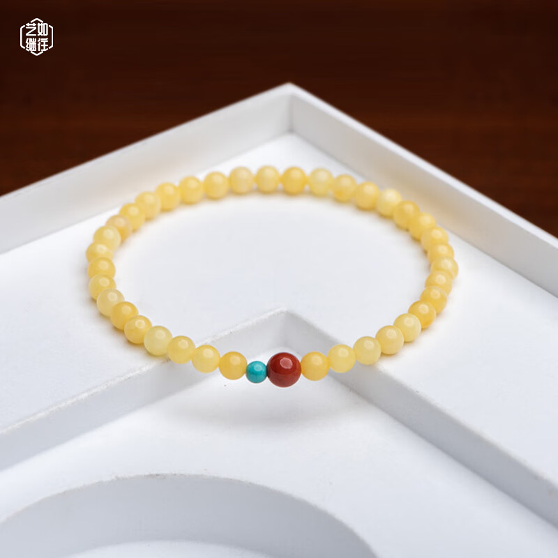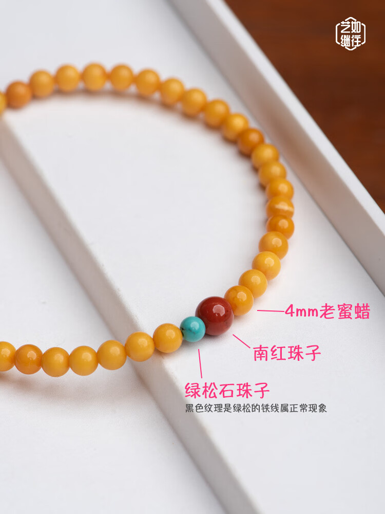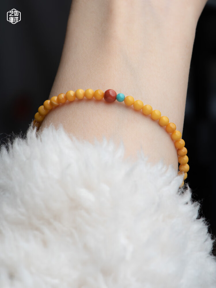 Iosn Yi Ru Ji Go Xiaomi Pearl Beeswax Bracelet Chicken Oil Yellow Women's Natural Old Honey Bracelet Amber 4mm Green Pine Three Circles 4mm Dark Old Honey Single Circle, Natural Beeswax Can Issue Certificate Clean Hand Circumference 15cm