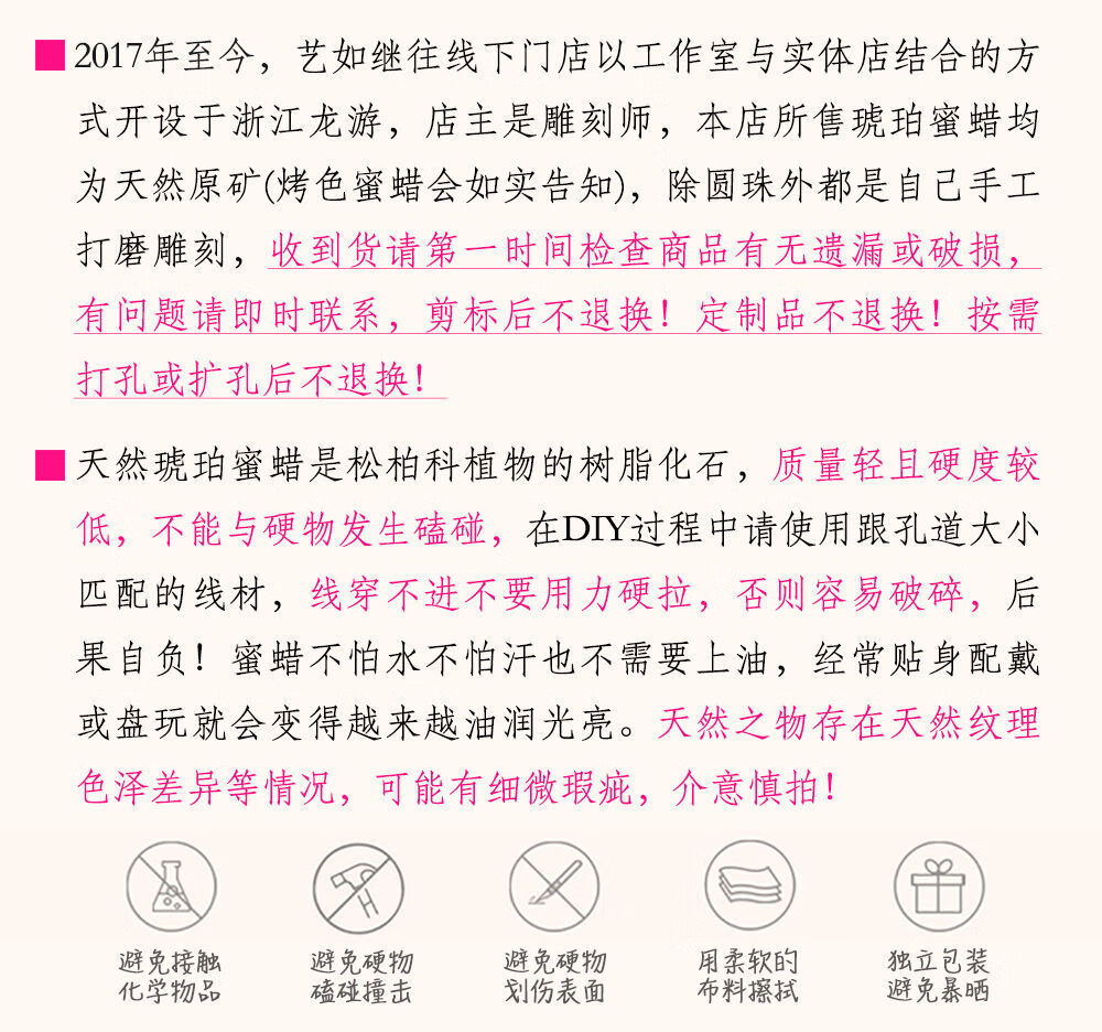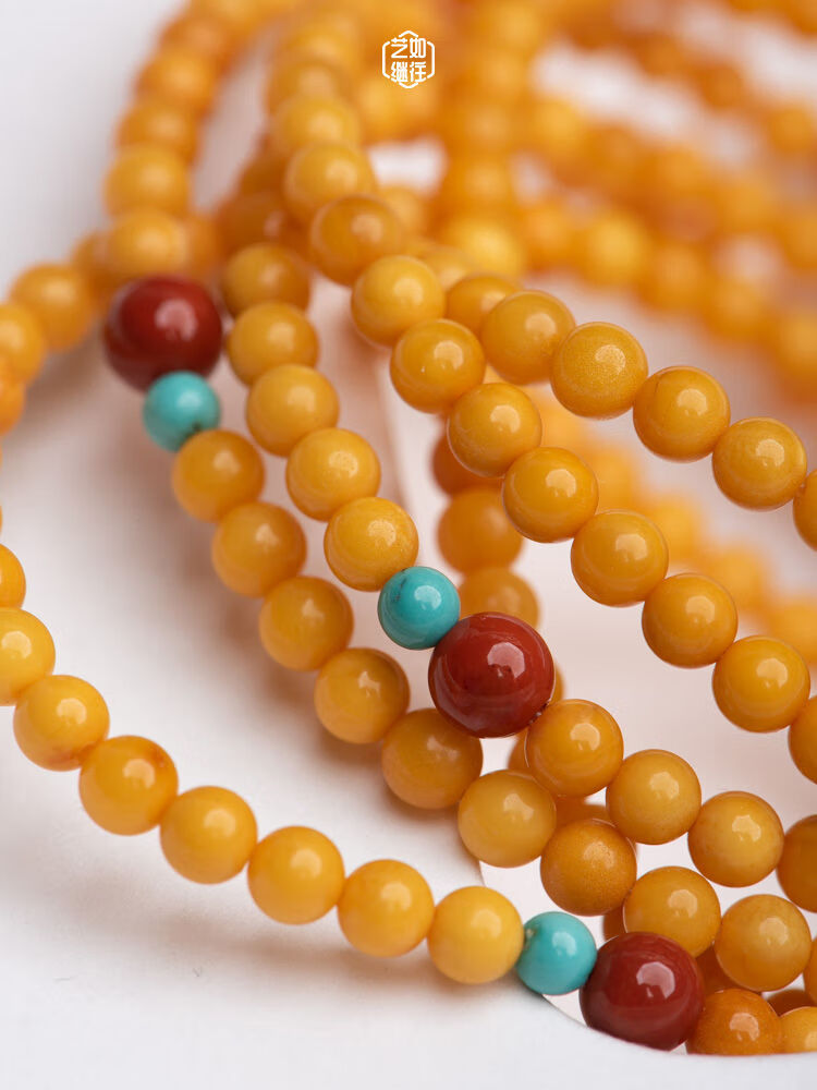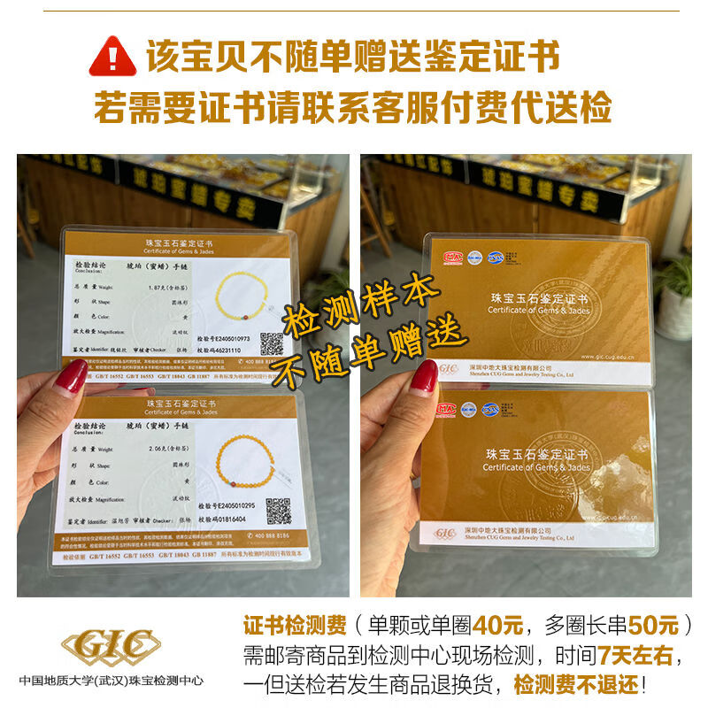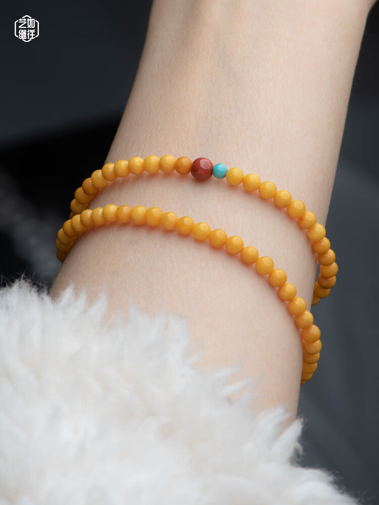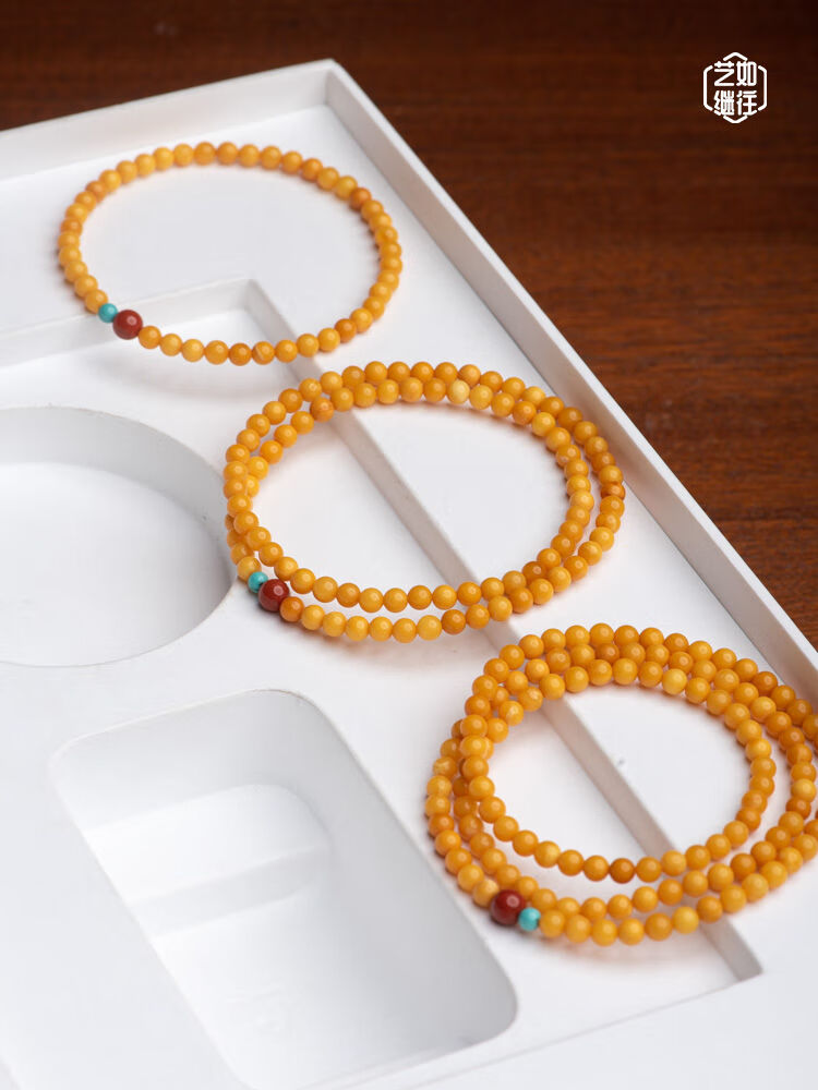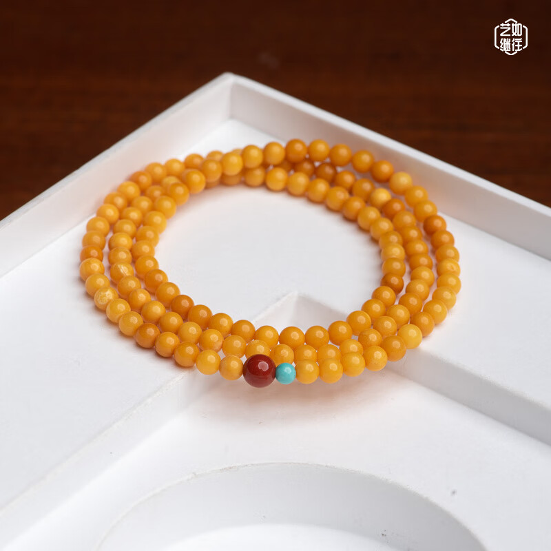Iosn Yi Ru Ji Go Xiaomi Pearl Beeswax Bracelet Chicken Oil Yellow Women's Natural Old Honey Bracelet Amber 4mm Green Pine Three Circles 4mm Dark Old Honey Single Circle, Natural Beeswax Can Issue Certificate Clean Hand Circumference 15cm
