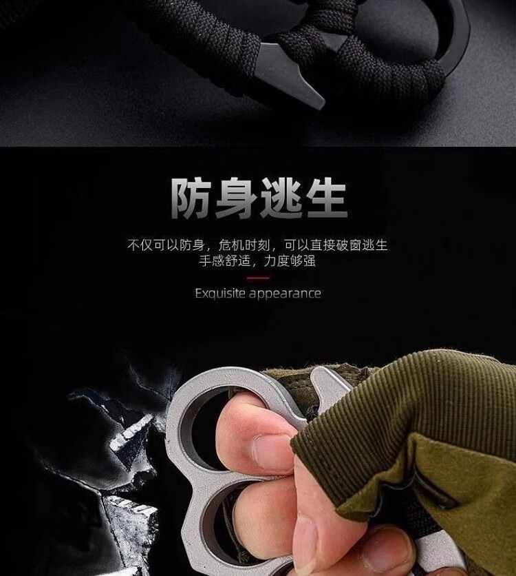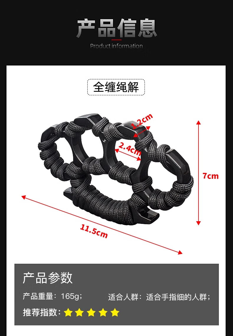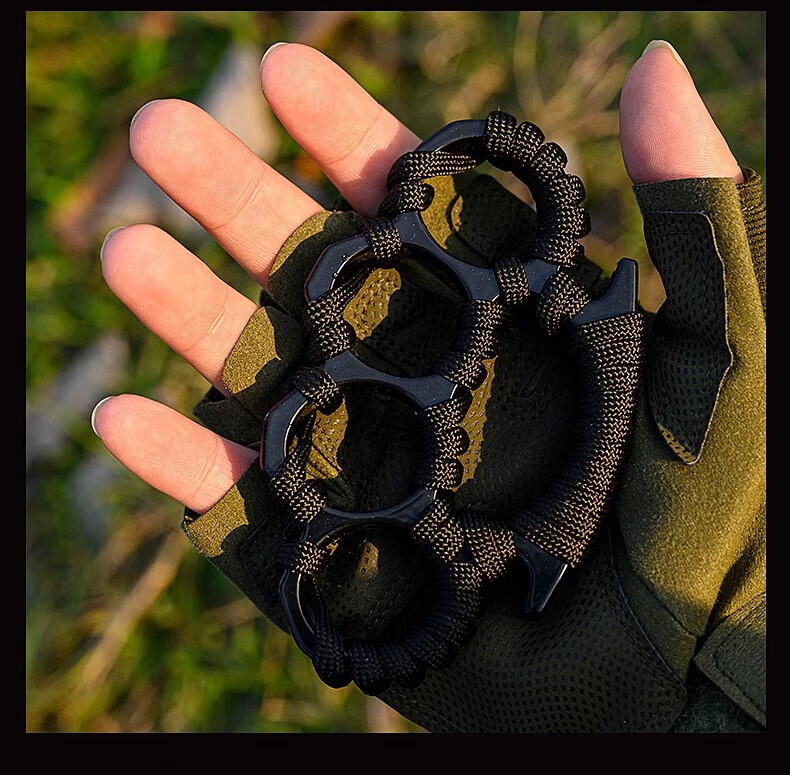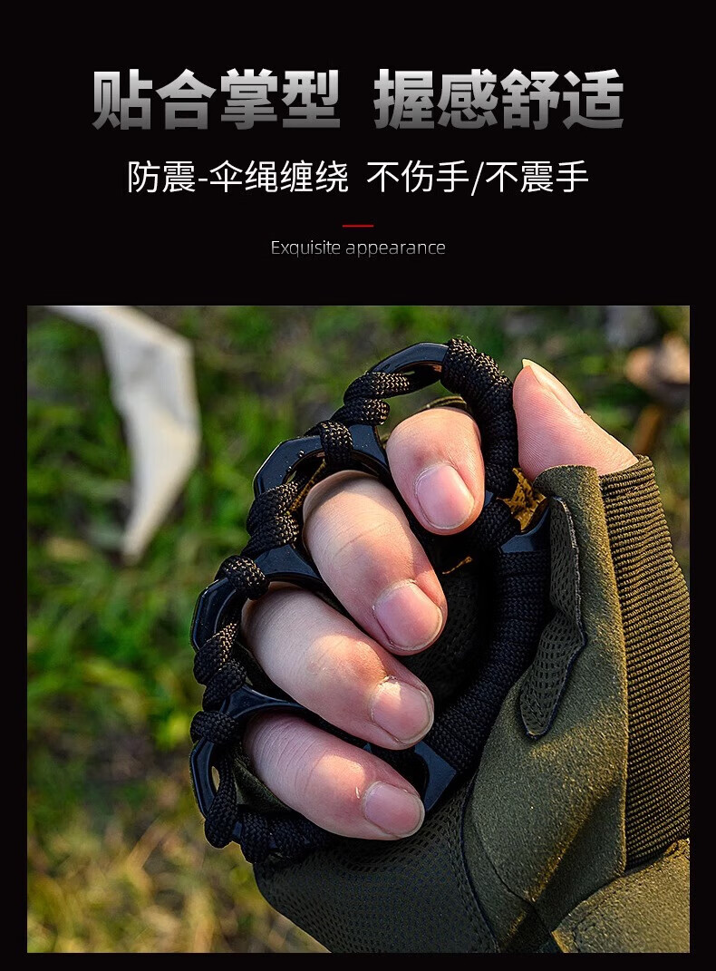 Self-defense finger tiger self-defense weapon ring outdoor assault finger tiger hand jab legal portable finger tiger window breaker upgraded model zinc alloy black dare S team rope style selected material / fit palm shape / firm grip