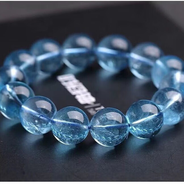 SIZAN Aquamarine Bracelet Ice Seed Wealth Transfer Temperament Sweet and Elegant Aquamarine Bracelet Unpopular Men Aquamarine 12mm