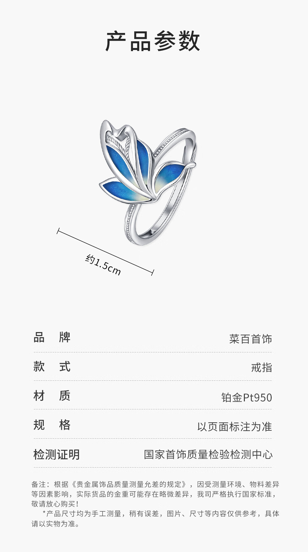 Caibai Jewelry Platinum Ring Pt950 Platinum Elegant Gilded Blue Feather Butterfly Fashion Platinum Living Butterfly Ring Price BJ Platinum Ring Approximately 3.80g