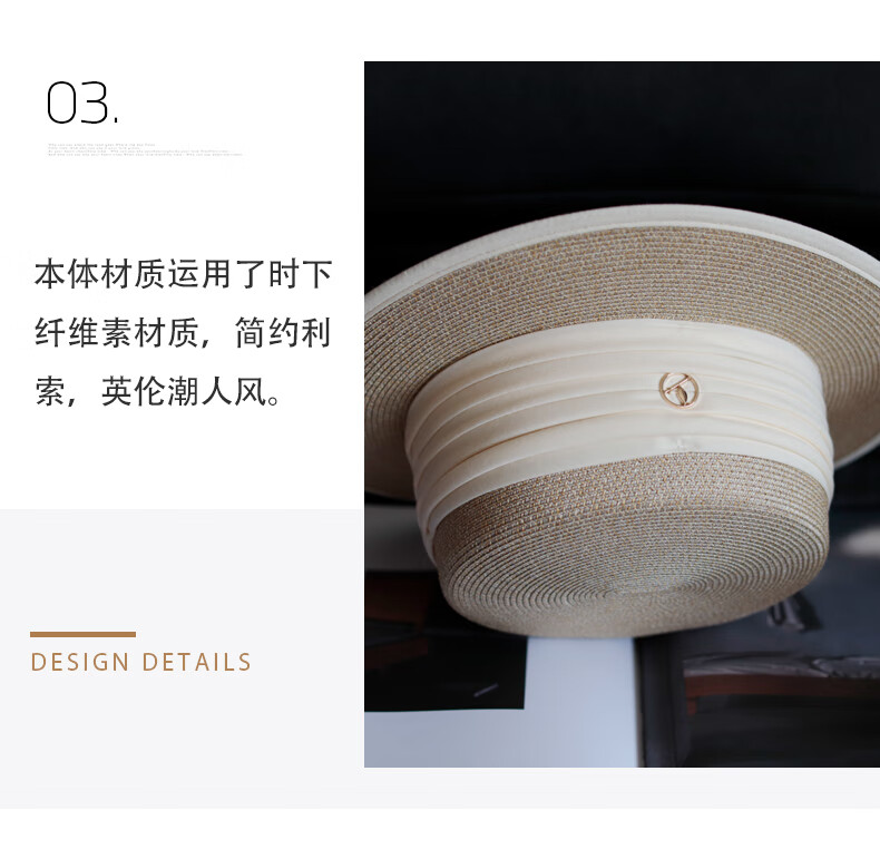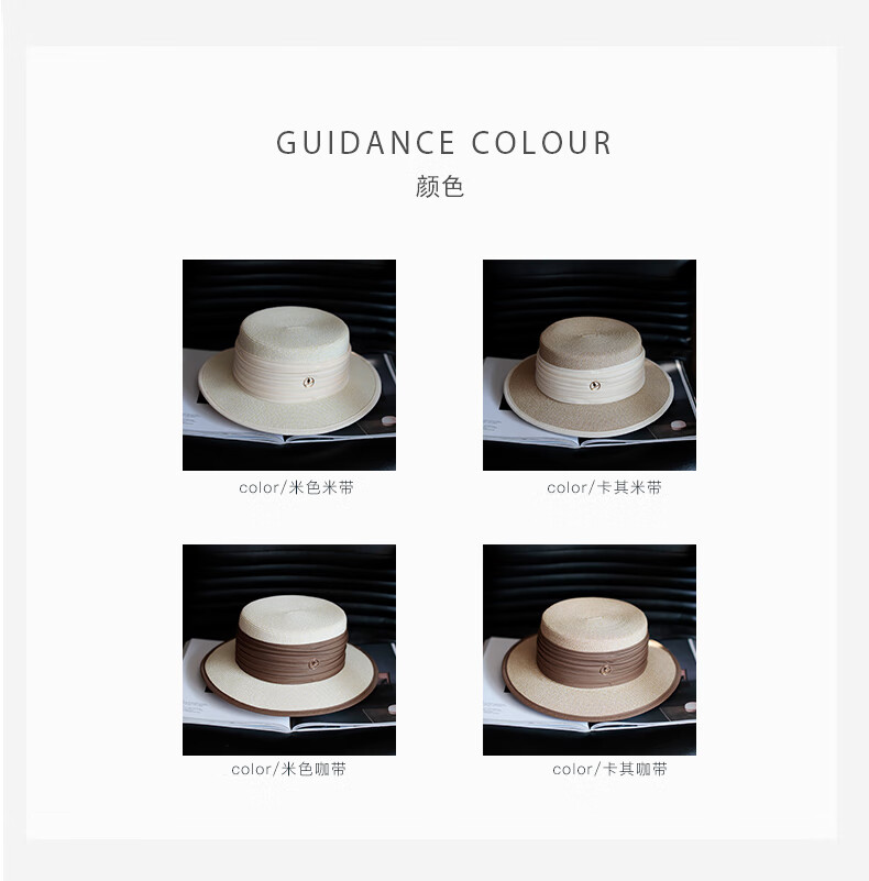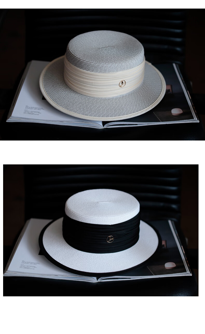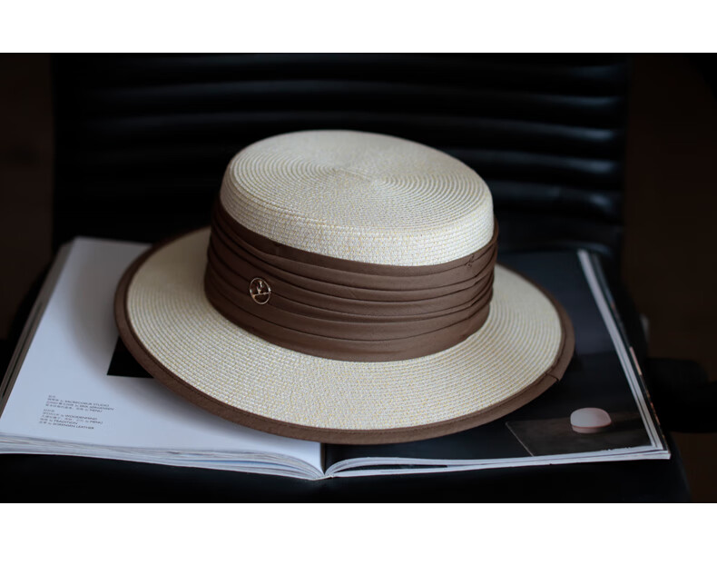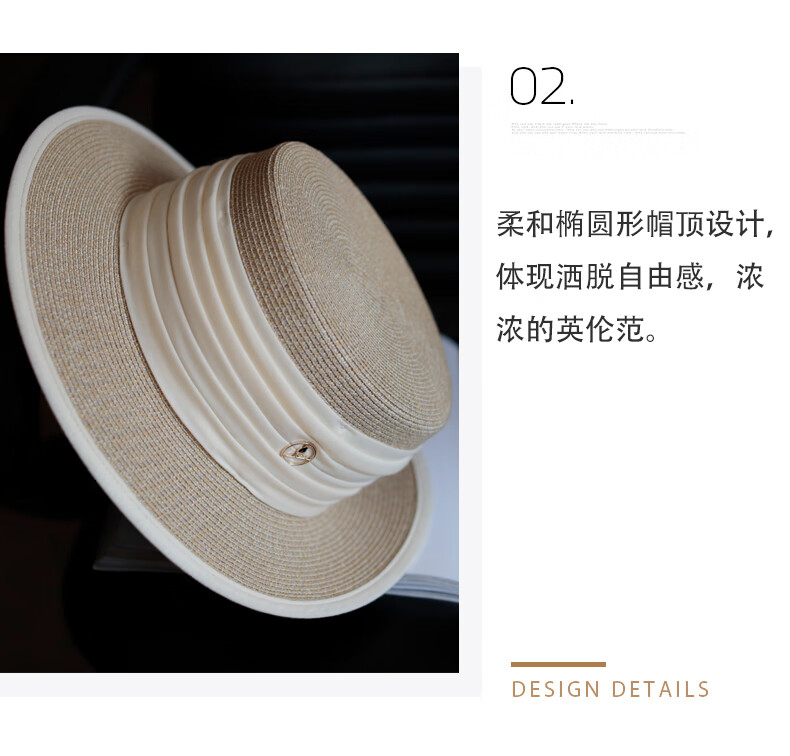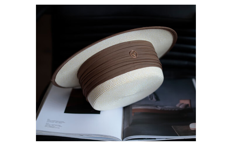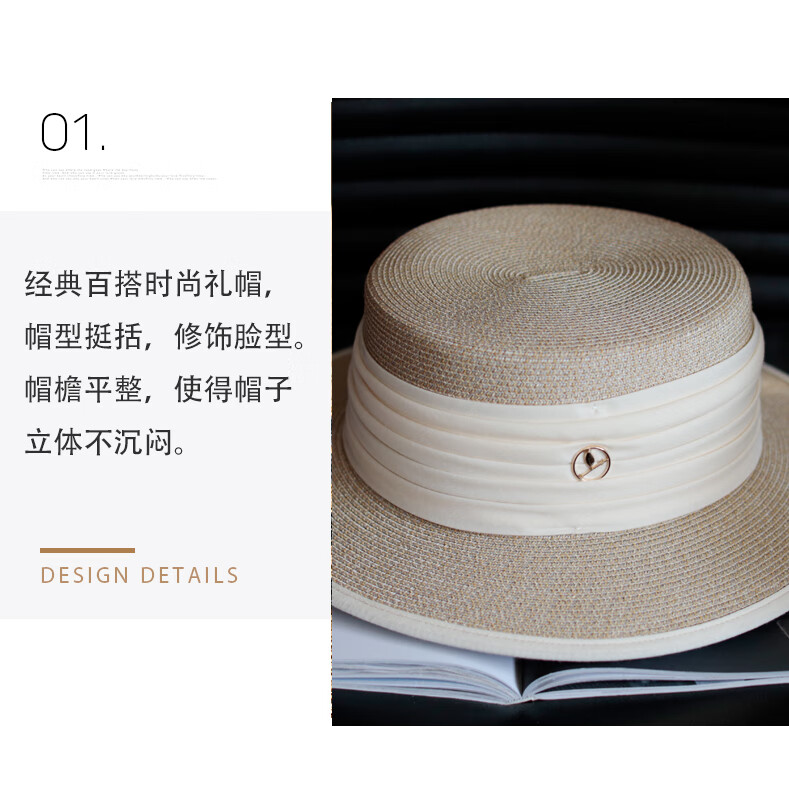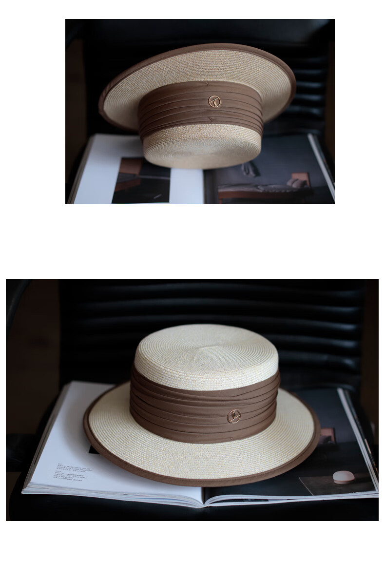 Tochino straw hat spring and summer new style French flat top small fresh wide brim sun hat pleated white sun protection sun hat beige rice belt M (56-58cm) one size fits all adjustable