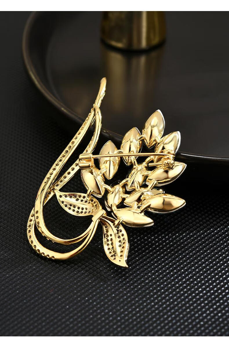 Puri brooch, brooch, pin, accessories, high-end women's crystal temperament, fashionable luxury coat, suit, elegant niche design, gold