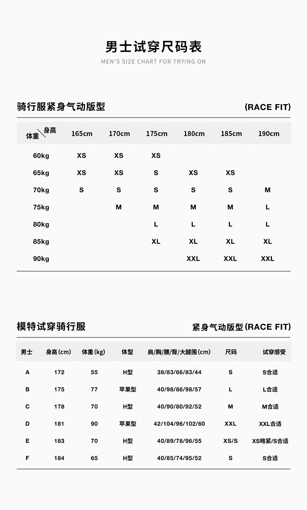 China (cm) 160-165/84-86 165-170 / 88-90 167-172 / 92-96 168-173 / 98-102 170-176 / 106-110