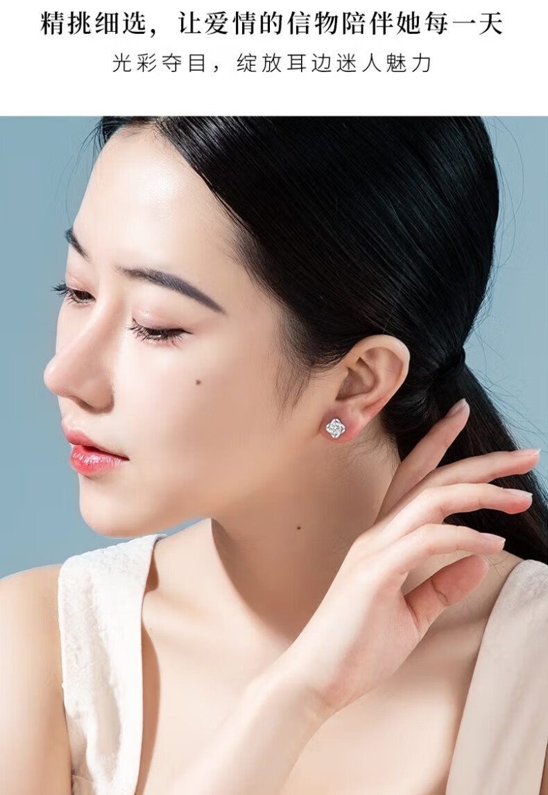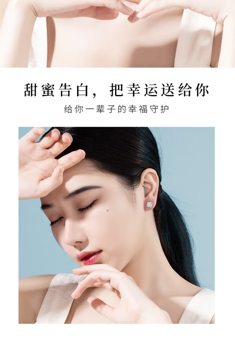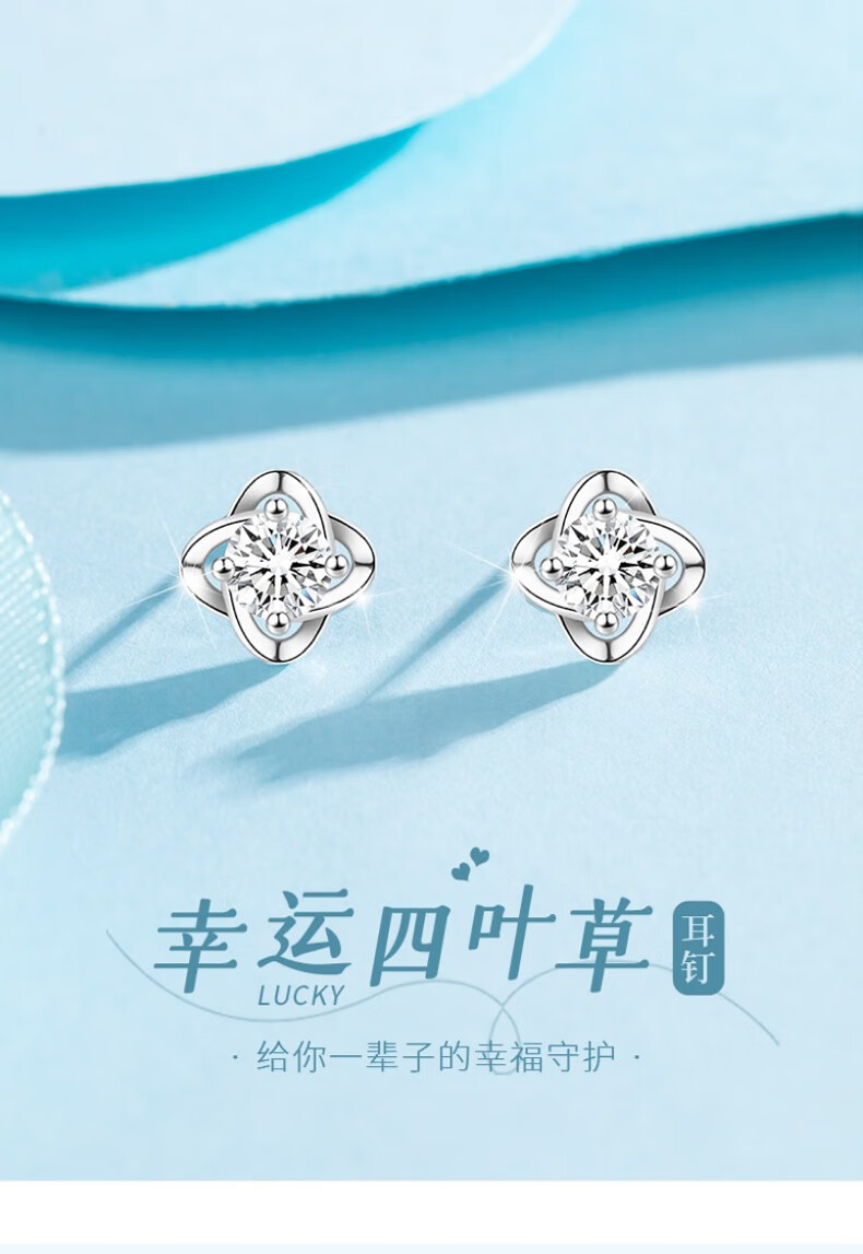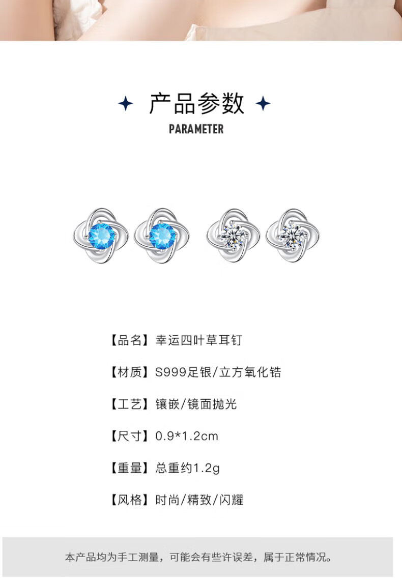 QMXD four-leaf clover S999 sterling silver earrings for women, pure silver fashion jewelry, Valentine's Day birthday gift for girlfriend, a pair of four-leaf clover earrings
