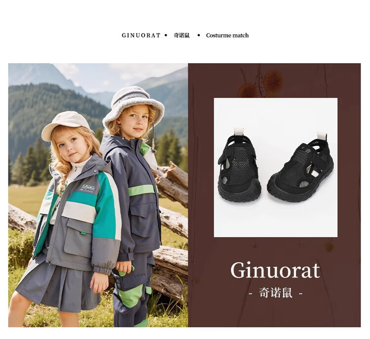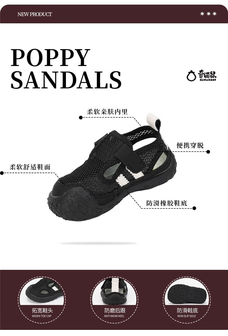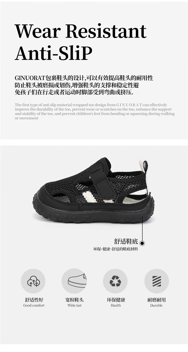 Chino Mouse Official Genuine Summer Children's Sandals Baby Breathable Mesh Casual Children's Outdoor Soft Soled Toddler Shoes Khaki Size 16 (Suitable for Feet Length 11.0-11.5cm)