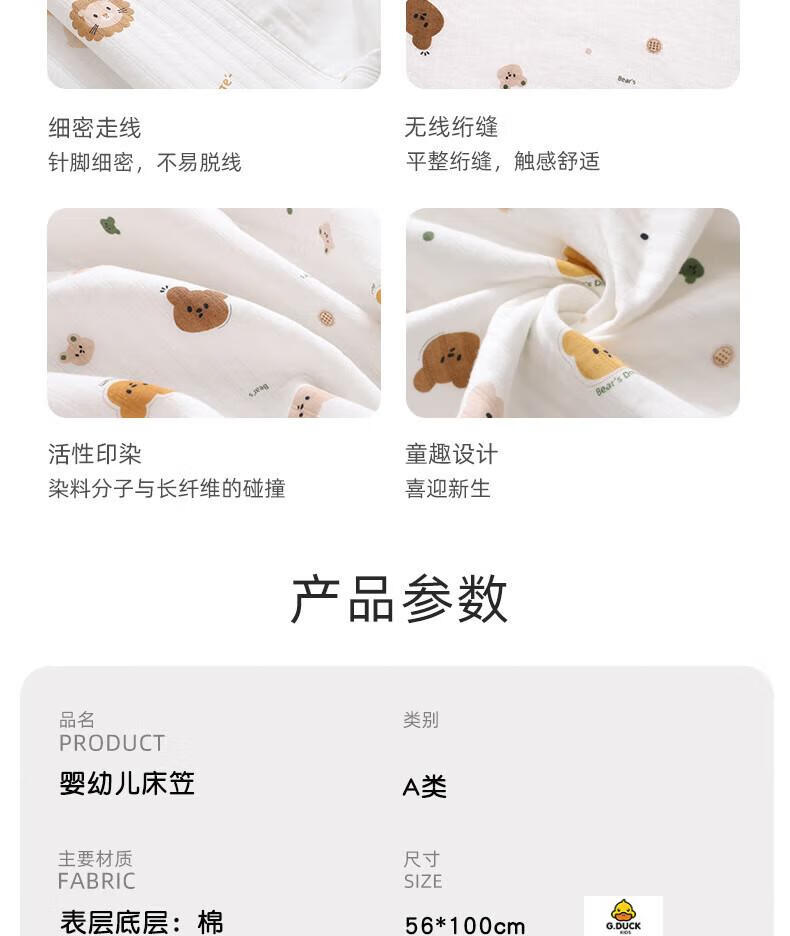 G.DUCKKIDS crib fitted sheet baby crib simple cotton type A spliced mattress cover special newborn children's bed cover bed cover Xiaohua 80*200
