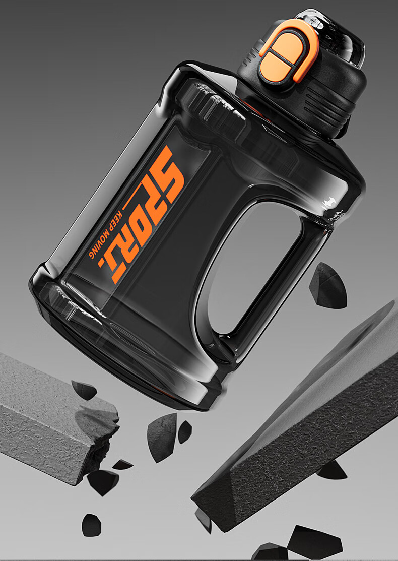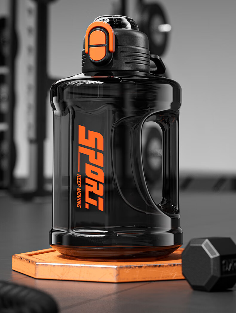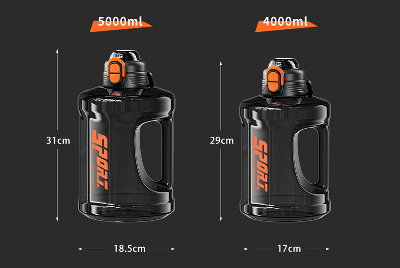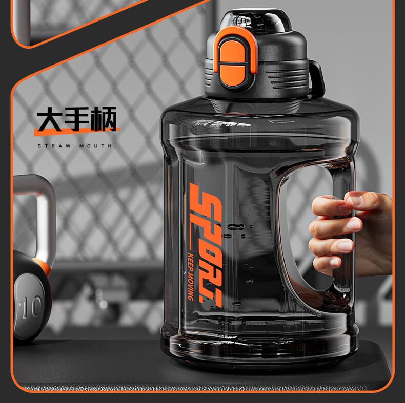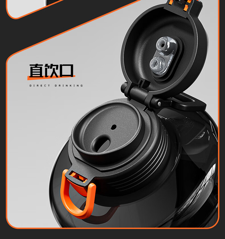 Anjiren Extra Large Capacity Plastic Water Cup High Temperature Resistant Dayton Bucket 2025 Summer New Boys Sports Construction Site Anti-fall Water Bottle Extra Large Capacity + Double Drinking Cover Sports Black 2.5L