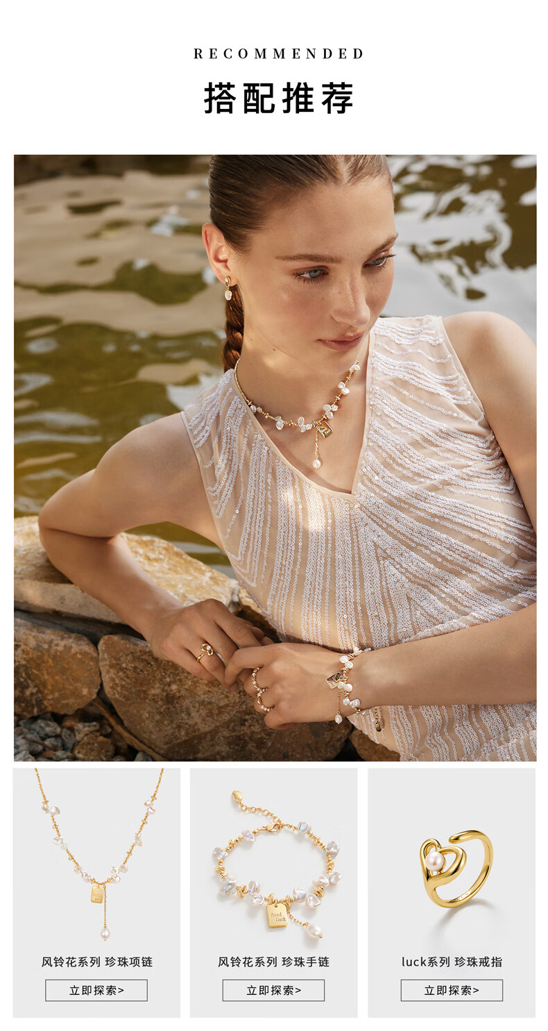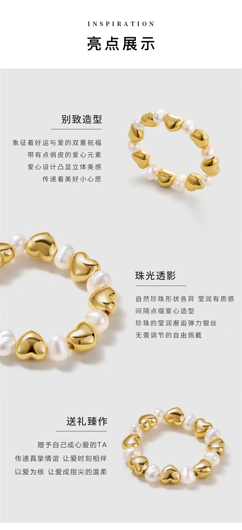 Amber Lollipop pearl ring women's love beaded index finger ring niche ring anniversary birthday gift for girlfriend and wife gold (luck series)