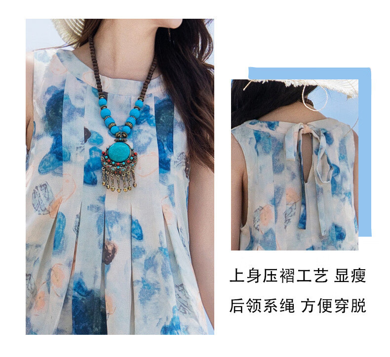 Buenpu parent-child clothing, mother and daughter clothing for a family of three, beach holiday beach skirt, blue 50, baby boy 150