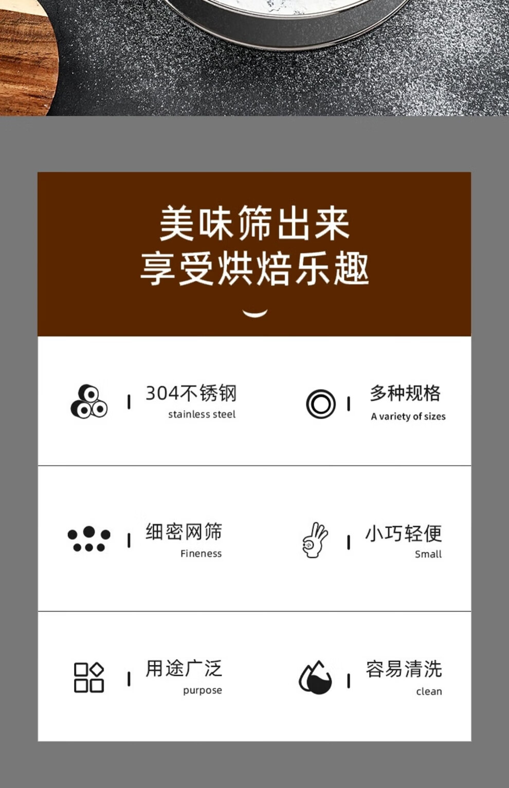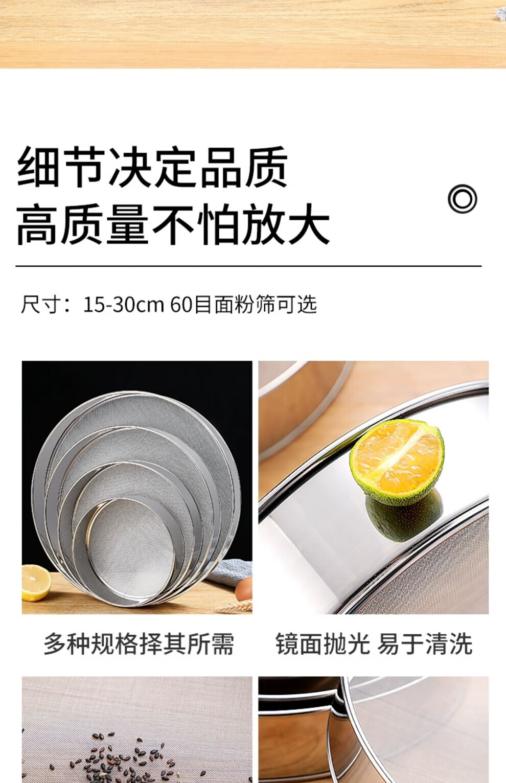 Riheshengtang sieve flour sieve household baking tool sieve 304 stainless steel filter powder sieve basket handheld ultra-fine 15cm flour sieve 201 stainless steel