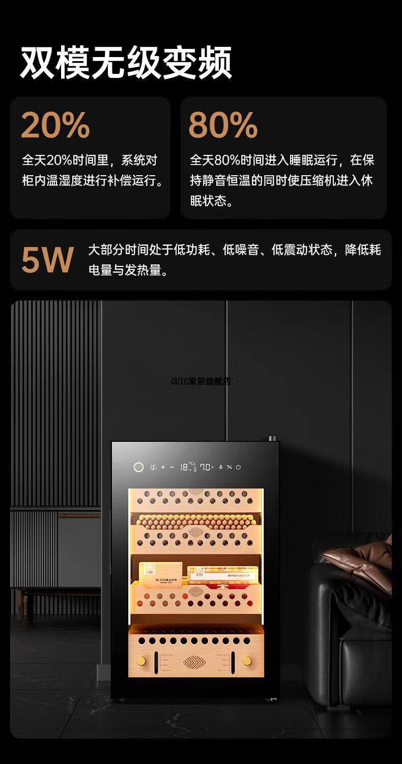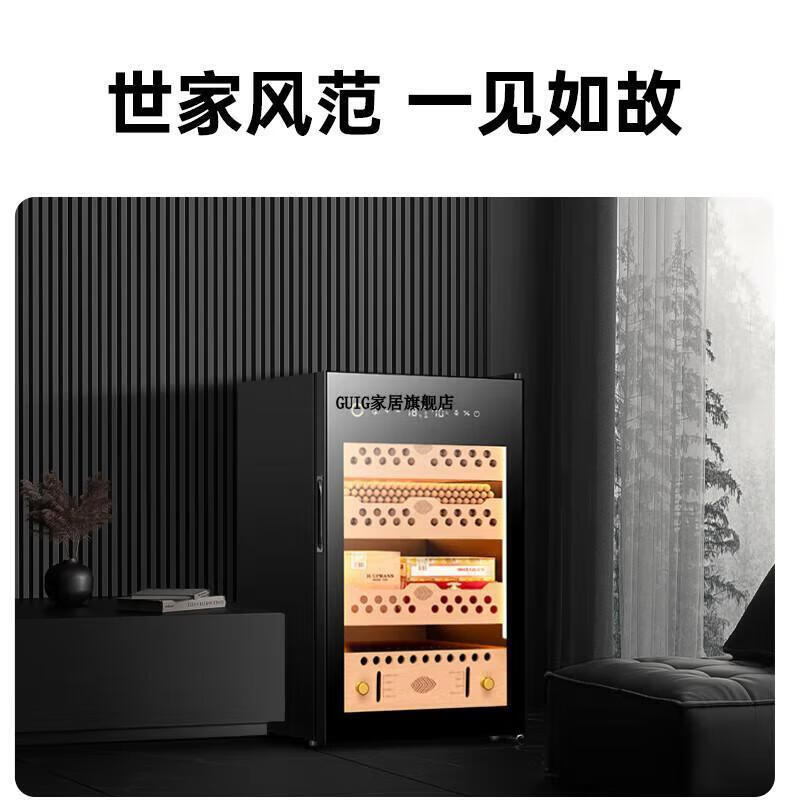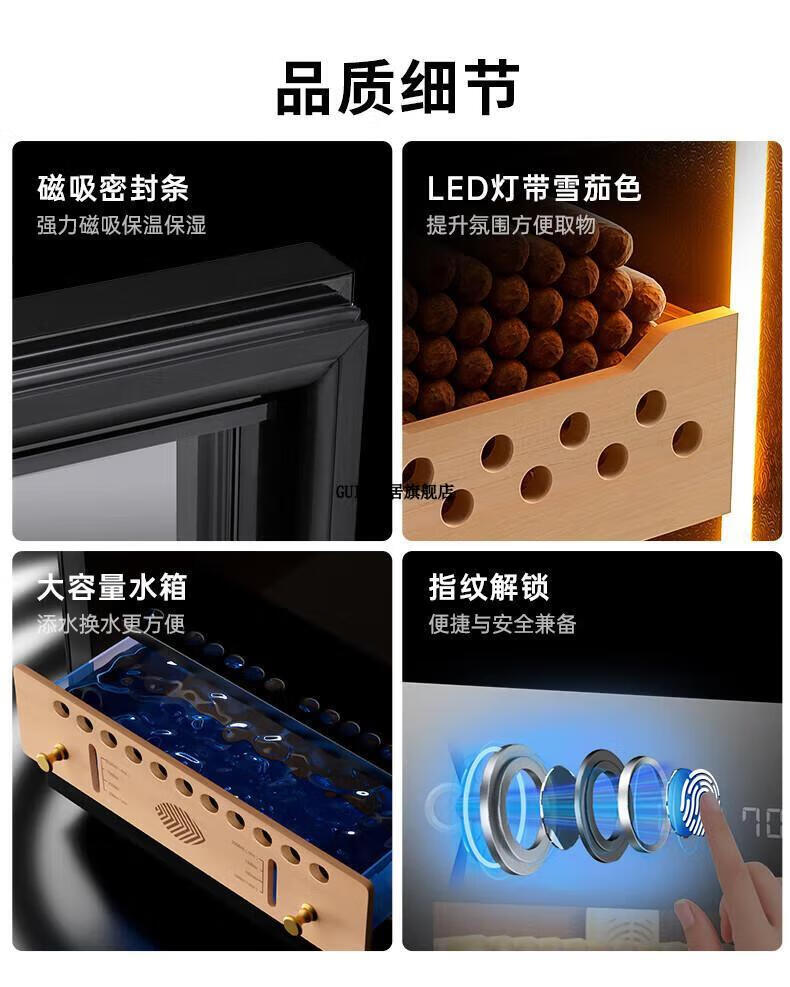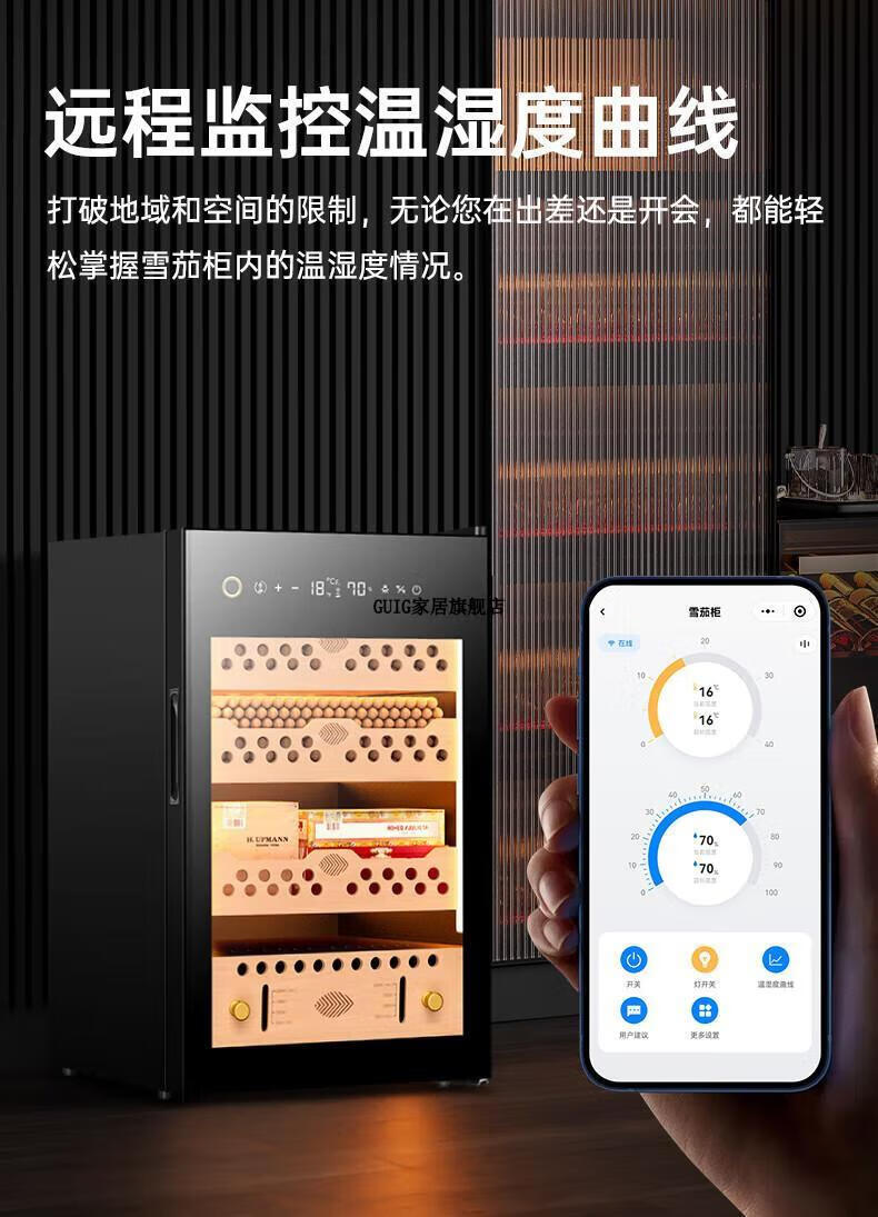 Junpo German imported high-quality cigar cabinet compressor constant temperature and humidity energy-saving silent smart WiFi ammonia-free cedar wood moisturizing cabinet 70C cedar wood three-layer black fingerprint lock + WiFi function + side light strip