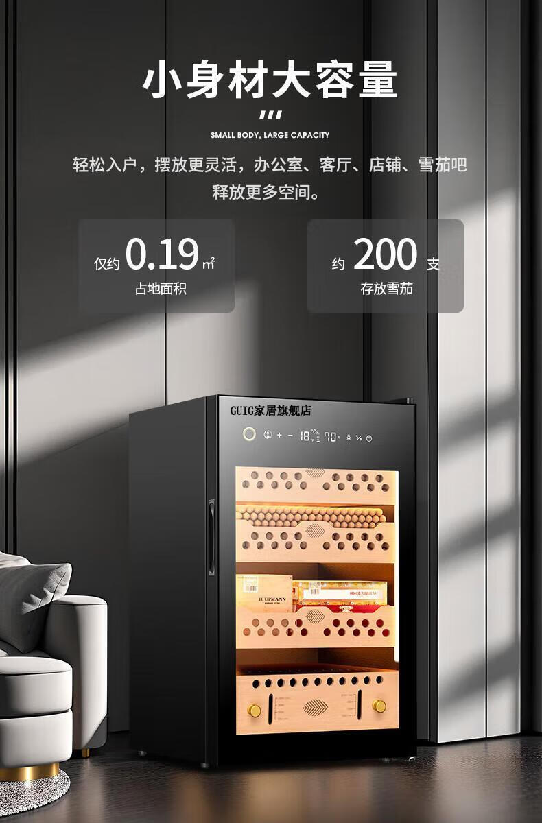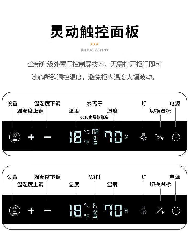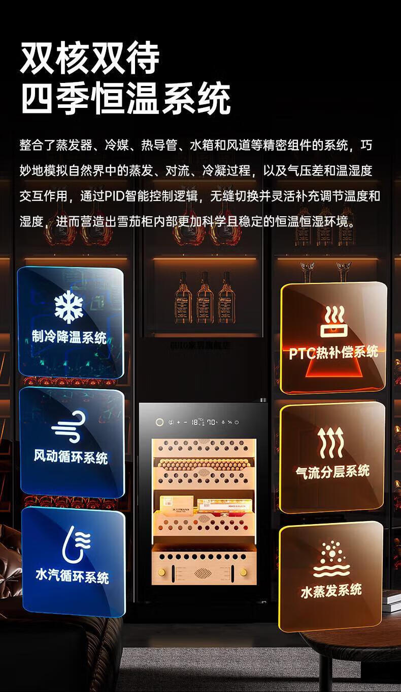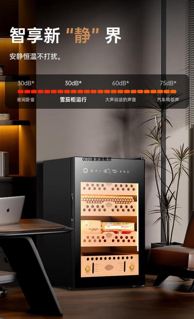 Junpo German imported high-quality cigar cabinet compressor constant temperature and humidity energy-saving silent smart WiFi ammonia-free cedar wood moisturizing cabinet 70C cedar wood three-layer black fingerprint lock + WiFi function + side light strip