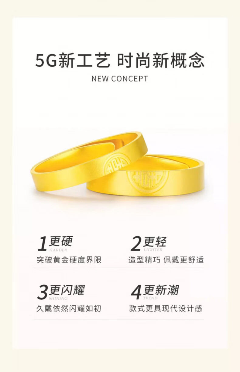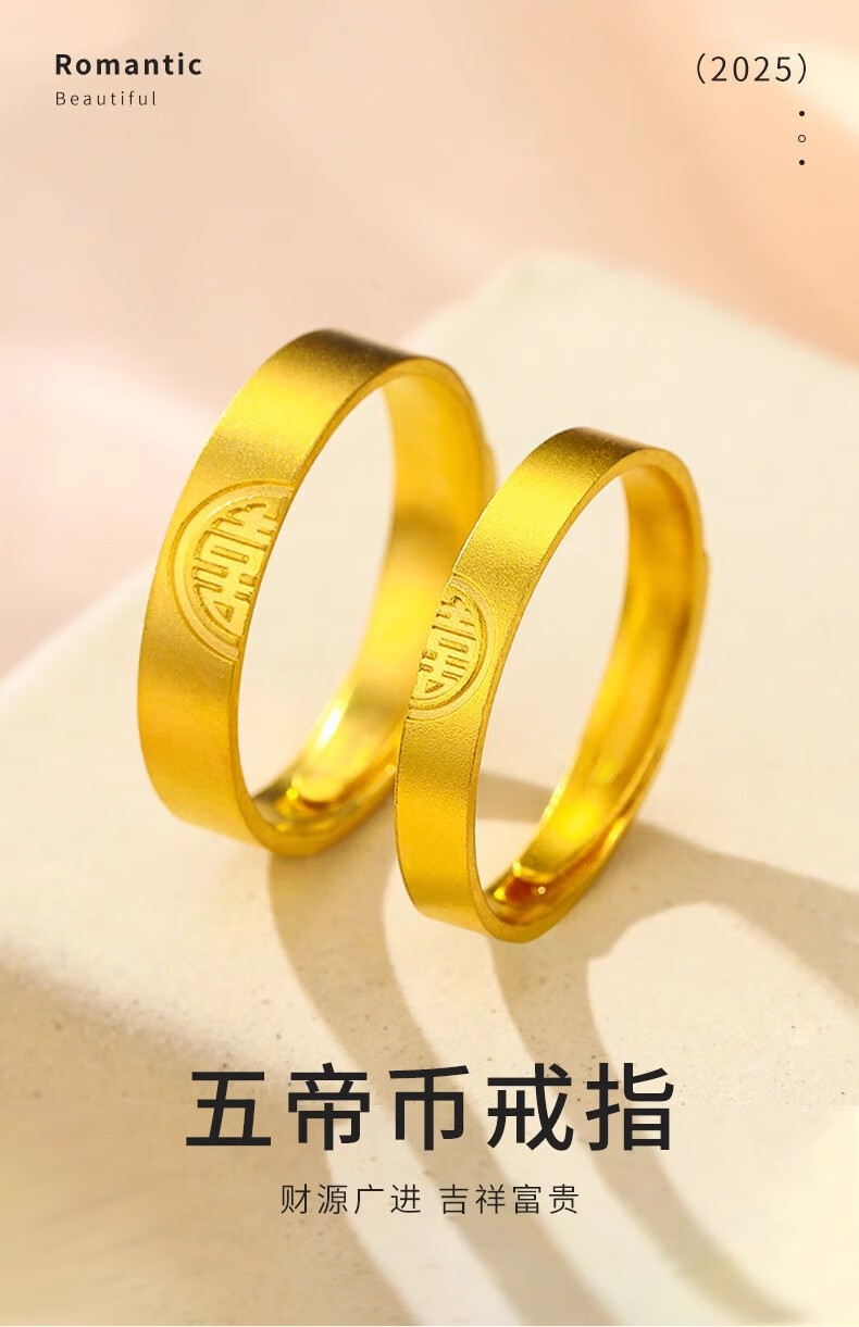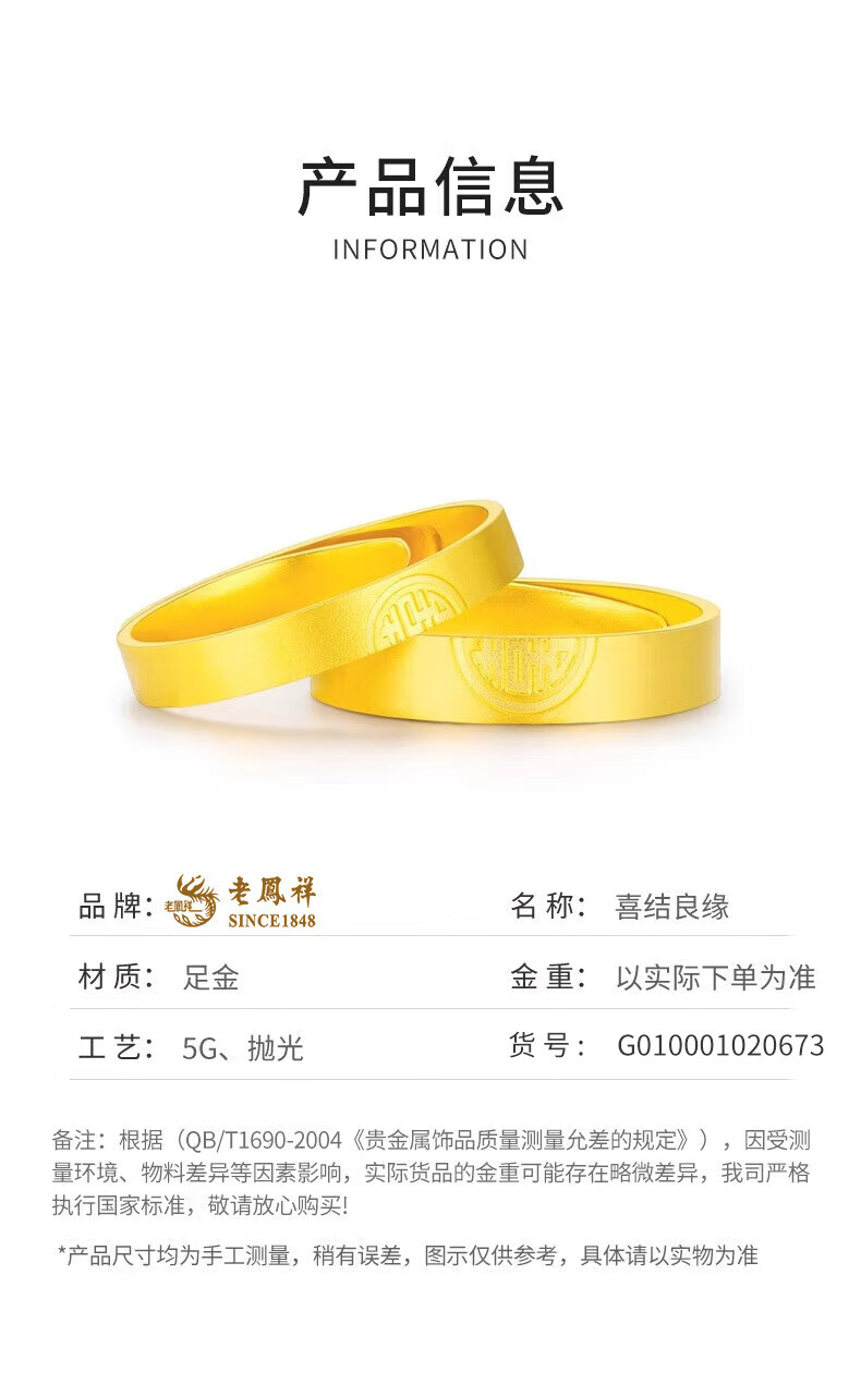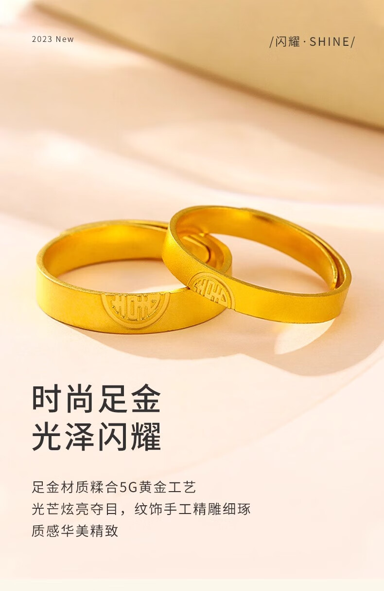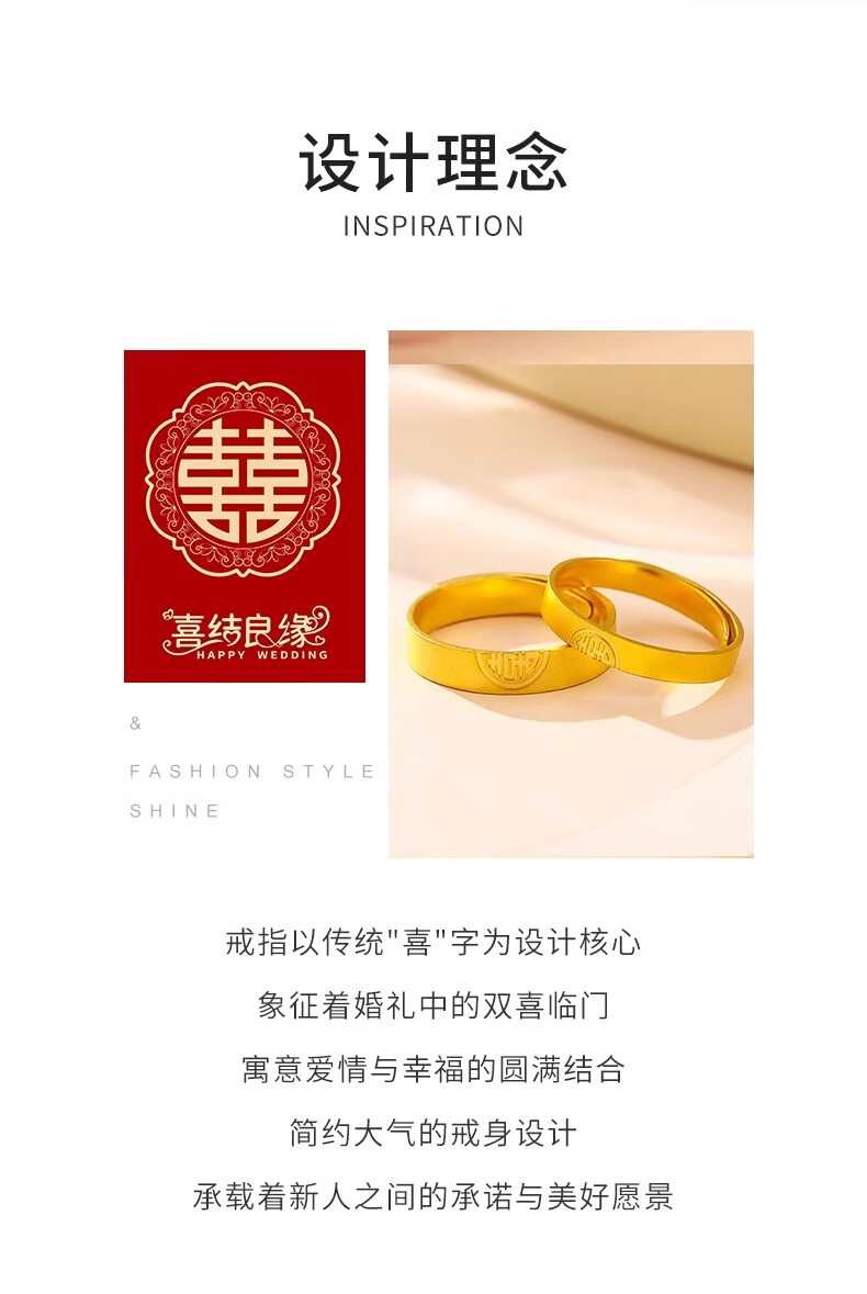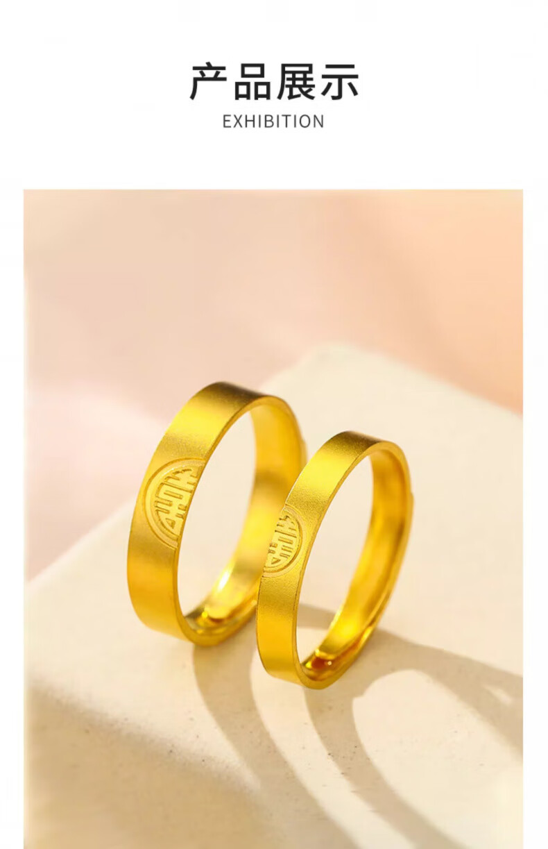 Lao Fengxiang Gold Ring Women's Pure Gold Double Happiness Couple's Ring Men's and Women's Wedding Three Gold Birthday Gifts for Girlfriends and Wife Pure Gold Double Happiness Couple's Ring One Pair About 7.8g