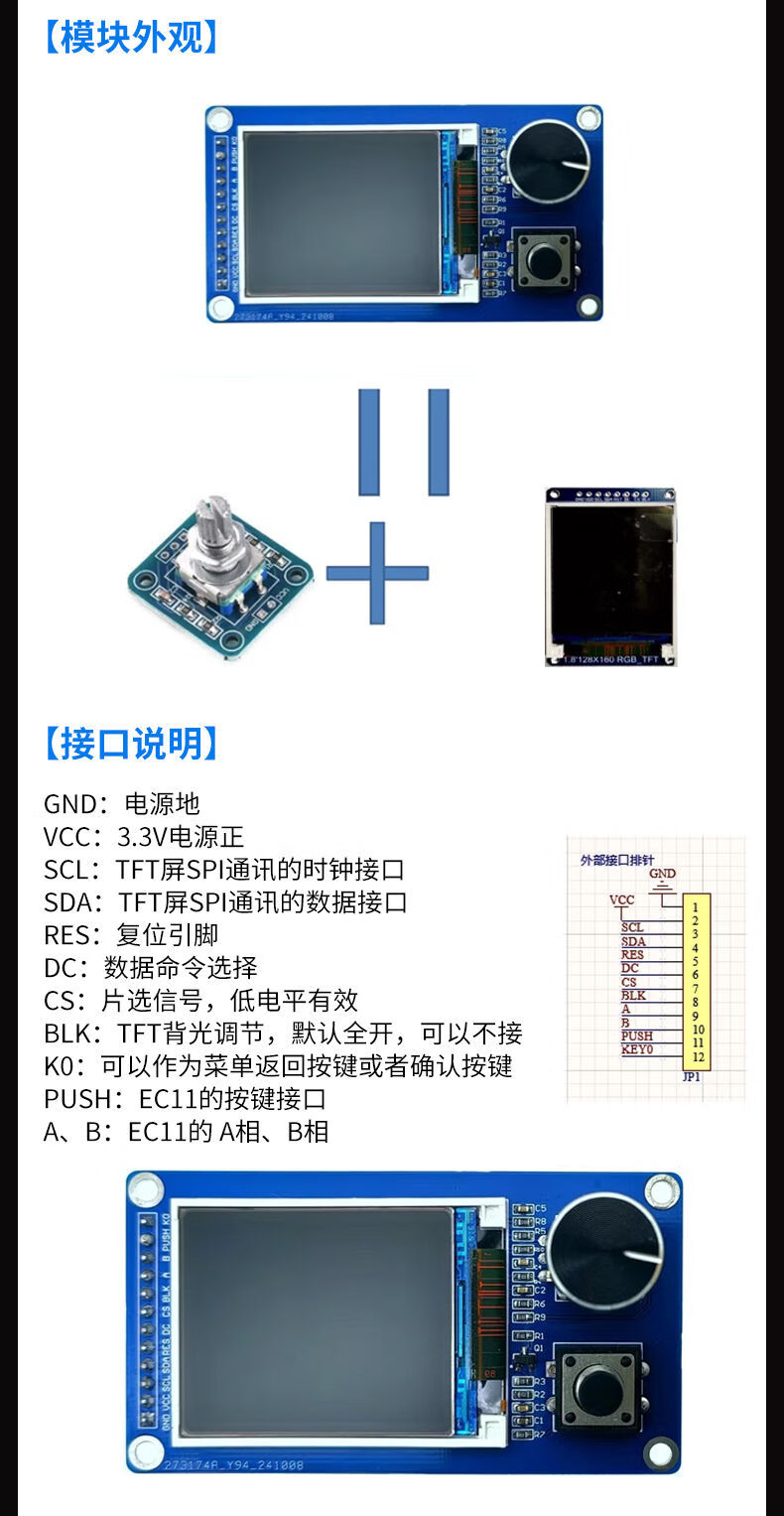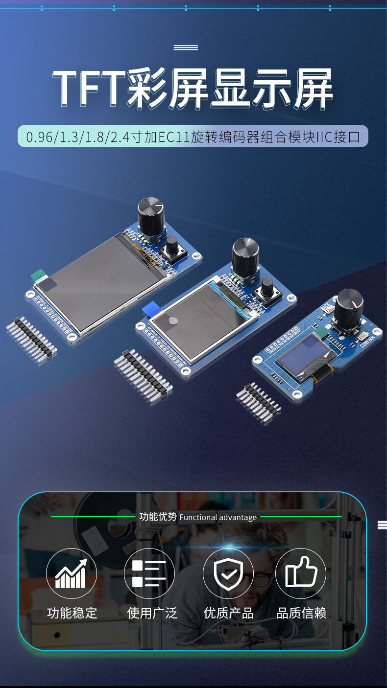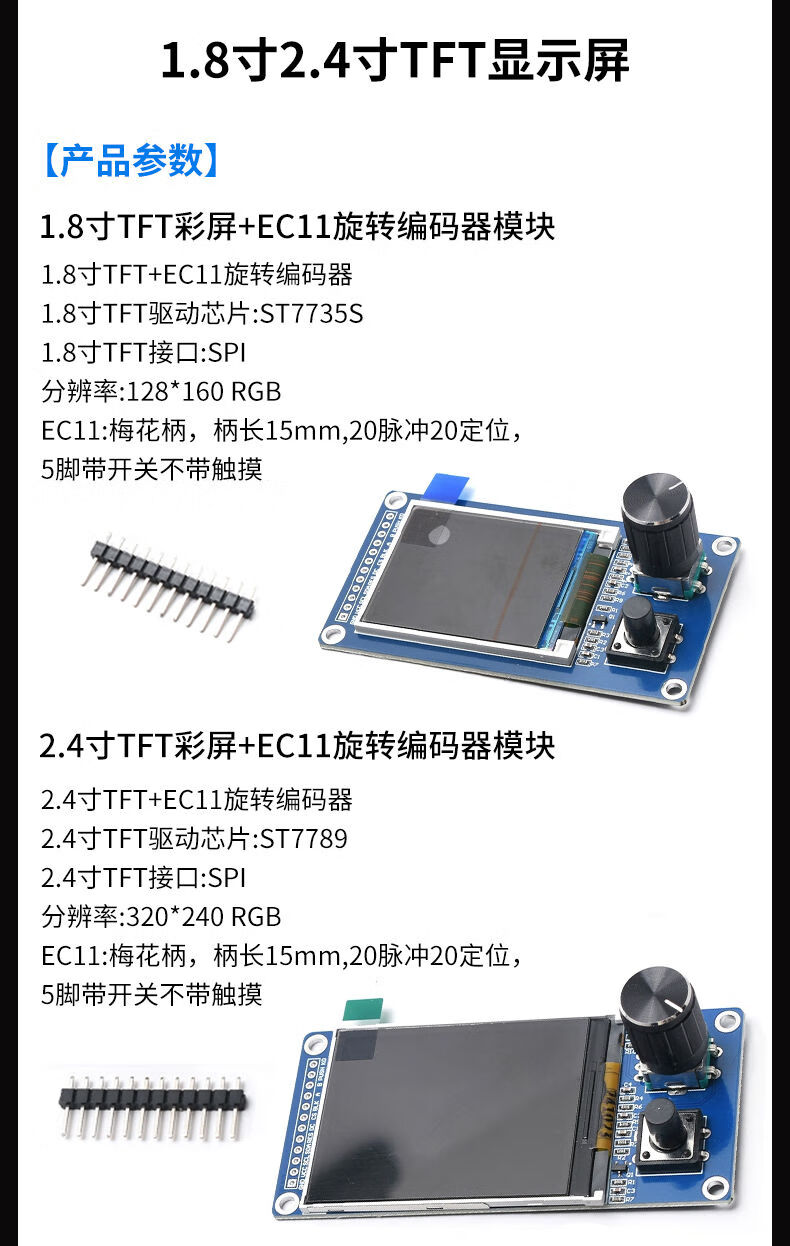 0.96/1.3/1.8/2.4-inch TFT color screen display plus EC11 rotary encoder module IIC interface 1.8-inch TFT color screen + EC11 rotary encoder module