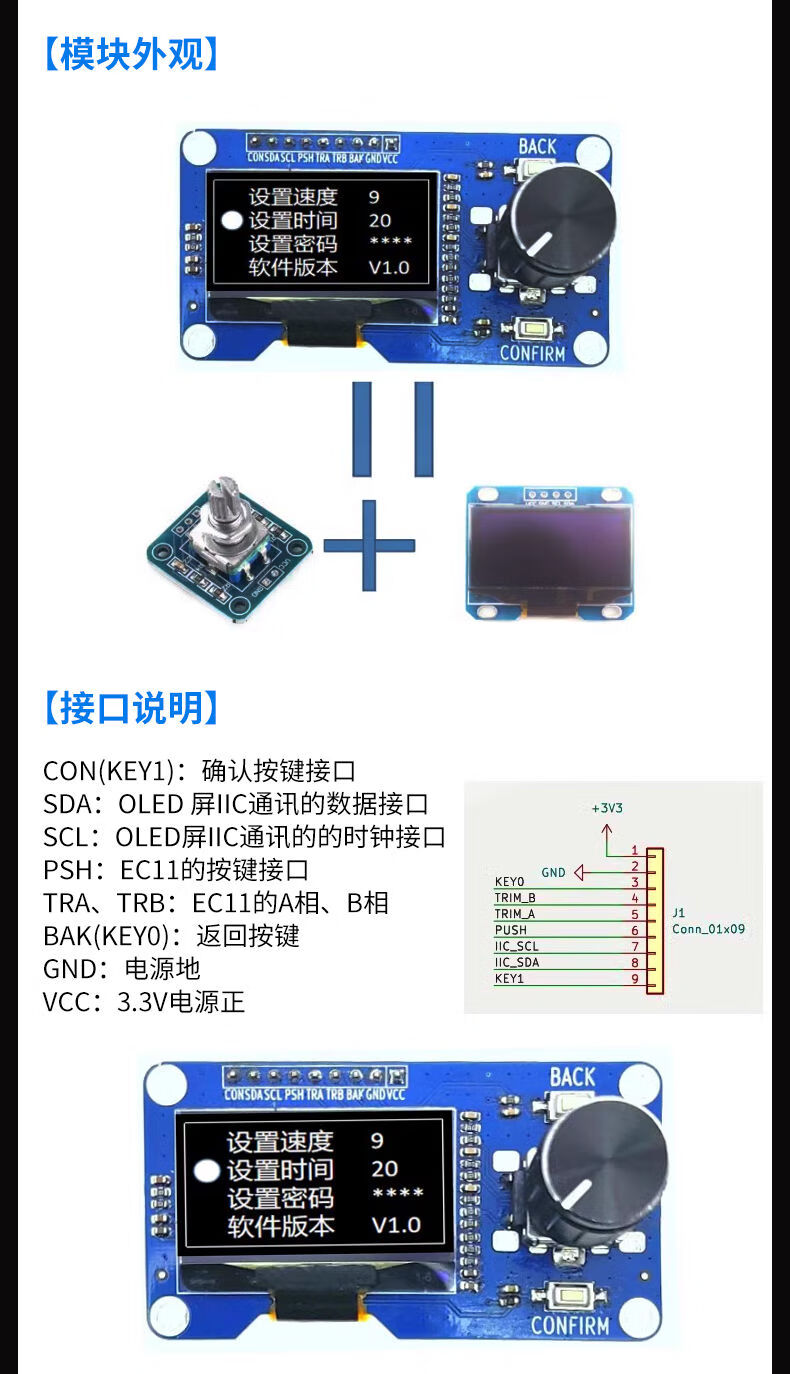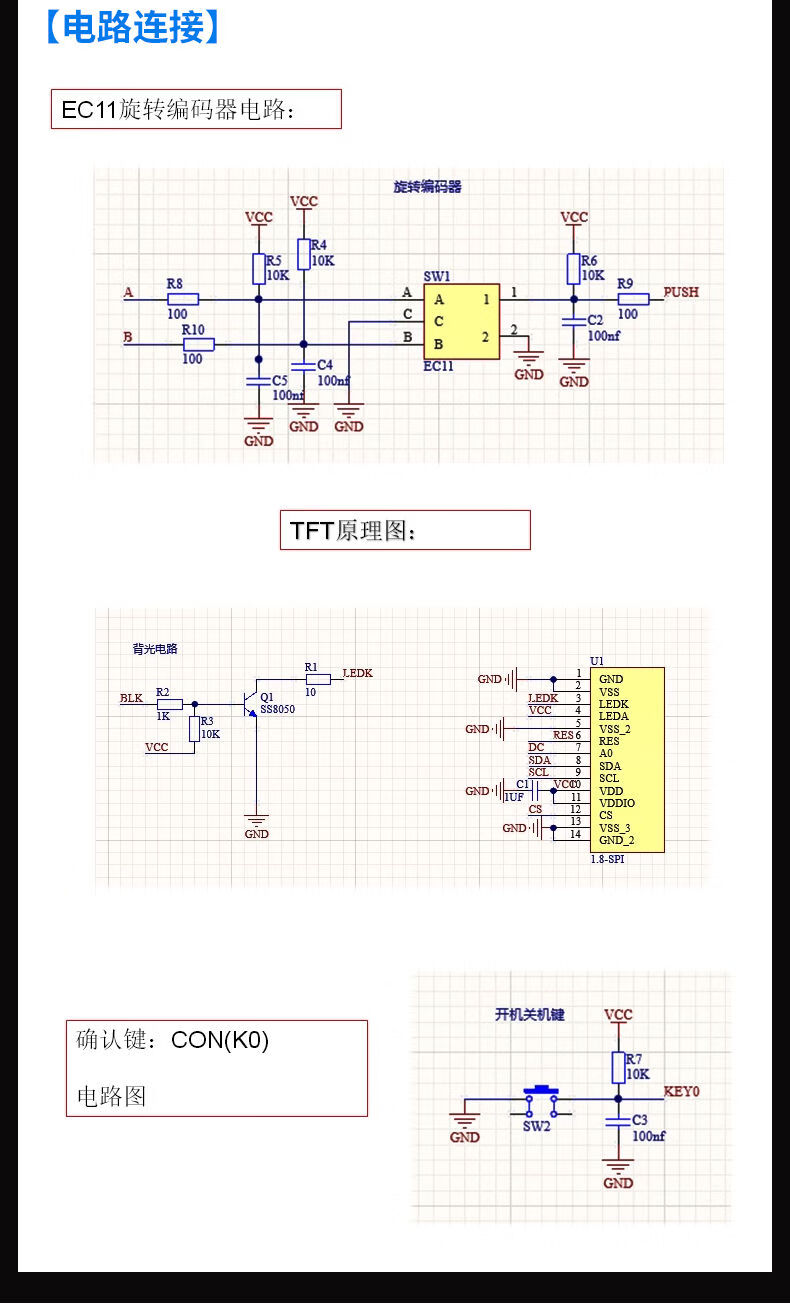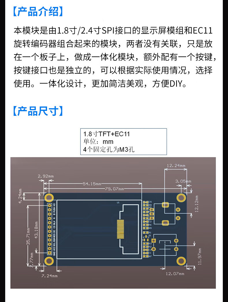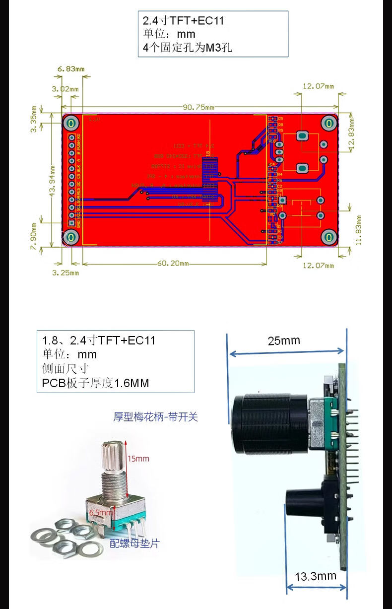 0.96/1.3/1.8/2.4-inch TFT color screen display plus EC11 rotary encoder module IIC interface 1.8-inch TFT color screen + EC11 rotary encoder module