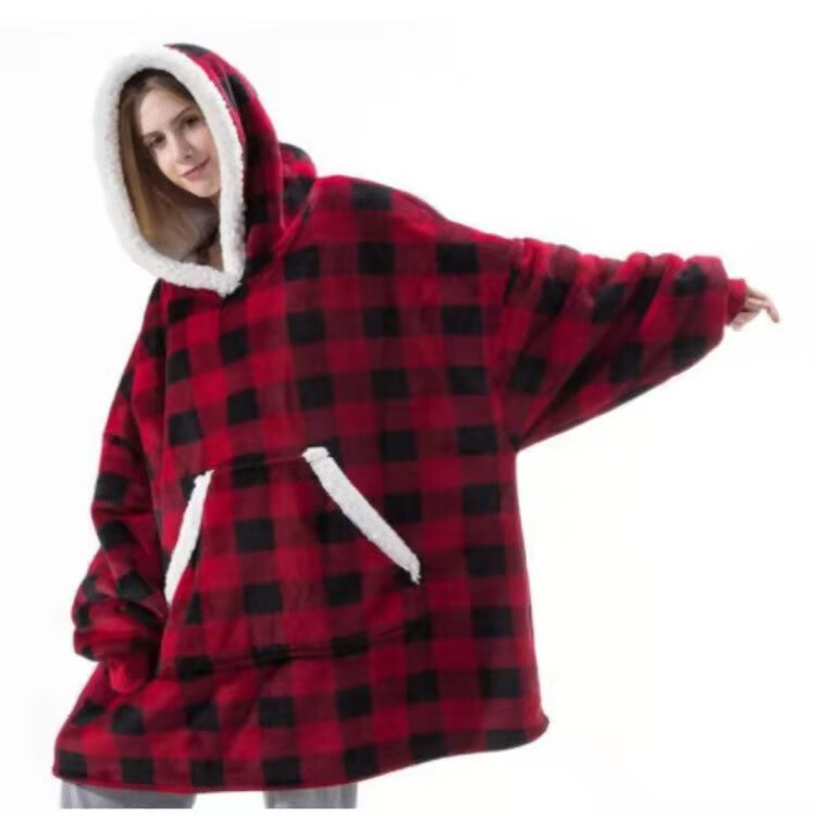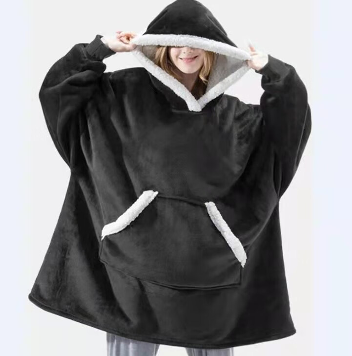 Shan Nanwei's new TV lazy blanket huggle hoodie cold-proof clothing hooded nightgown outdoor warm clothing plus velvet TV blanket black one size