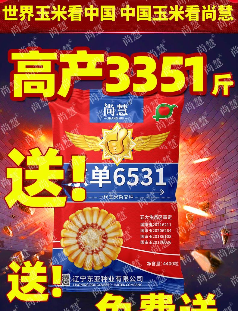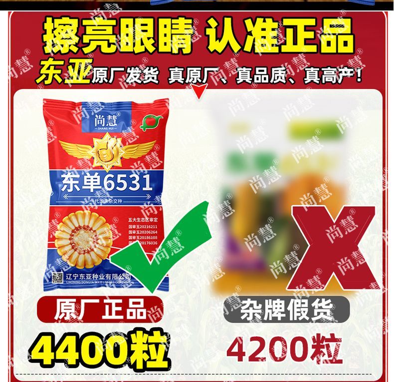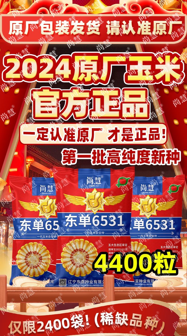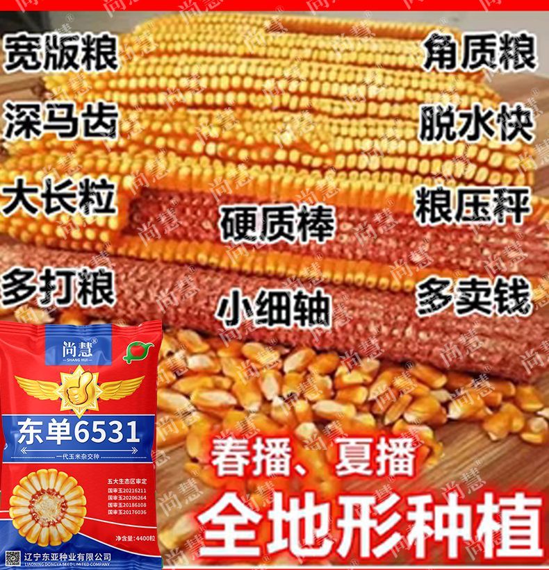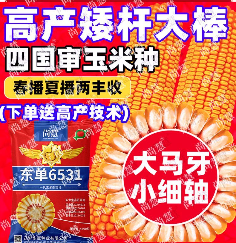 Princess Pomelo Wholesale Price Dongdan 6531 Corn Seeds Short Stem Large Double Cob Hybrid Lodging Resistant Seeds Complete Collection 440 in a bag 4400 in a bag + agent + yield increasing technology 4400 grains - only 761 pieces left