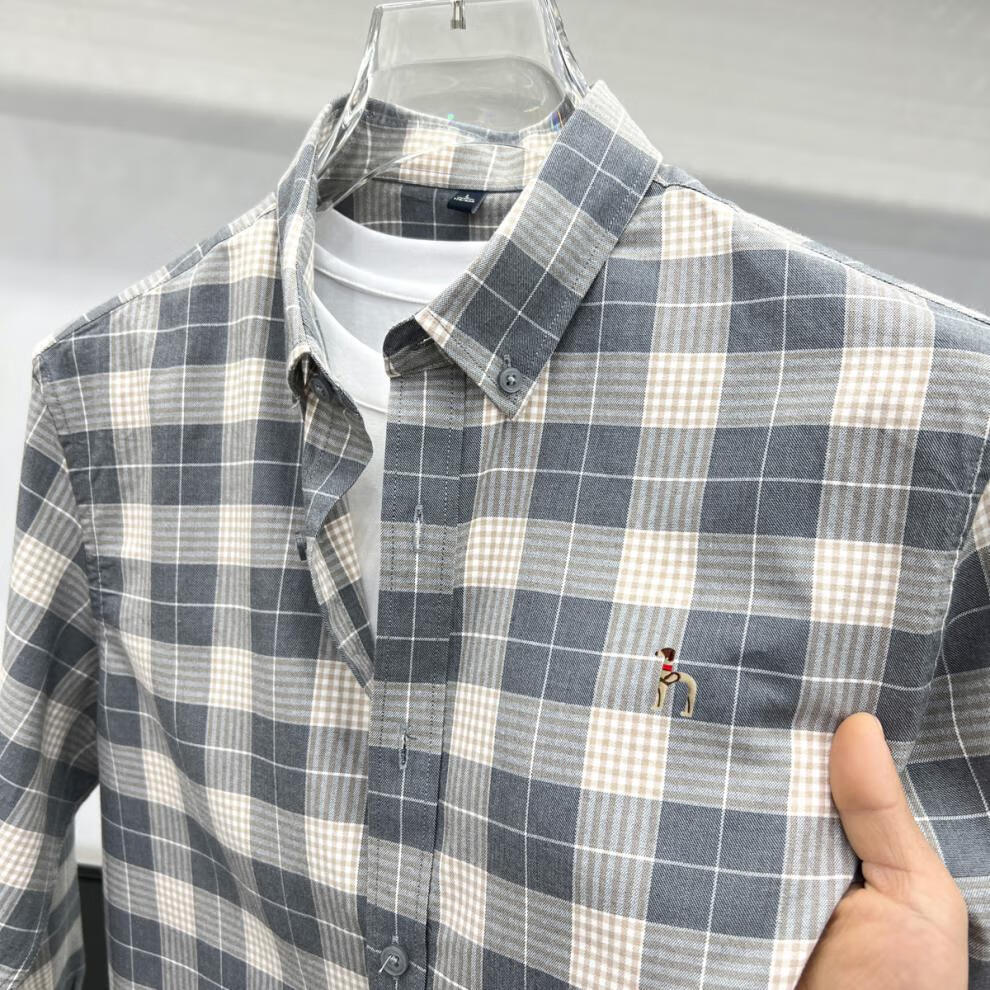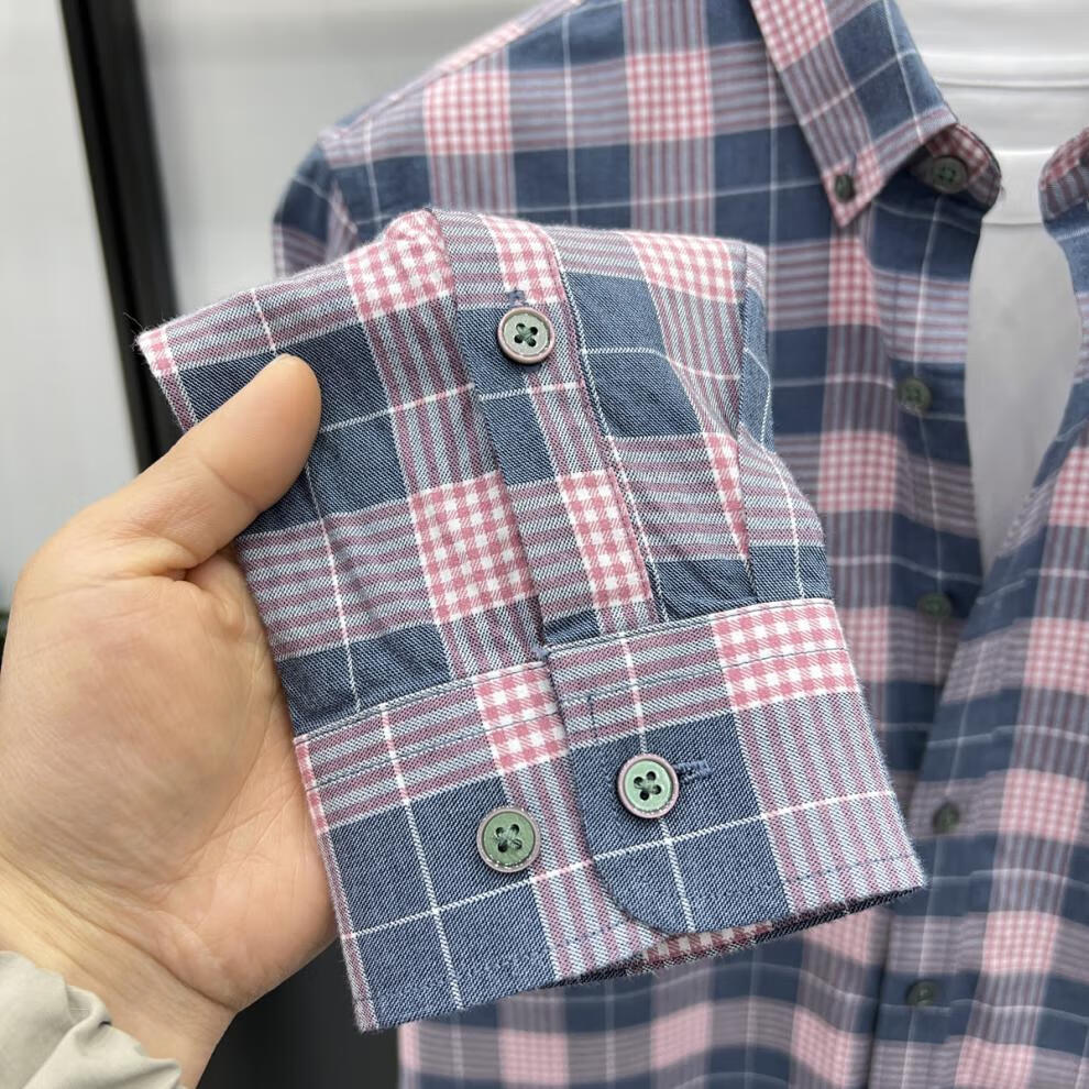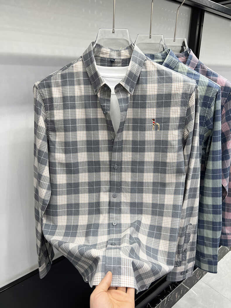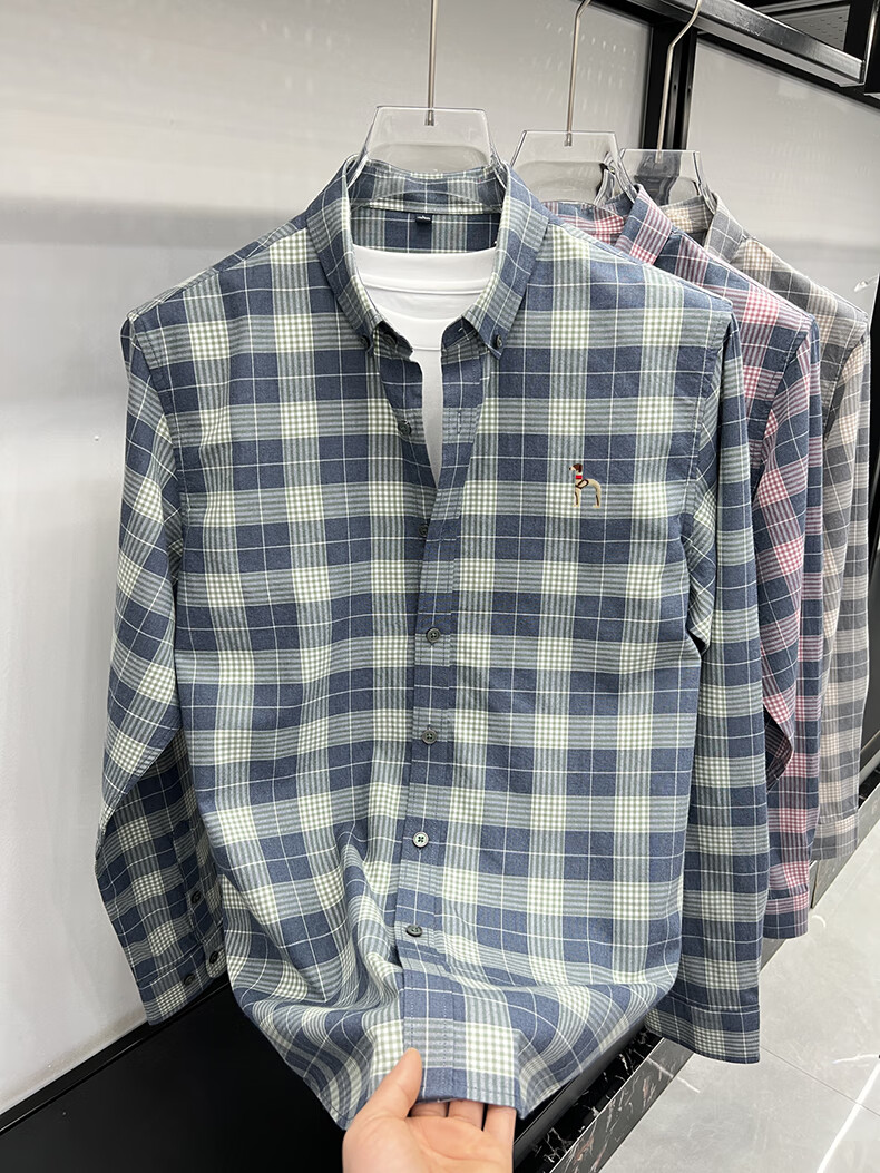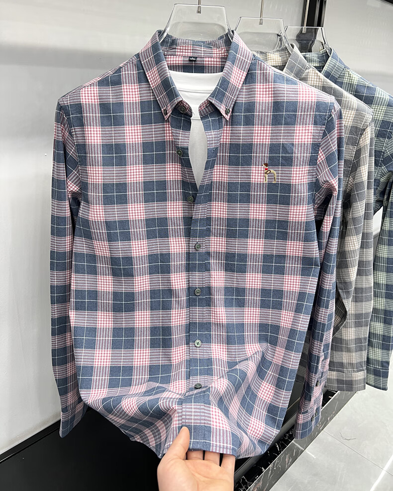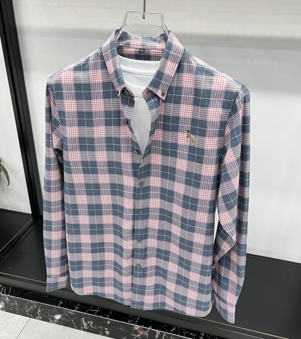 Hajiskai men's long-sleeved shirt plaid spring and autumn youth men's thin inch shirt fashionable casual shirt red plaid 25063 3XL recommended 175-190Jin Jin equals 0.5 kg