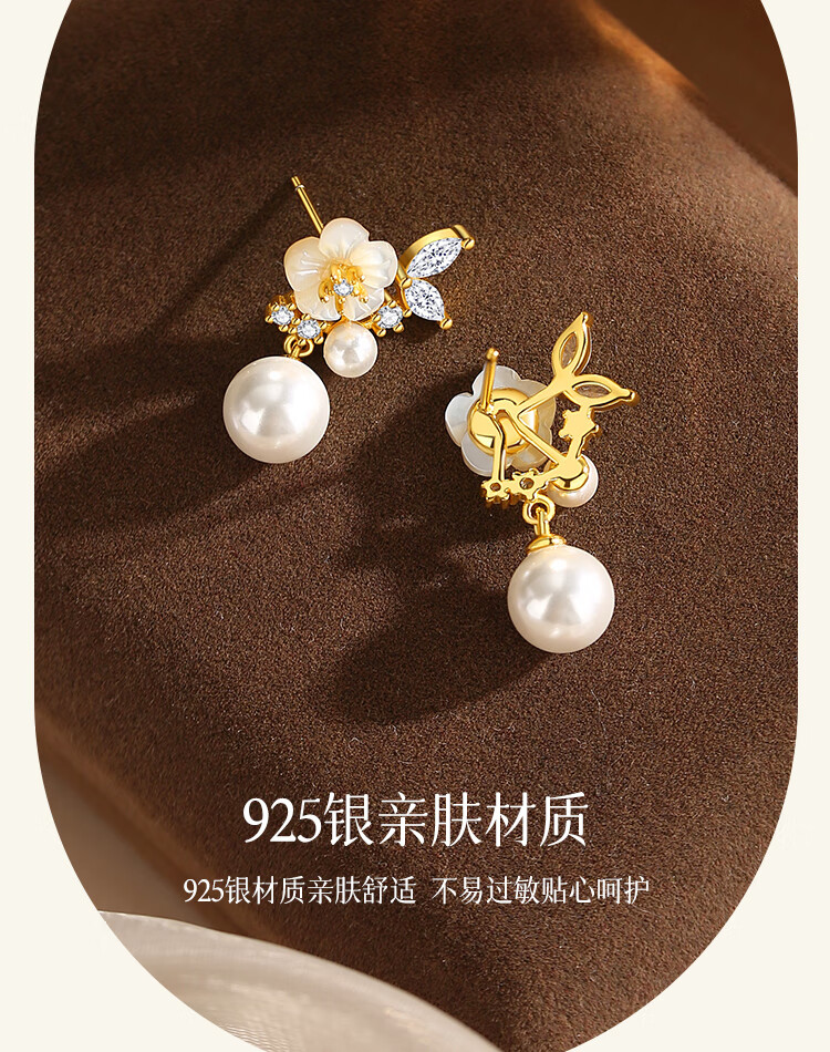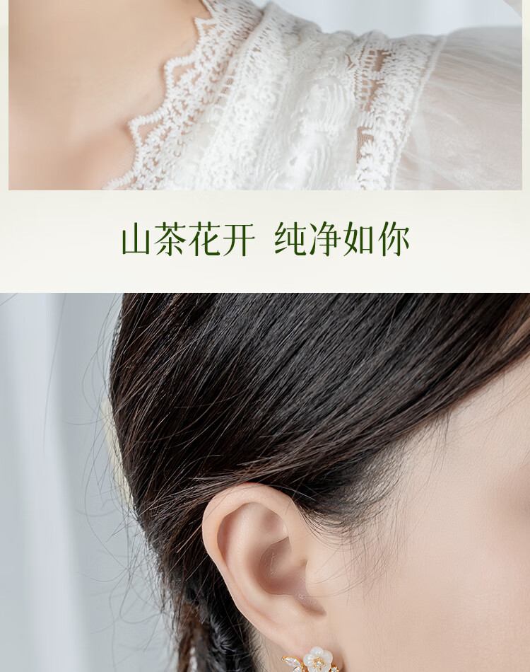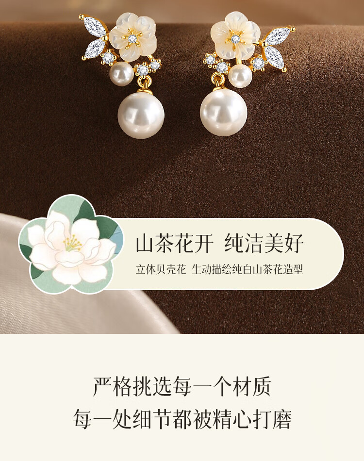 Gin Qianhui 925 Silver Camellia Pearl Earrings Women's High-end Earrings and Earrings Light Luxury Valentine's Day Birthday Gift for Girlfriend Camellia Mantra Earrings/Shijia Pearls + Seven Warehouse Delivery/Next Day Delivery Comes with Jewelry Certificate/Valentine's Day Girl Gift/Exquisite Gift Box