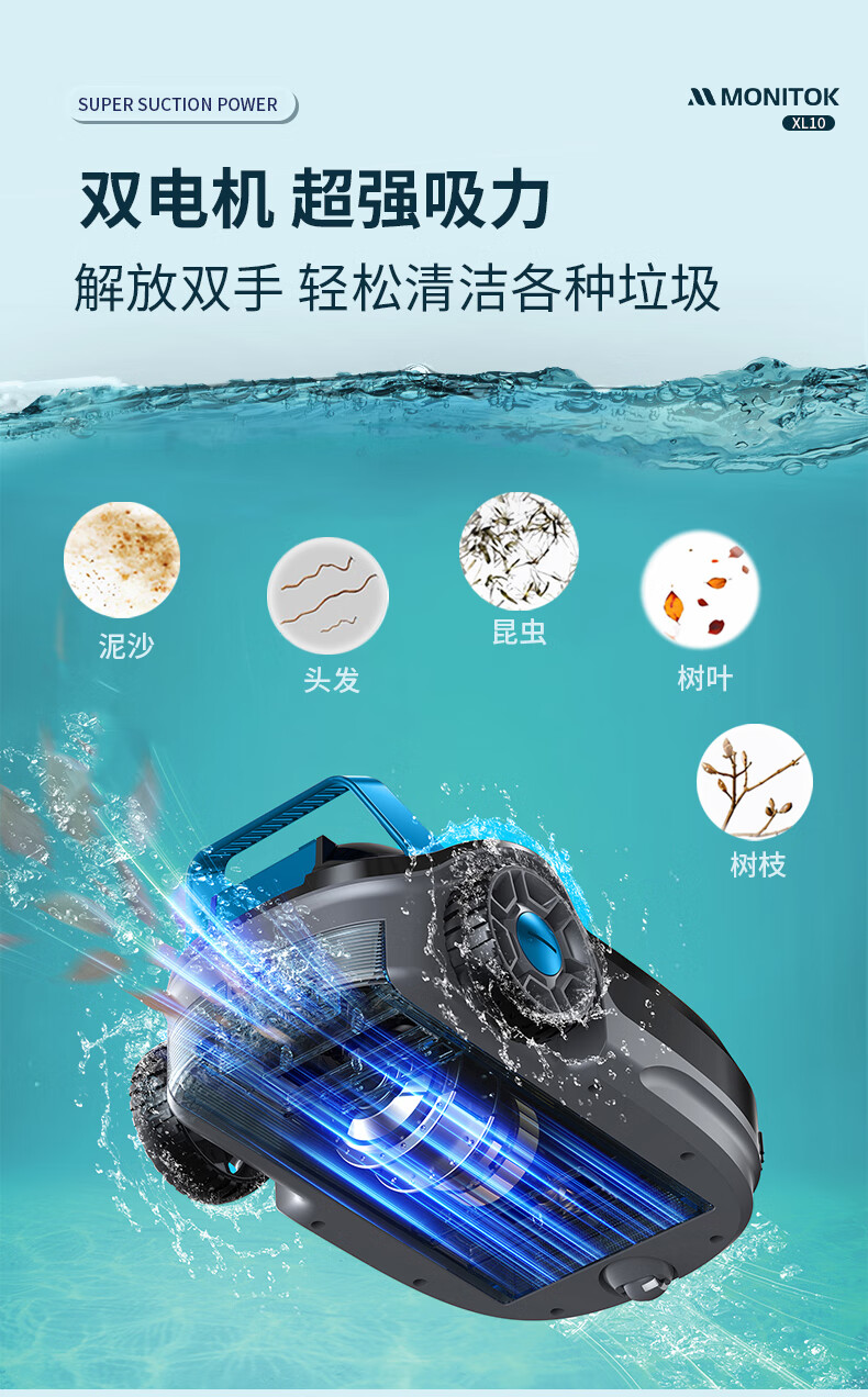 Monitok robot de limpieza de piscinas máquina de succión de aguas residuales aspiradora subacuática fondo de piscina tortuga de agua máquina de succión de aguas residuales completamente automática artefacto inteligente XL0703 enchufable línea de 17 metros