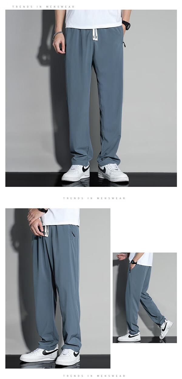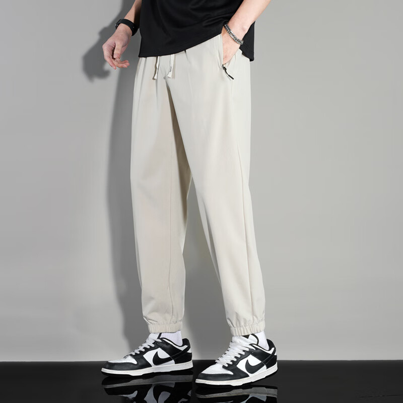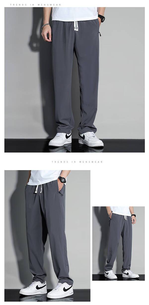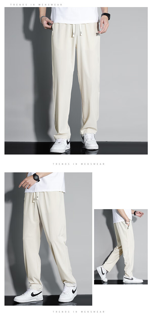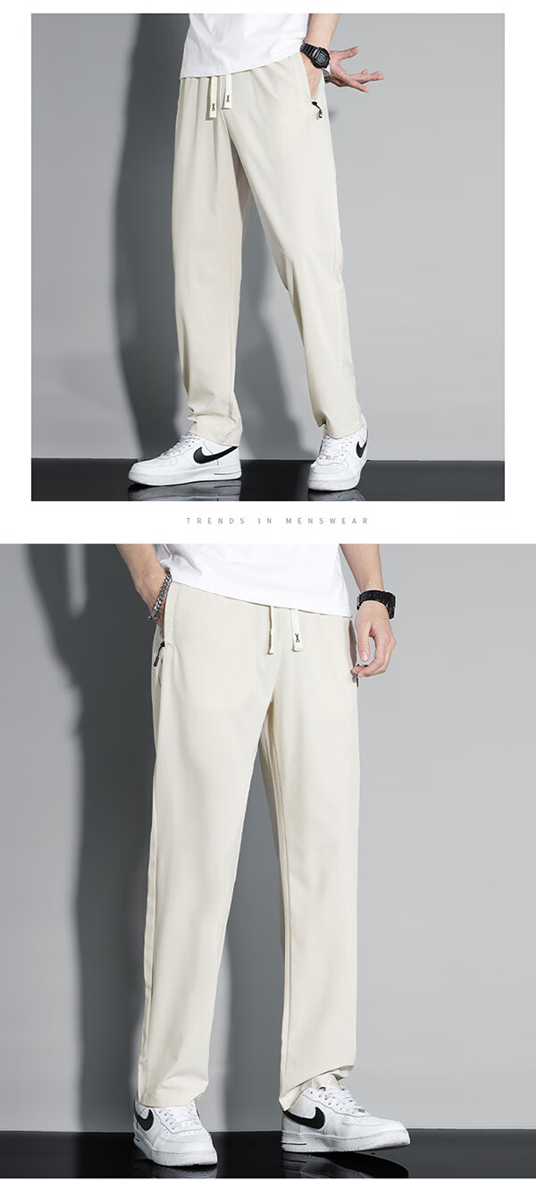 Semir new casual pants men's straight pants high school students college long pants summer ice silk loose 9230 Khaki XL