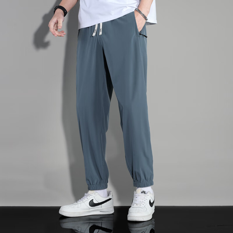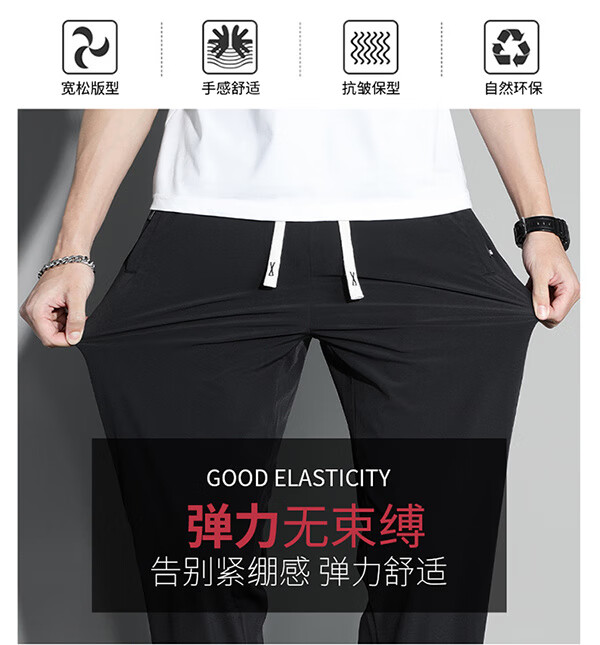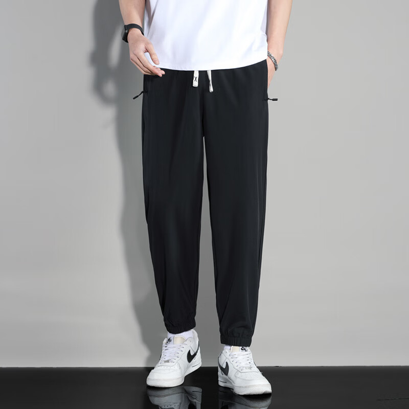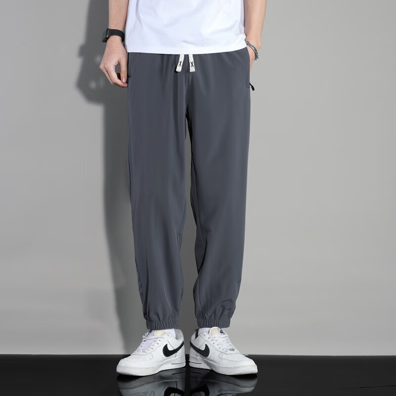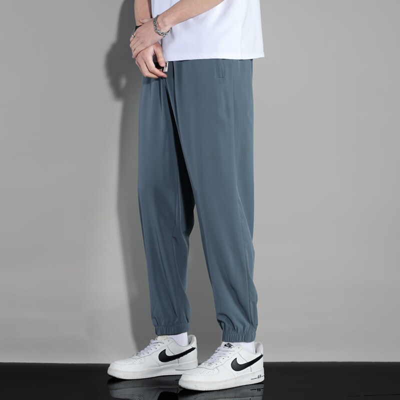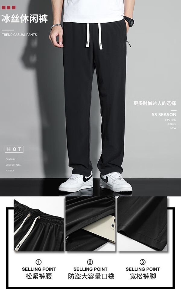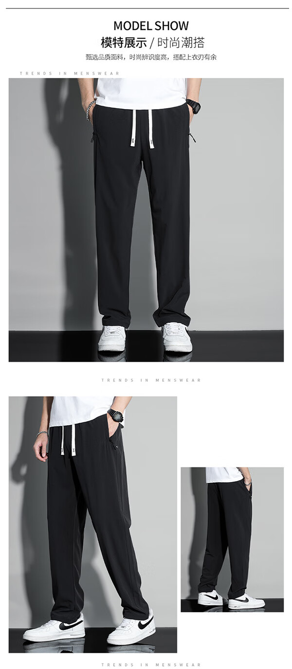 Semir new casual pants men's straight pants high school students college long pants summer ice silk loose 9230 Khaki XL