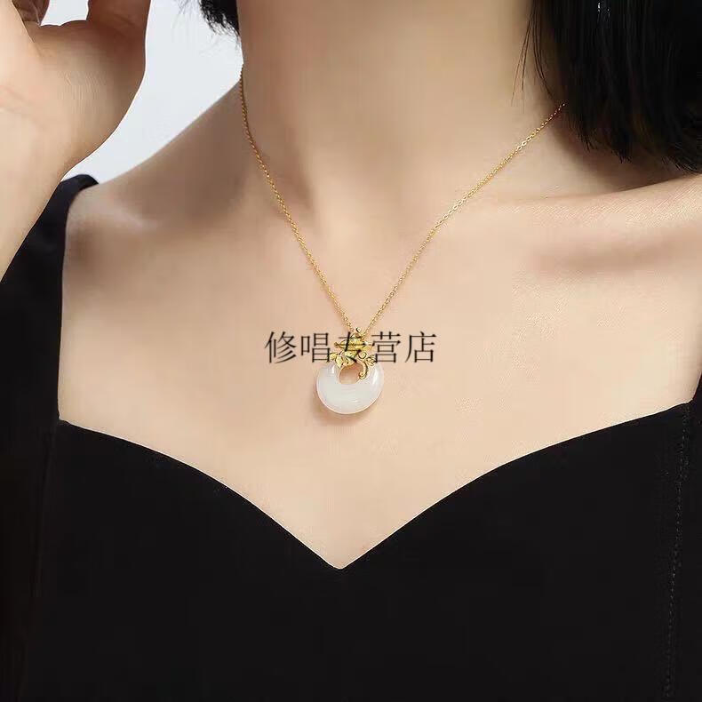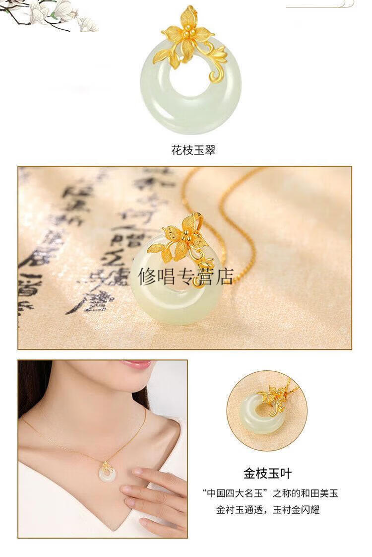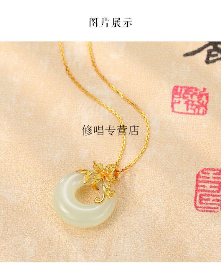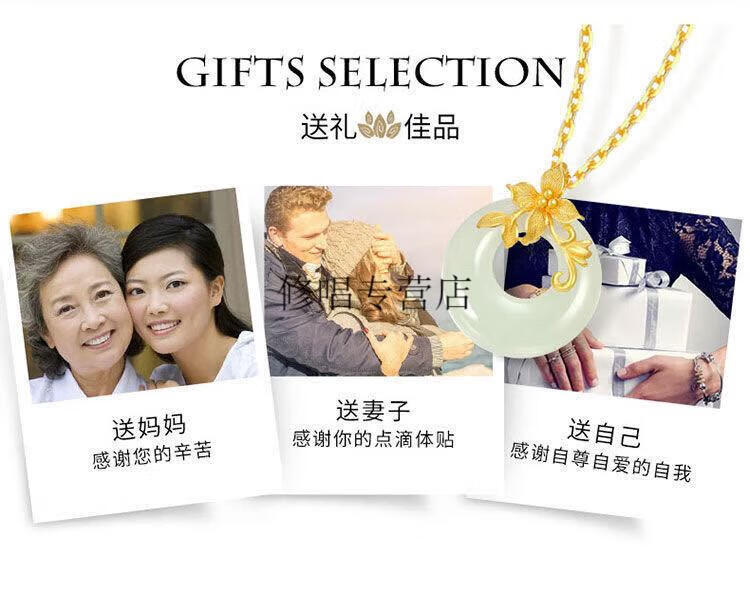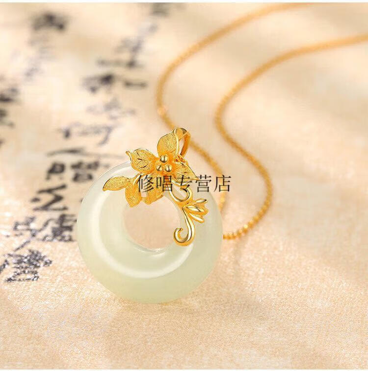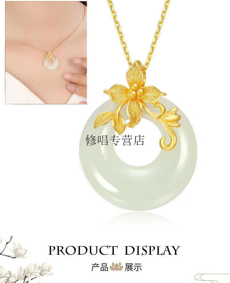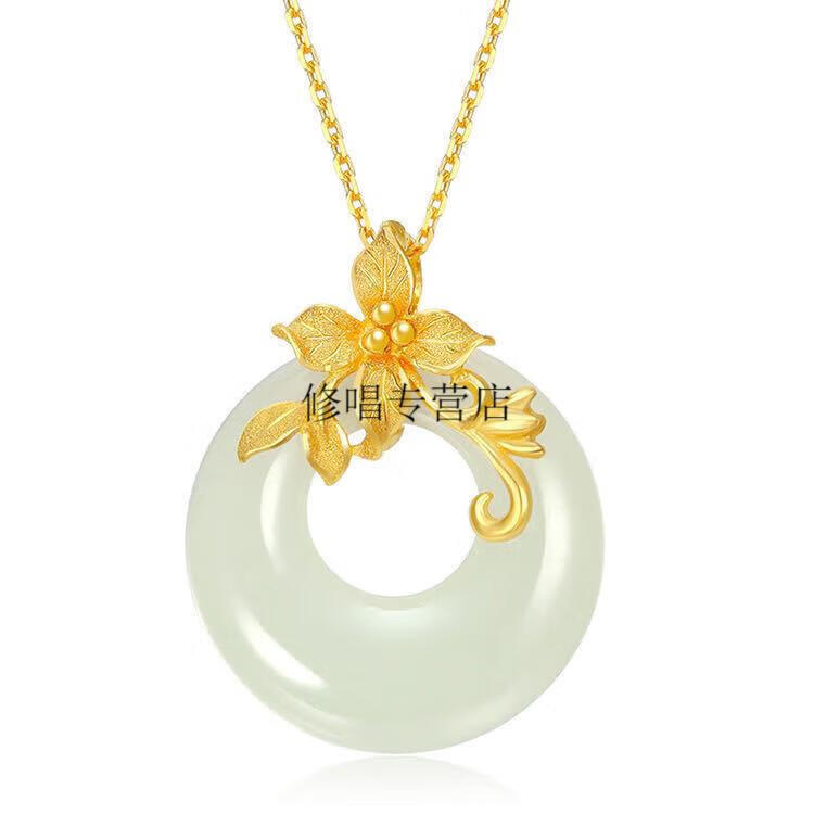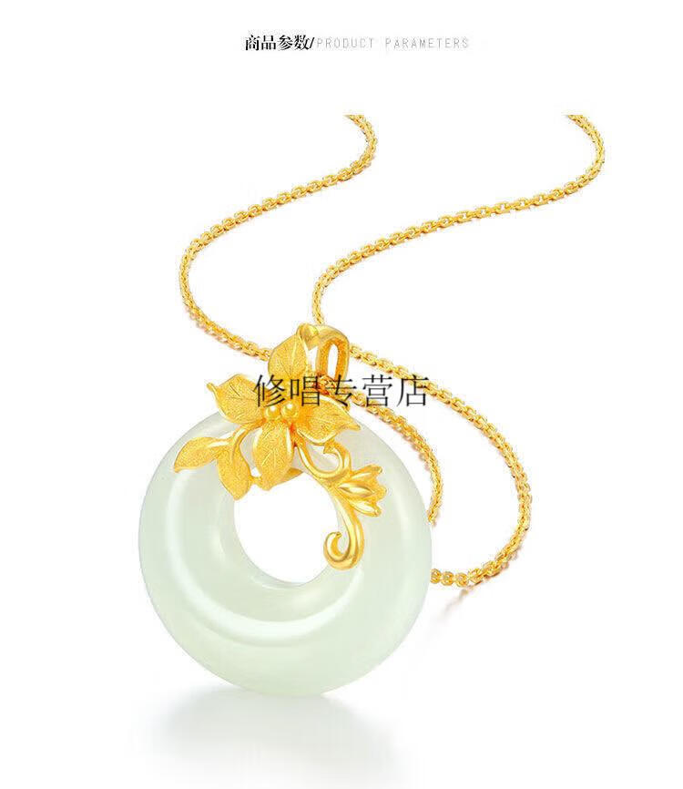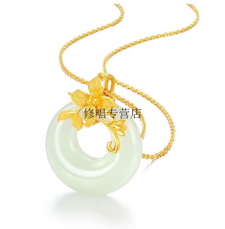 He Jiagong Lao Phoenix 999 Gold Pure Gold Inlaid Jade Pendant Female Jade Cui Hetian Jade Peace Buckle 3D Necklace Hetian Jade Pendant Single Pendant (Necklace Not Included) Lao Feng