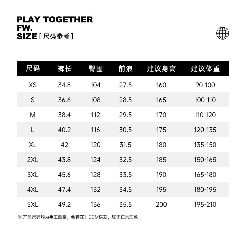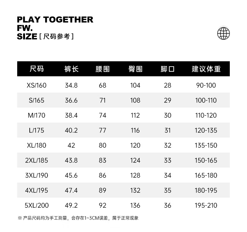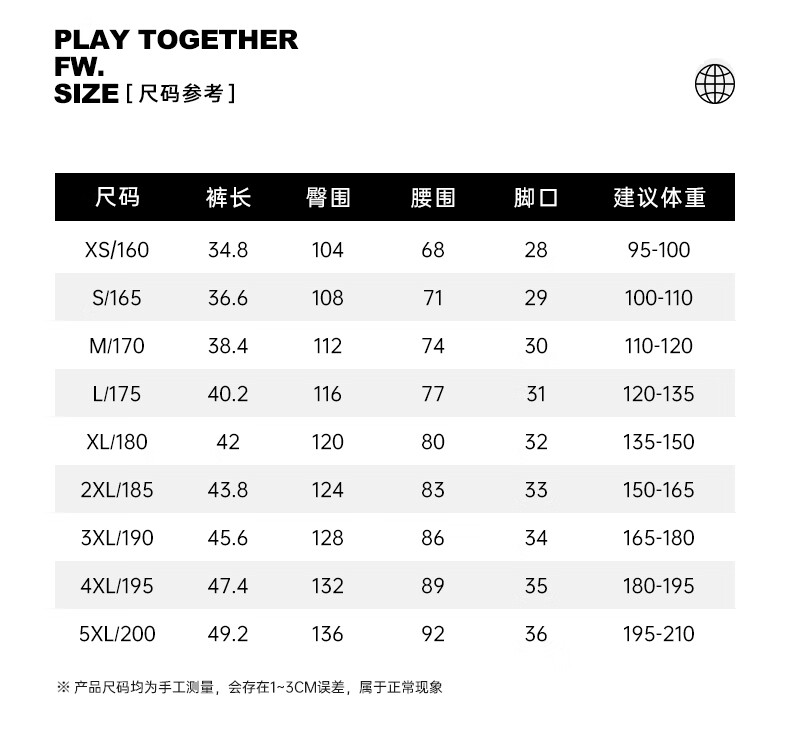 China (cm) 160-165/84-86 165-170 / 88-90 167-172 / 92-96 168-173 / 98-102 170-176 / 106-110