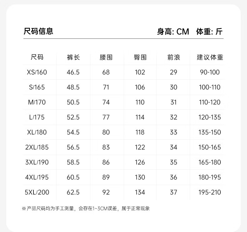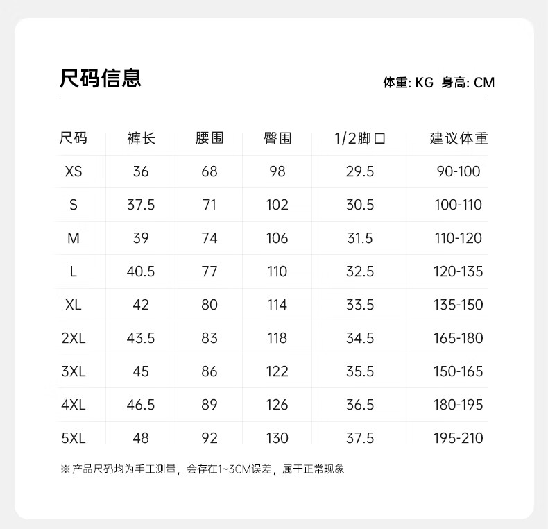Outseam (cm) 99 cm 101.5 cm 104 cm 106.5 cm 109 cm