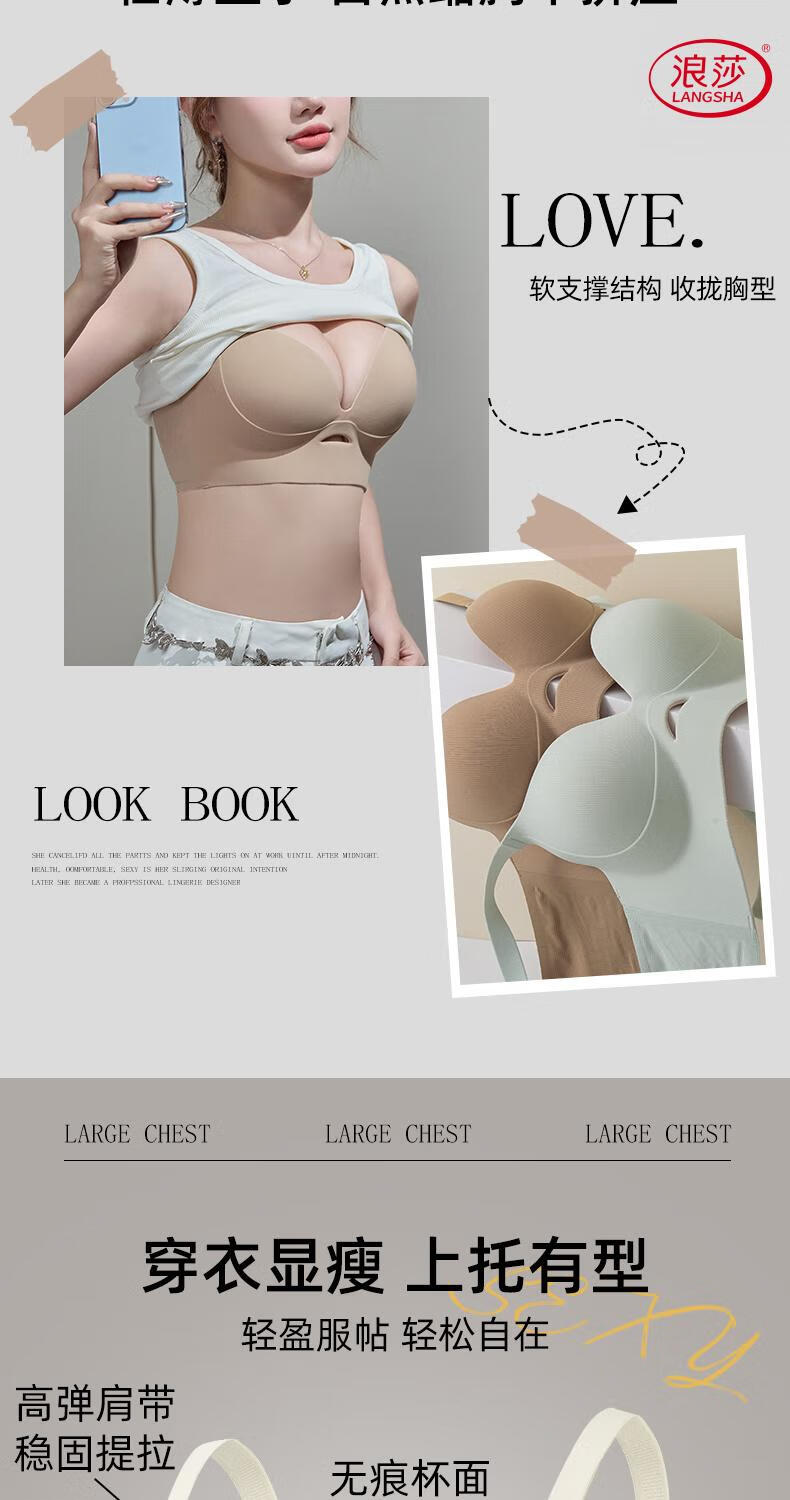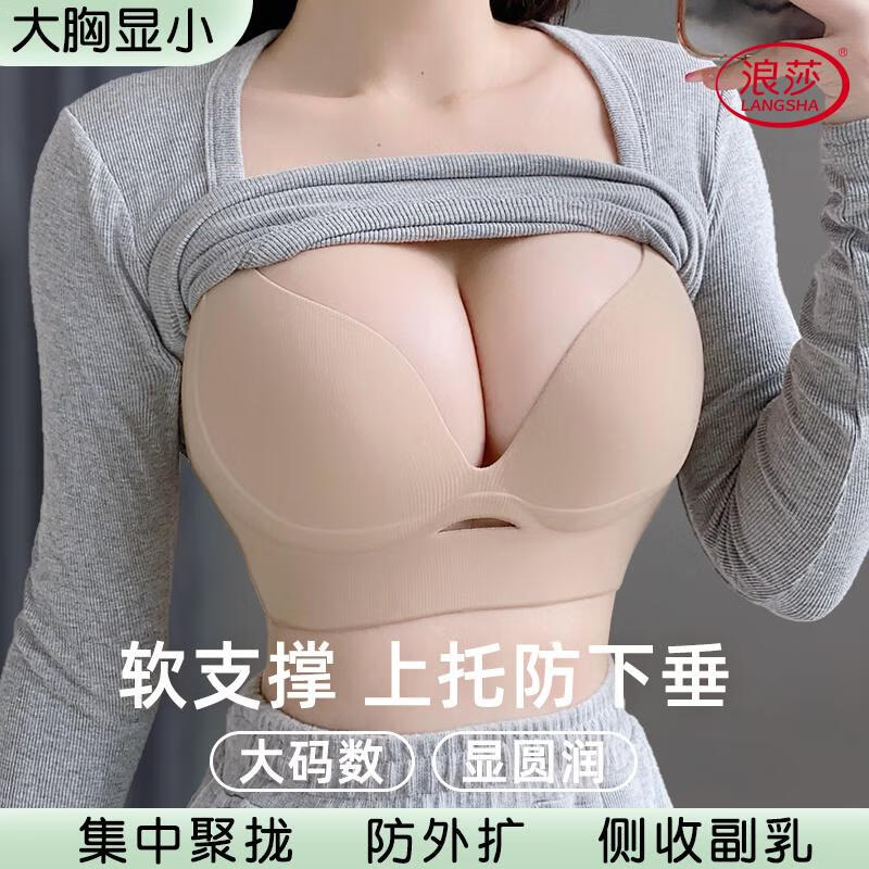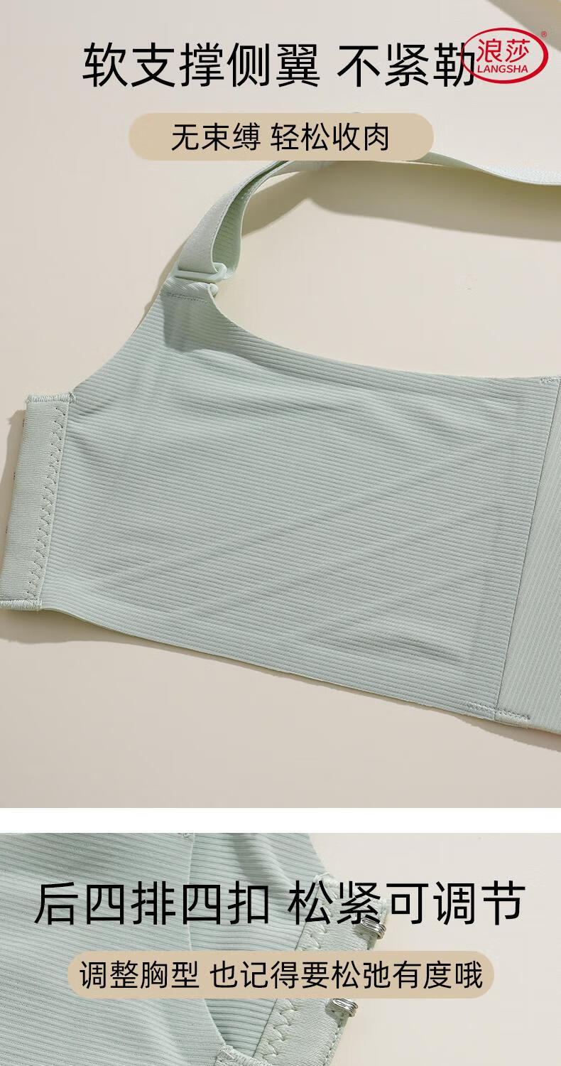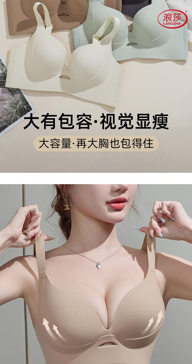 LangSha soft support push-up to show small breasts women's underwear to control breast expansion and prevent sagging large size push-up adjustable bra Khaki + milk green - no steel ring soft support push-up 75B 34