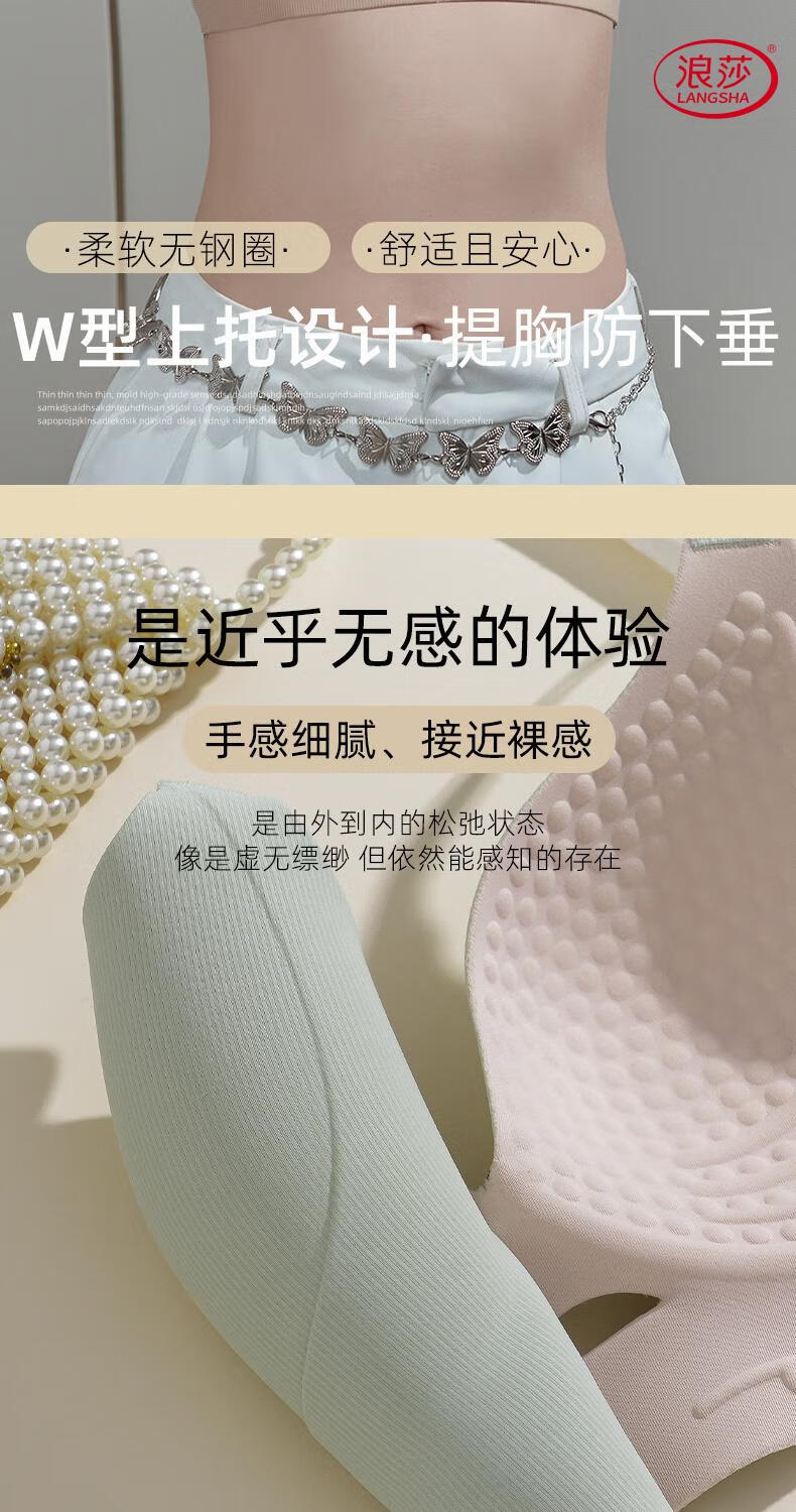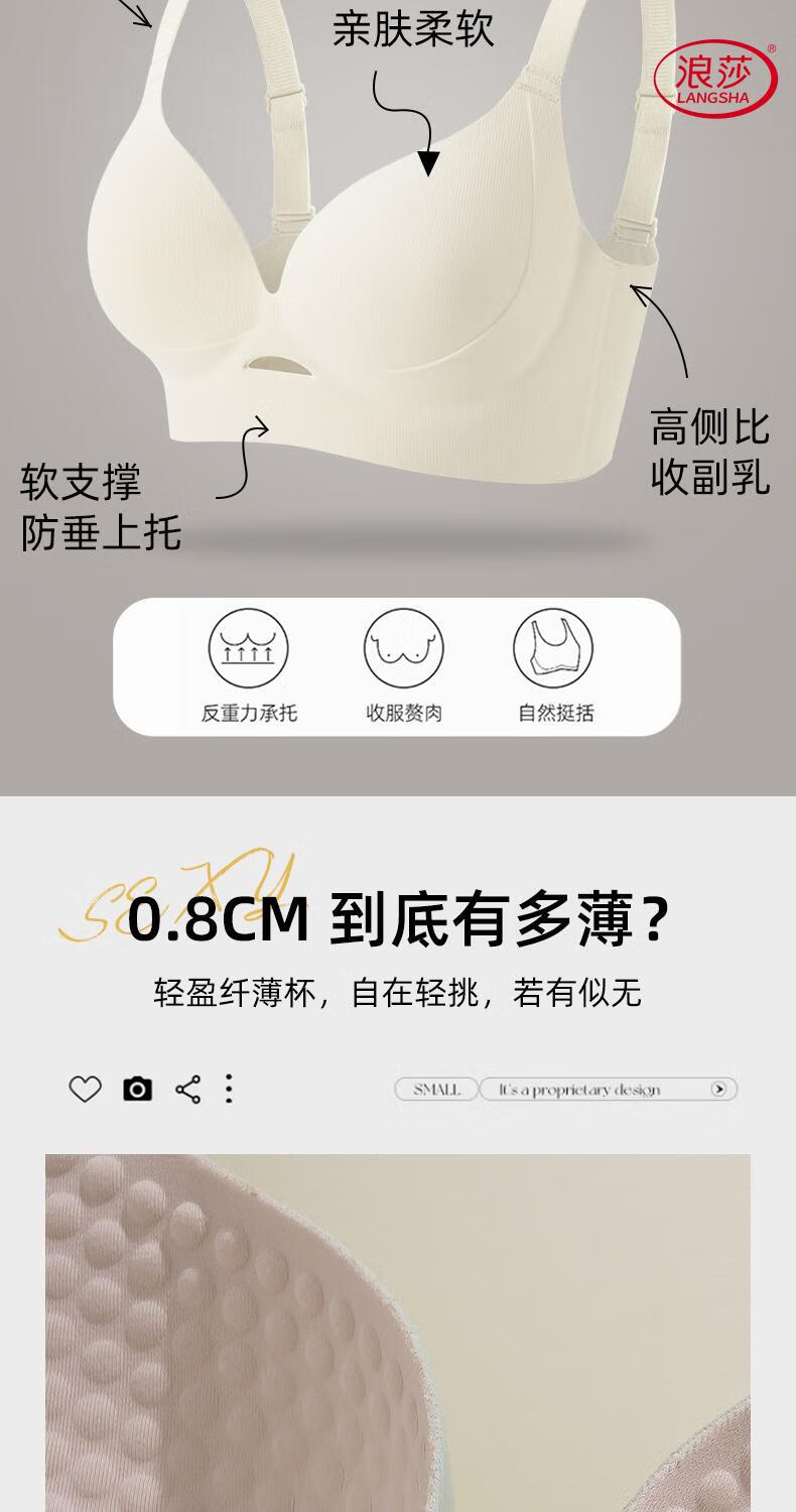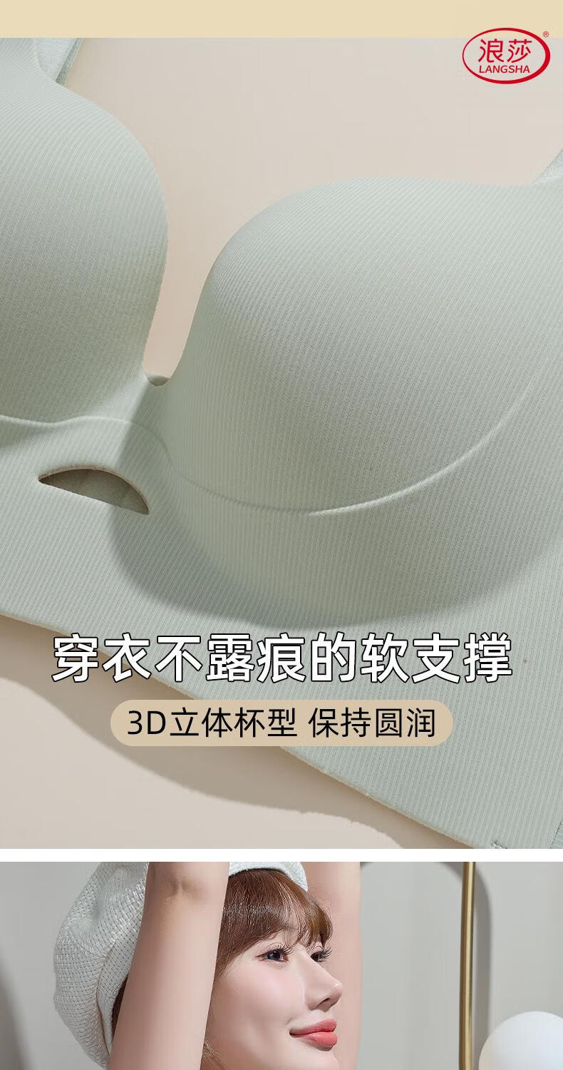 LangSha soft support push-up to show small breasts women's underwear to control breast expansion and prevent sagging large size push-up adjustable bra Khaki + milk green - no steel ring soft support push-up 75B 34