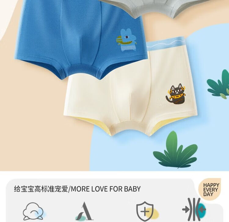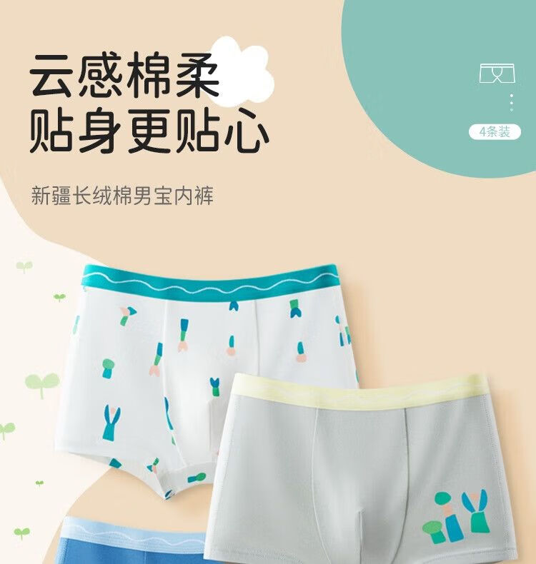 Red bean children's underwear for boys, middle and large children, 4-pack pure cotton type A antibacterial shorts, adolescent boxer briefs, yellow green blue (type A antibacterial - antibacterial bottom) 160 Recommendation 150-160cm65-80Jin Jin equals 0.5kg